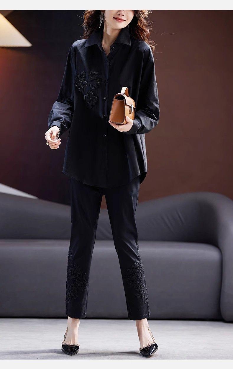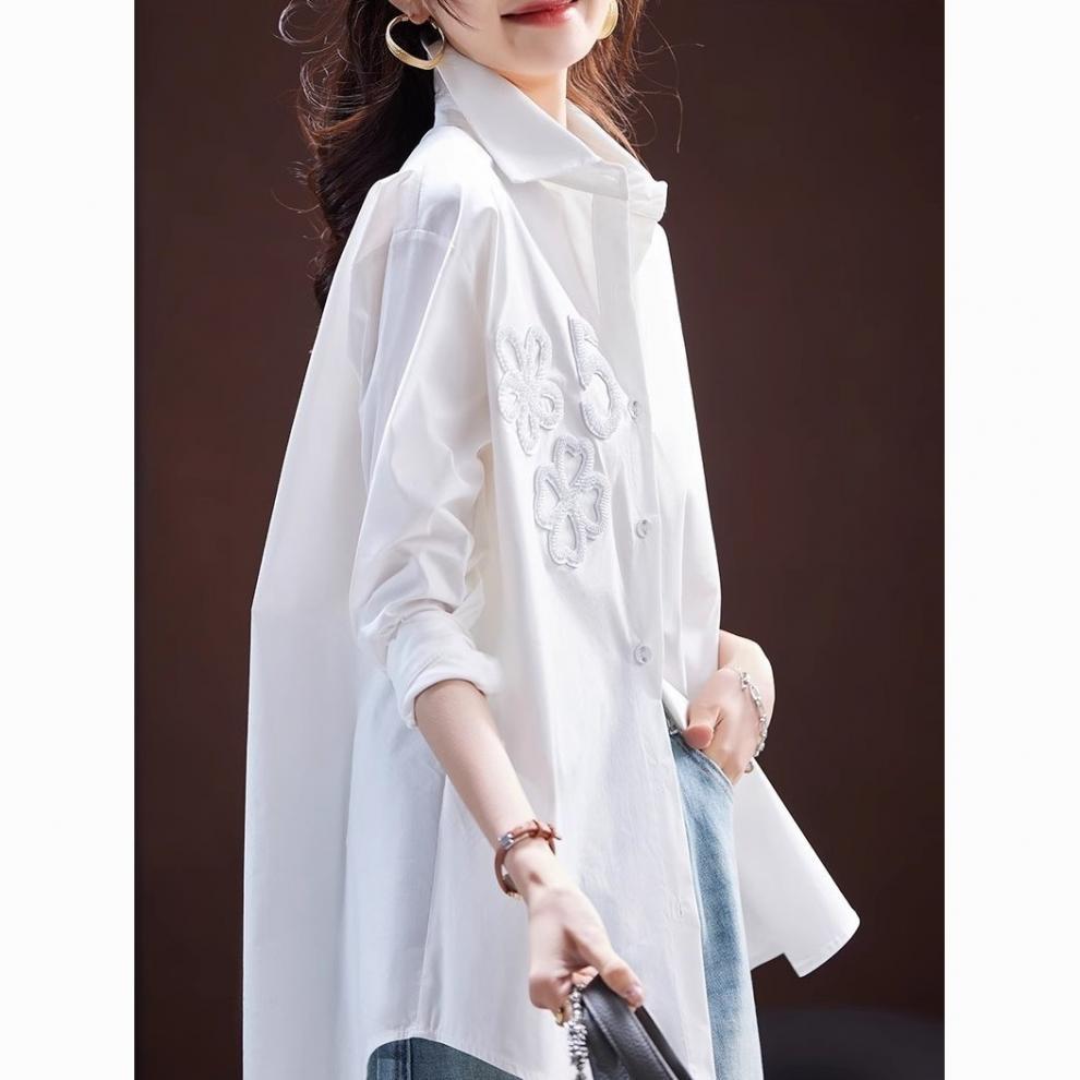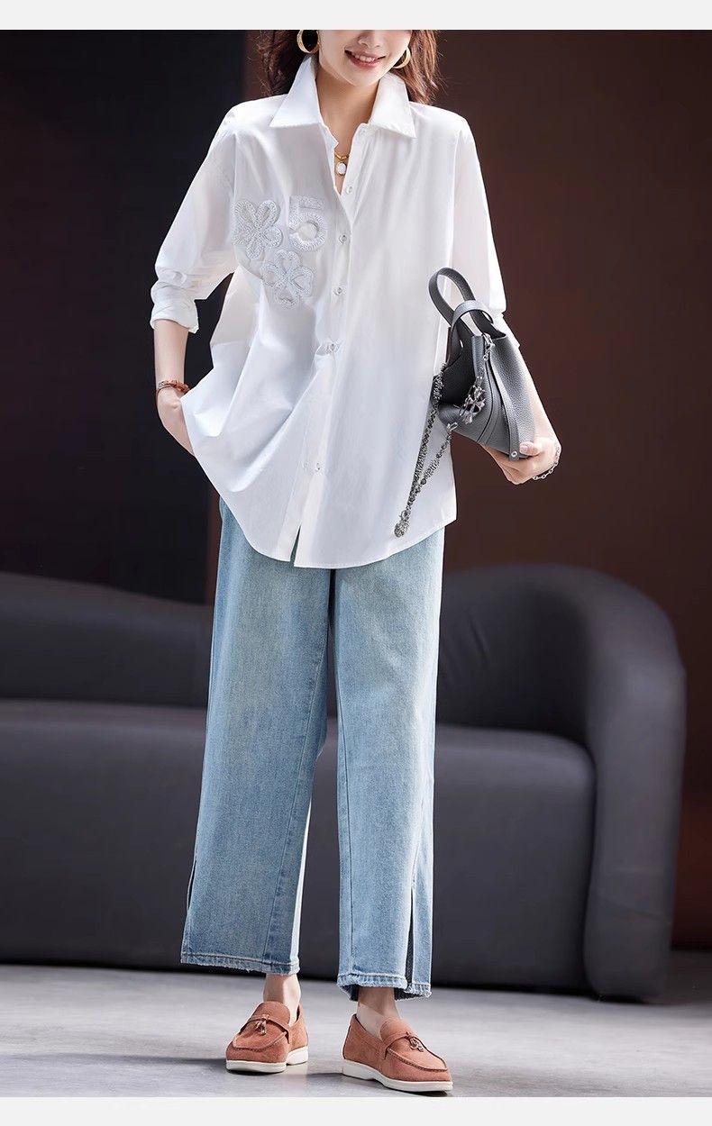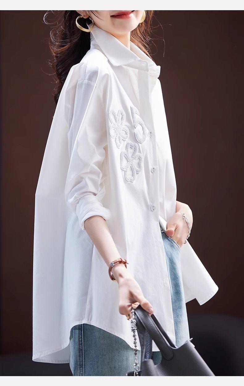 Camisa Blanca Elegante de Alta Gama con Cuentas para Mujer de Manga Larga Estilo Primavera Temprana Estación Europea Holgada y Versátil Ropa de Trabajo Top de Lujo Accesible