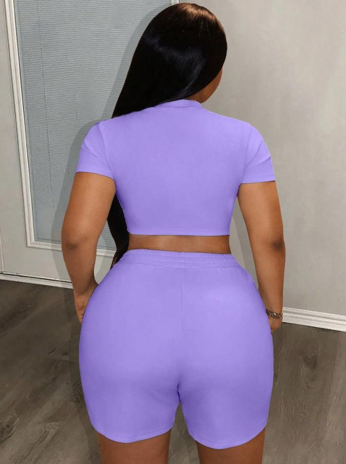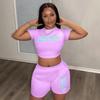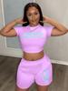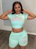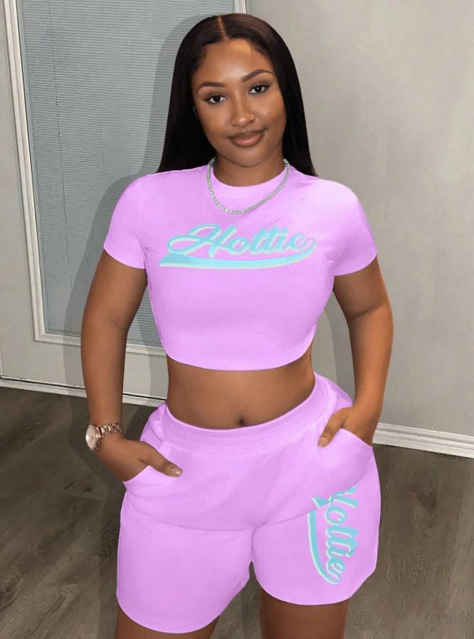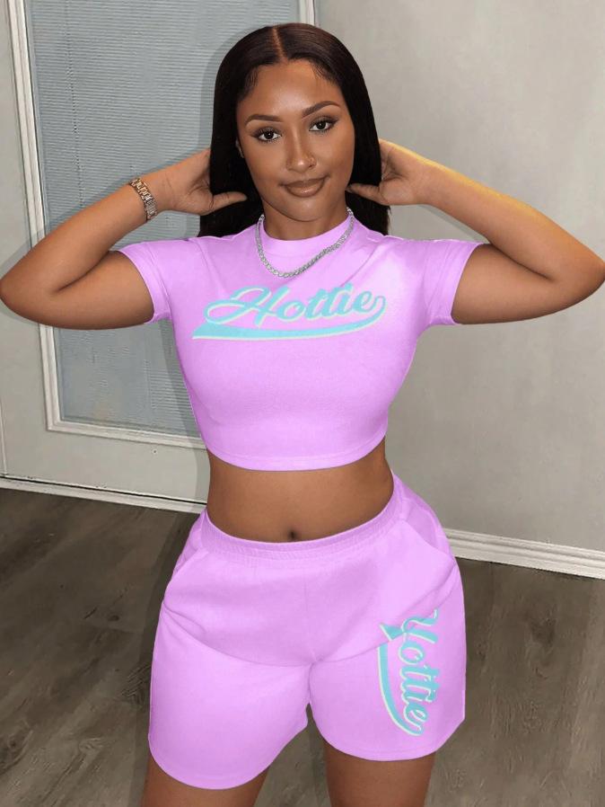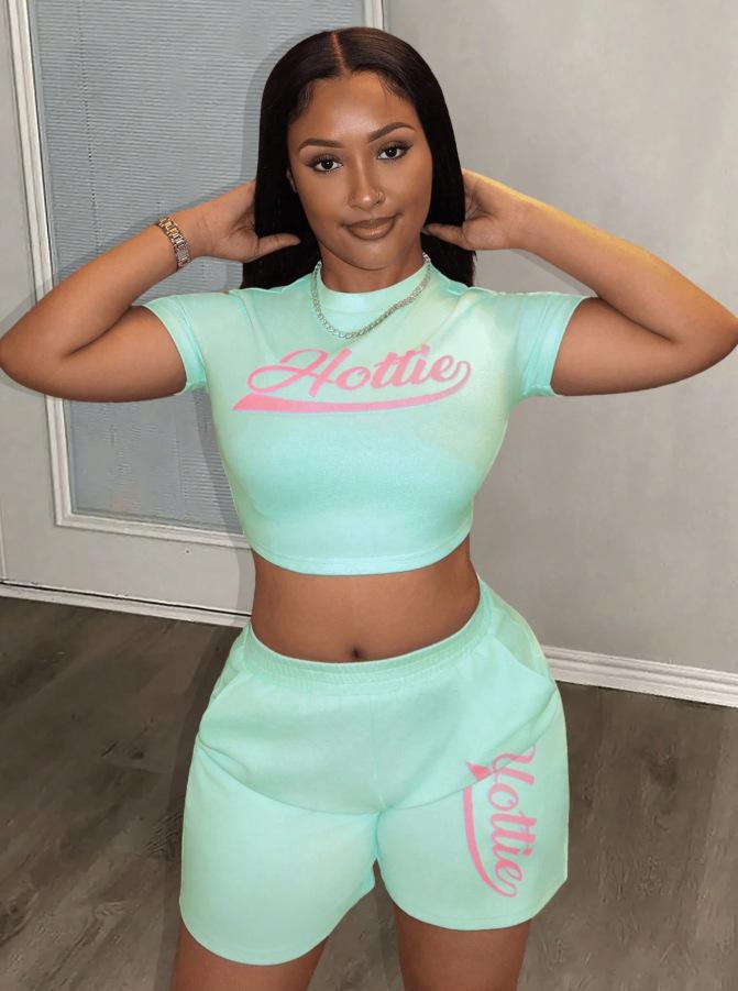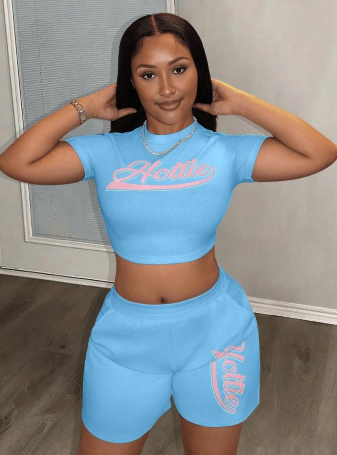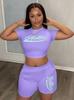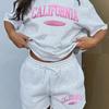 2025 Nuevo Traje Deportivo de Moda Europea y Americana Transfronterizo Delgado Retro Chica Caliente con Estampado de Letras Top de Manga Corta y Shorts