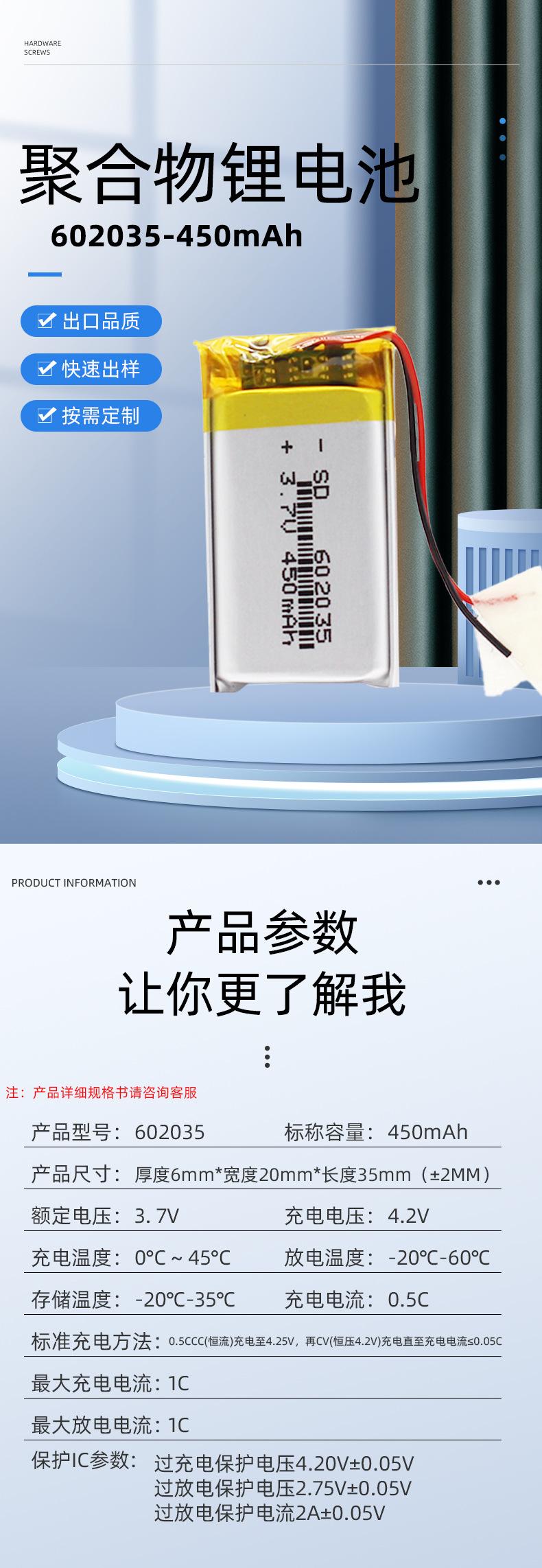 Batería de Polímero de Litio 3.7V 602035 450Mah Grabadora Luz de Zapato Productos Digitales