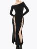 Vestido de Mujer de Primavera y Otoño Europeo y Americano Hueco Sexy con Cordones Ajustado Color Sólido Abertura Manga Larga al por Mayor