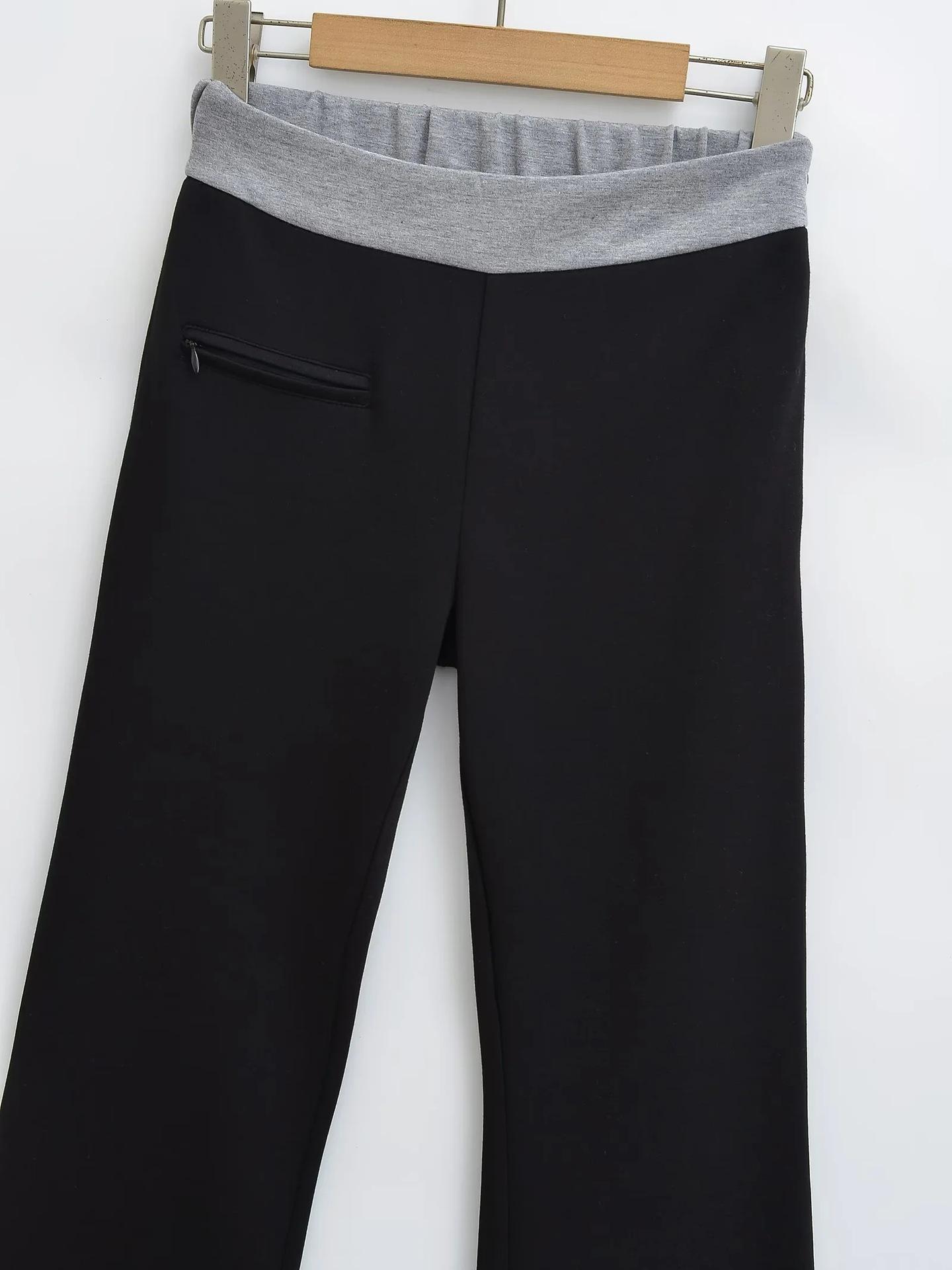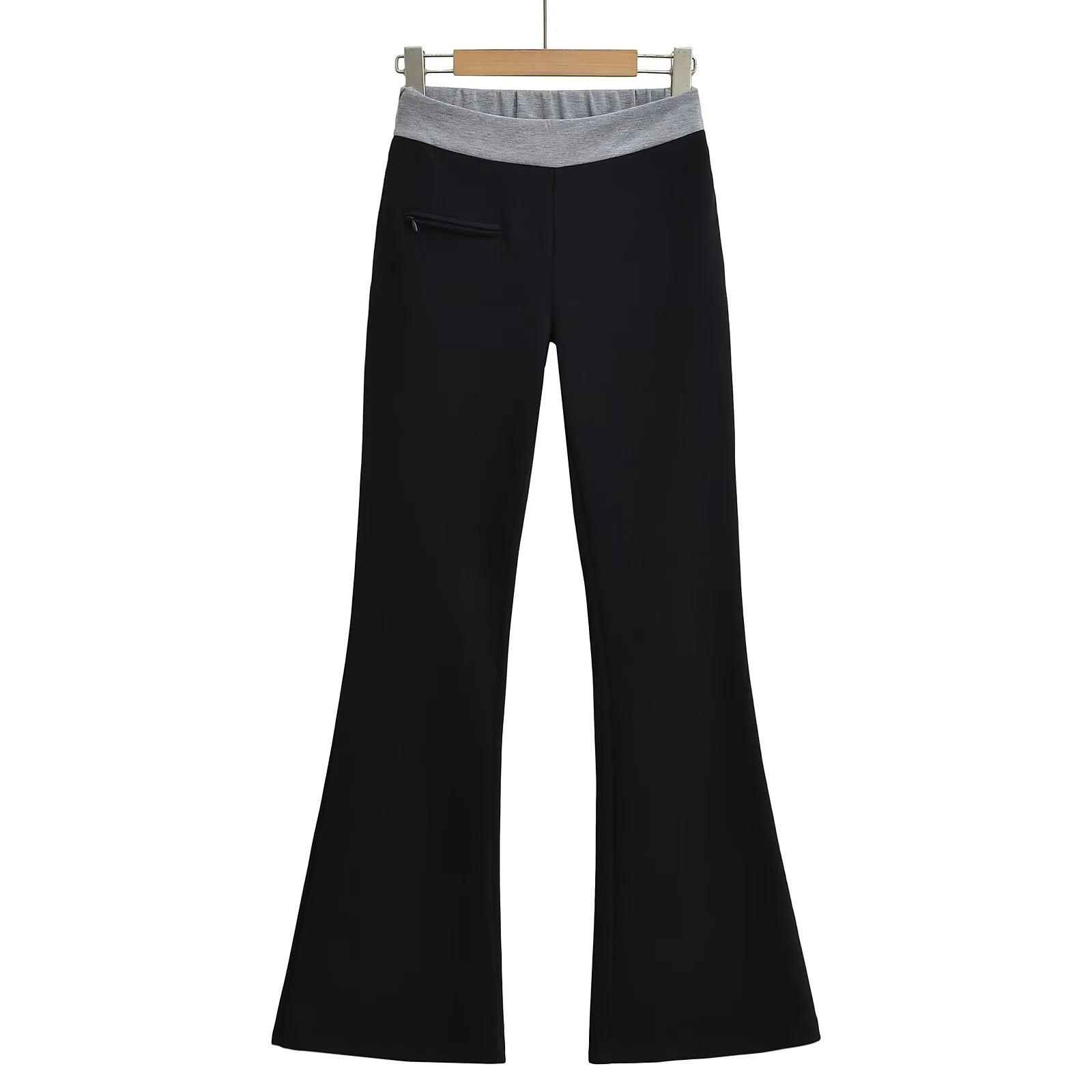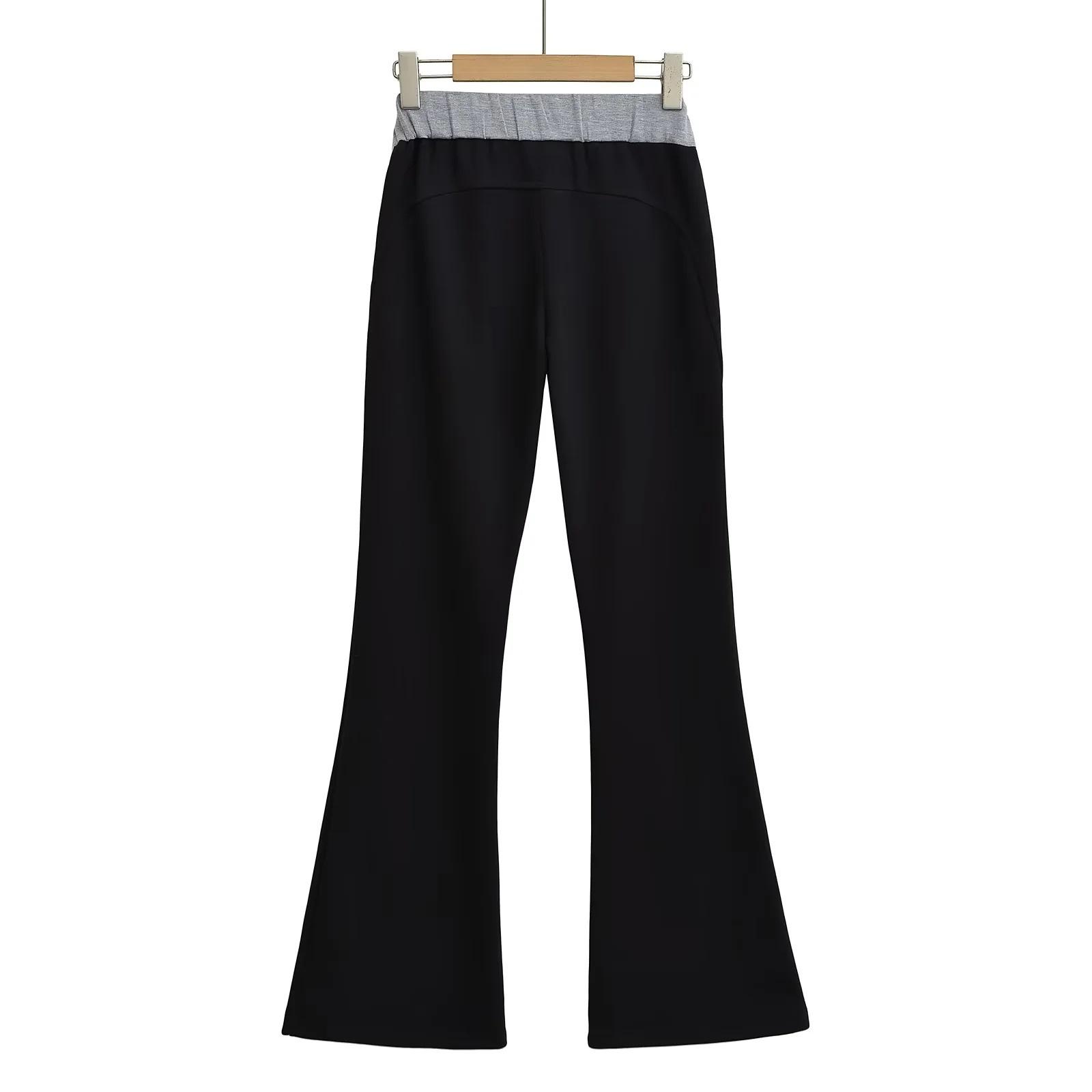 Primavera y Otoño Nuevo 2025 Pantalones Rectos Adelgazantes de Cintura Alta para Mujer Estilo Americano Ajustado Costuras en Color Contraste Micro-ajuste Pantalones Casuales