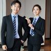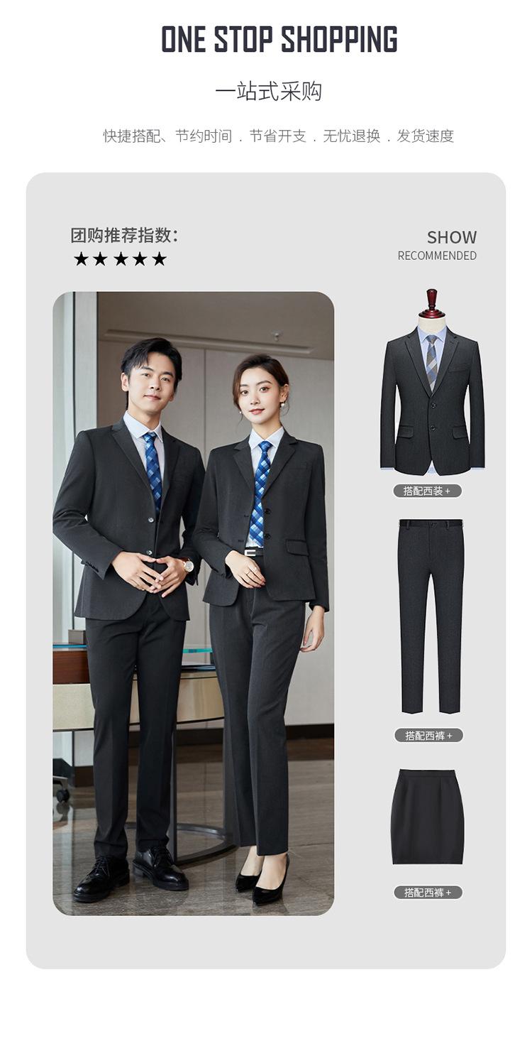 Male: black suit, Male: dark gray suit, Female: black suit, Women: dark suit, Male: black suit + trousers, Mal...