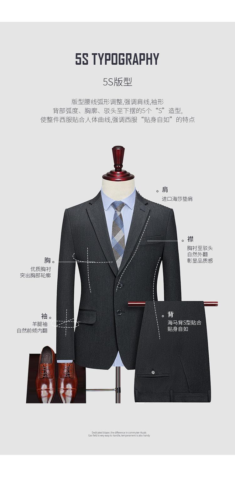 Traje de Primavera y Verano Traje de Tres Piezas para Hombre Traje de Negocios Estilo Coreano Ajustado Vestido de Padrino Vestido de Novio Vestido Formal Profesional