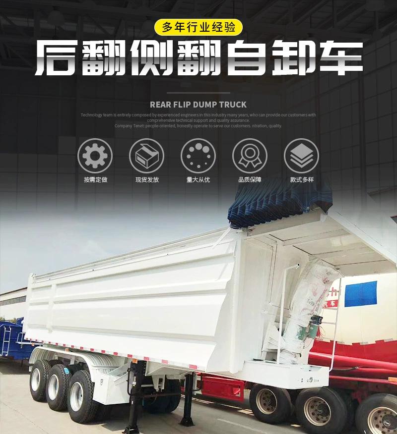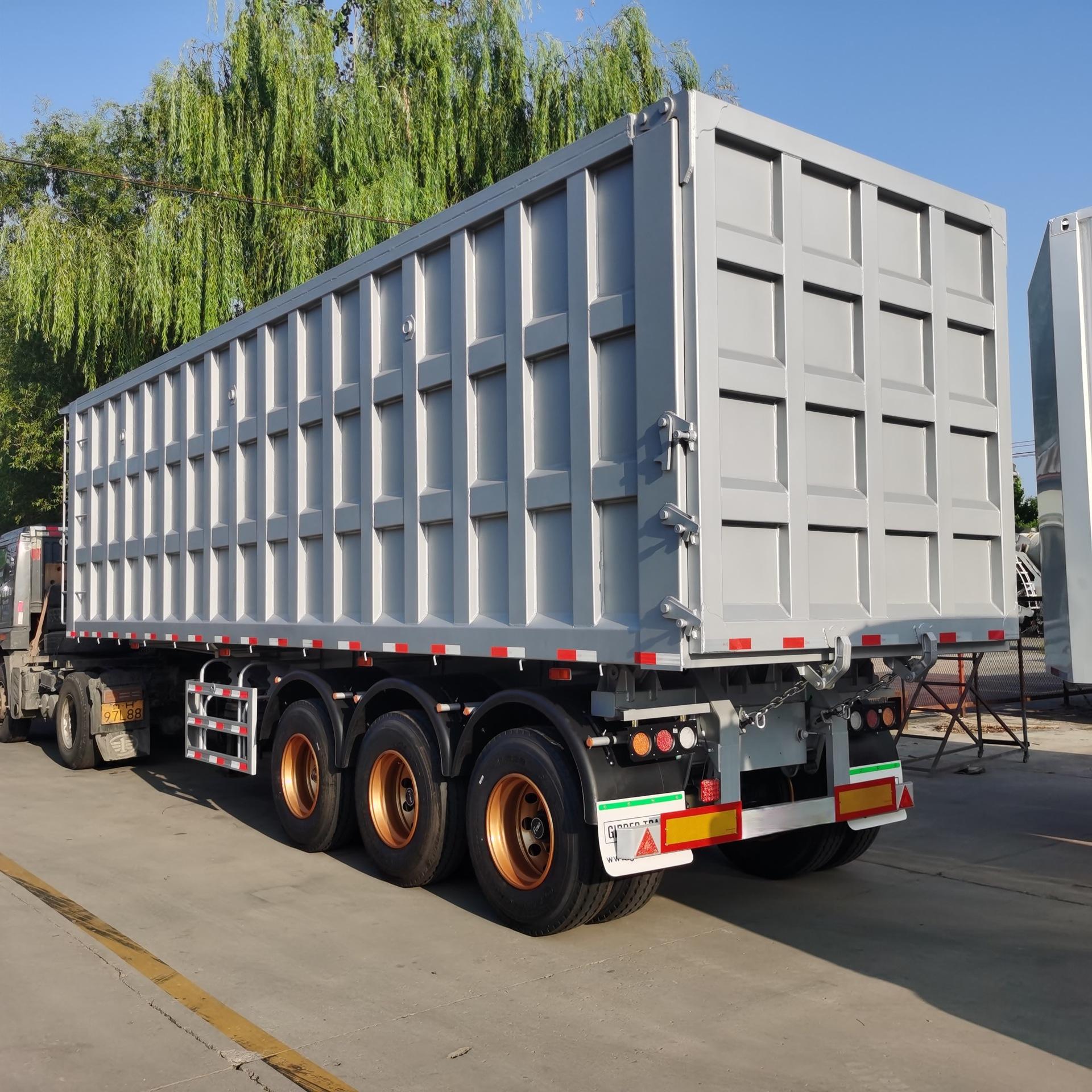 Los fabricantes venden semirremolque nuevo de tres ejes y 40 metros cúbicos para transporte de carbón, arena y piedra con descarga trasera