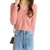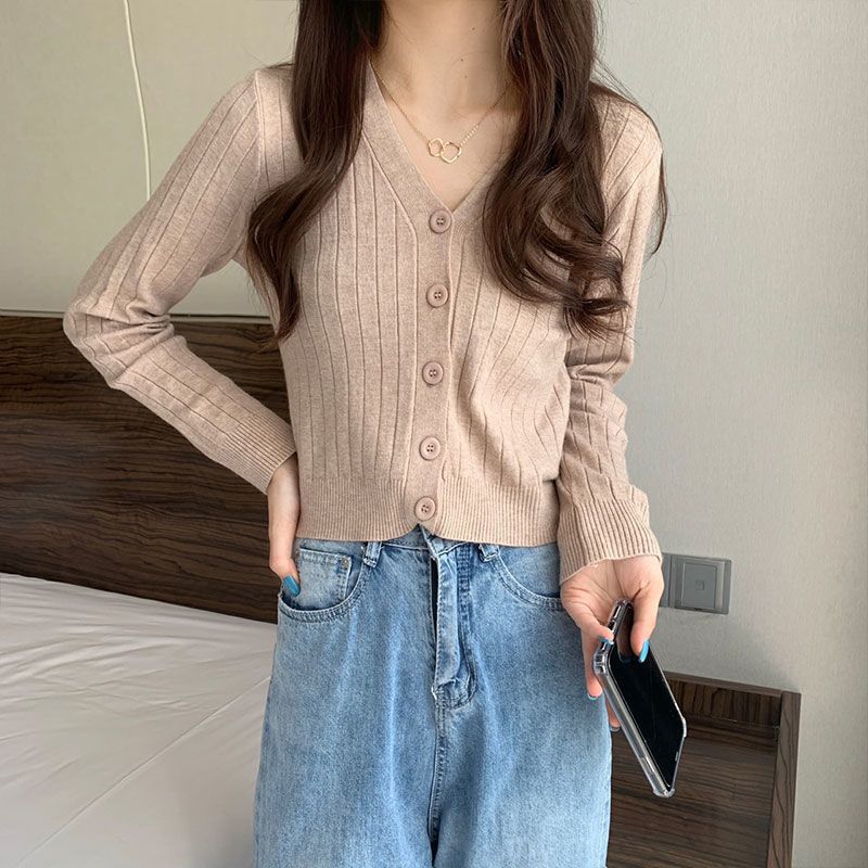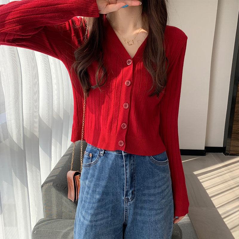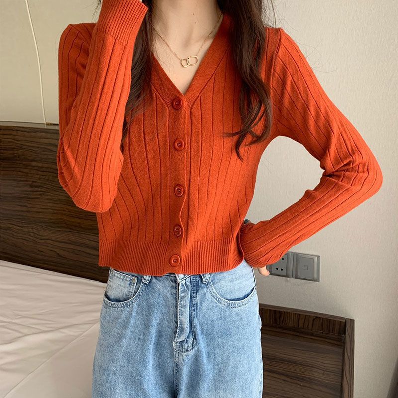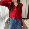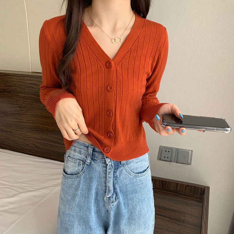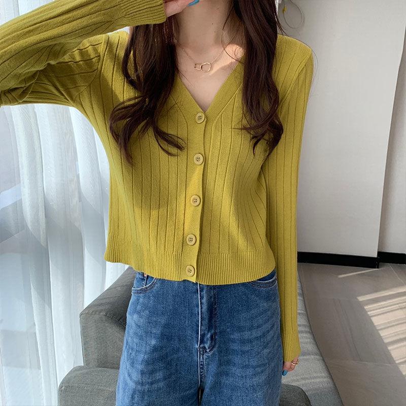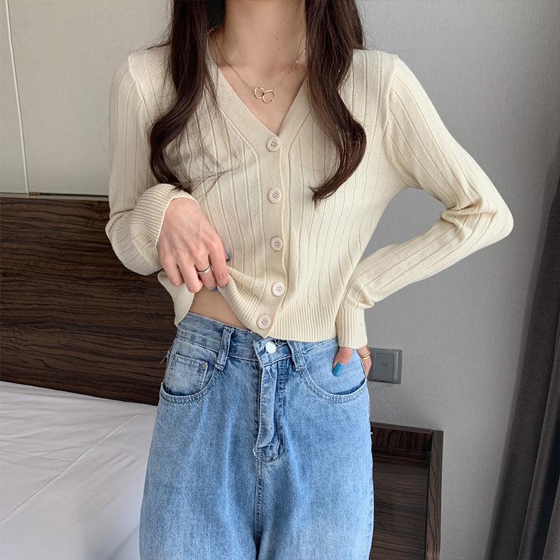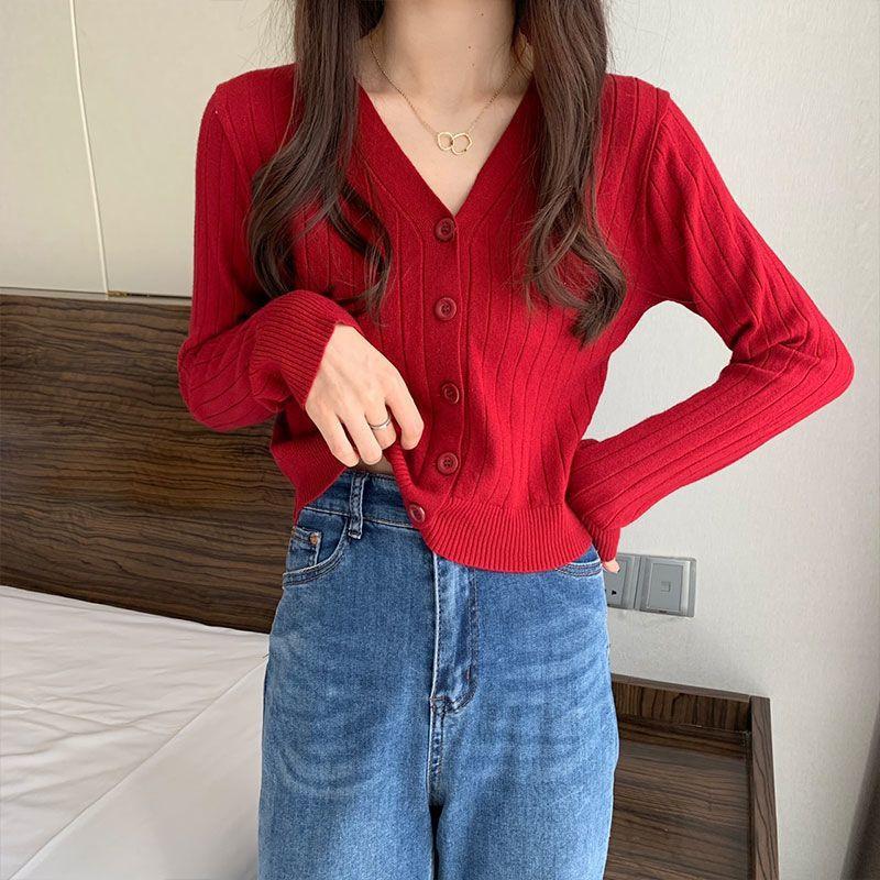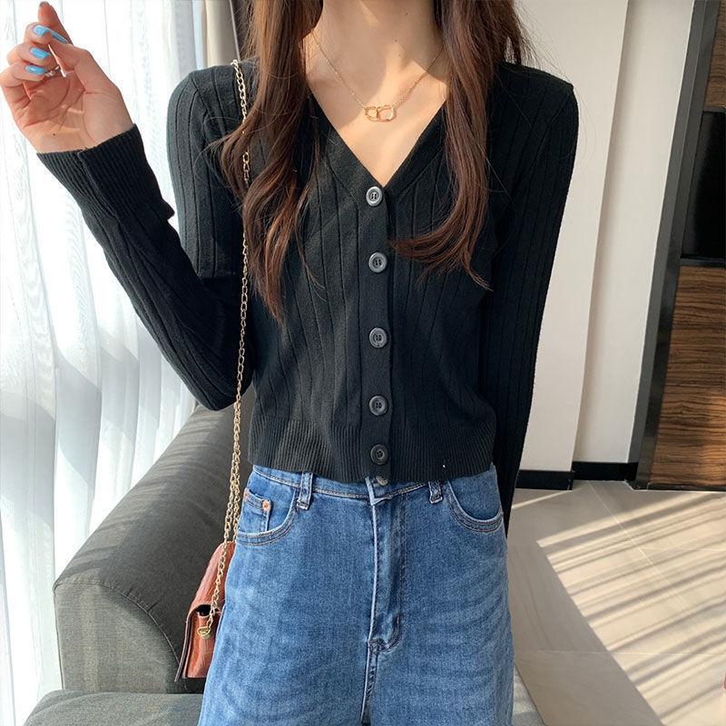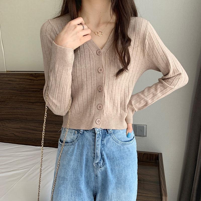 Nueva Moda Transfronteriza de Otoño e Invierno, Prendas de Punto de Moda para Mujer, Cárdigan de Cuello en V de Corte Holgado Adelgazante con Top de Manga Larga Chaqueta Ins Trend
