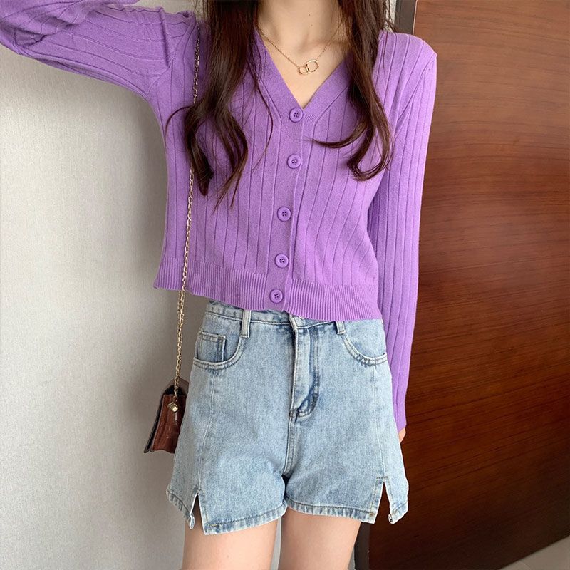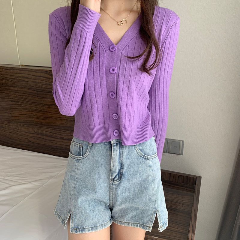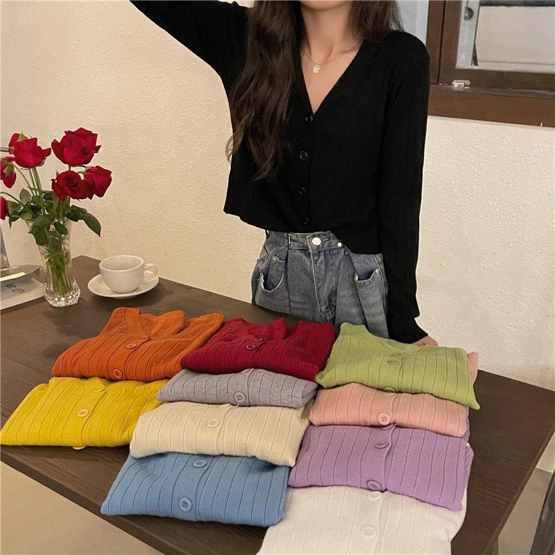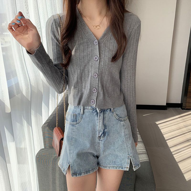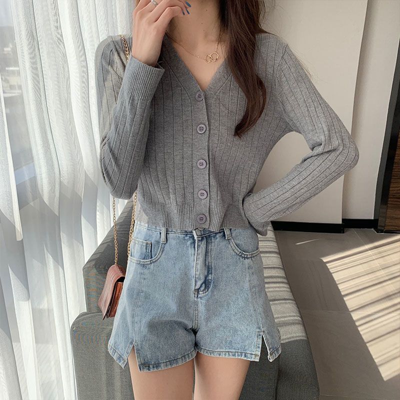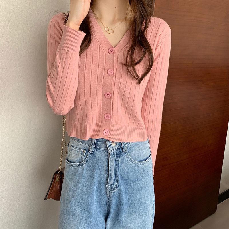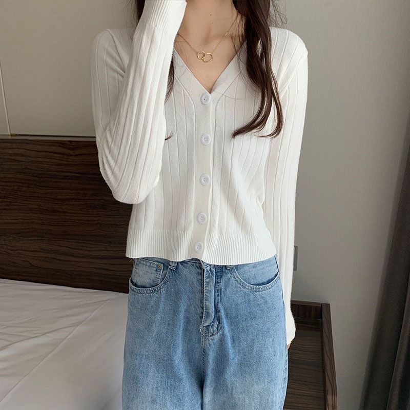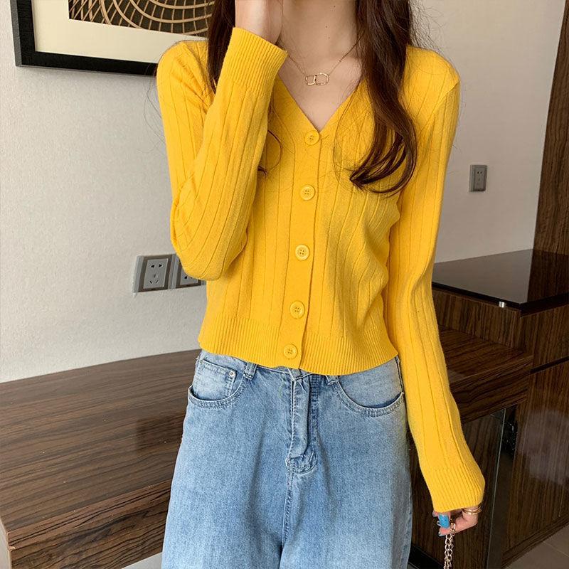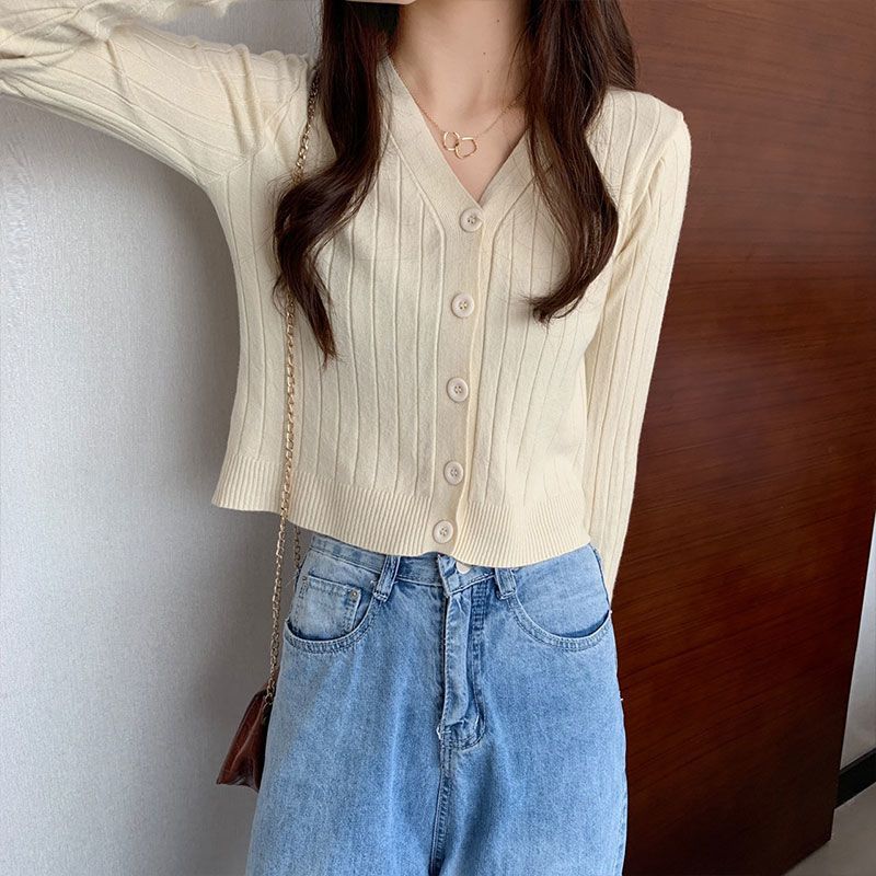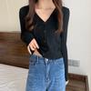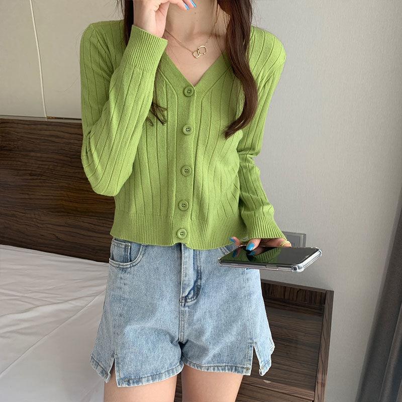Nueva Moda Transfronteriza de Otoño e Invierno, Prendas de Punto de Moda para Mujer, Cárdigan de Cuello en V de Corte Holgado Adelgazante con Top de Manga Larga Chaqueta Ins Trend