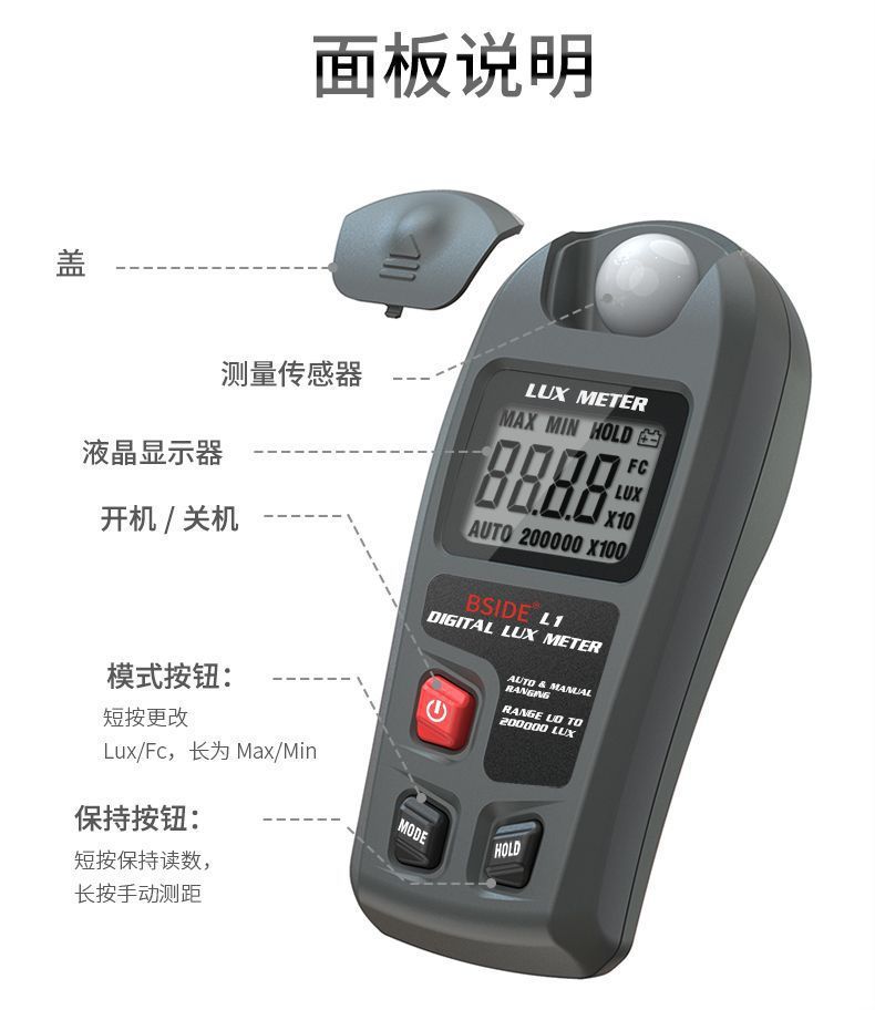 Medidor de iluminancia digital portátil BSIDE medidor de luminancia de alta precisión medidor de lúmenes