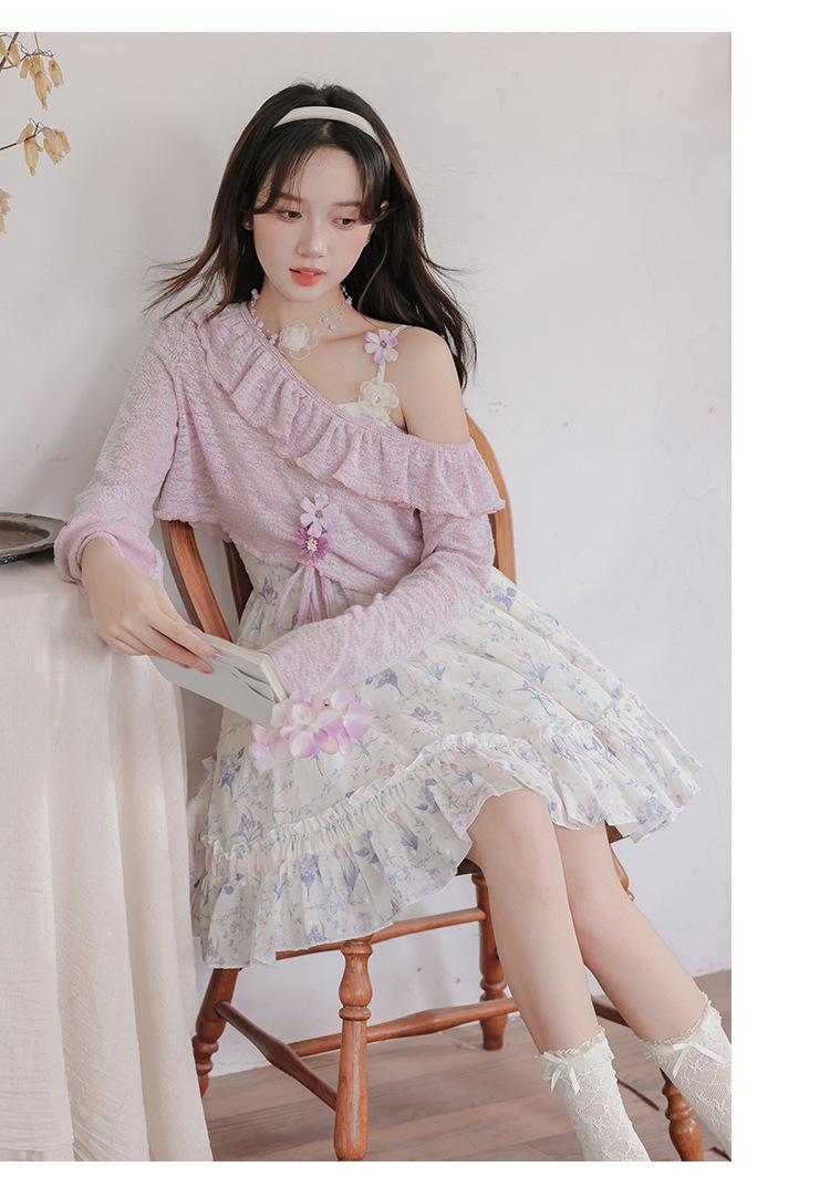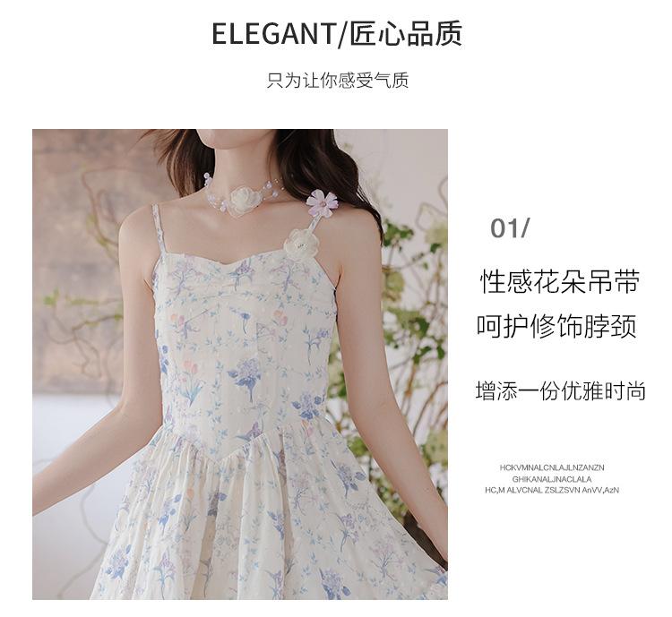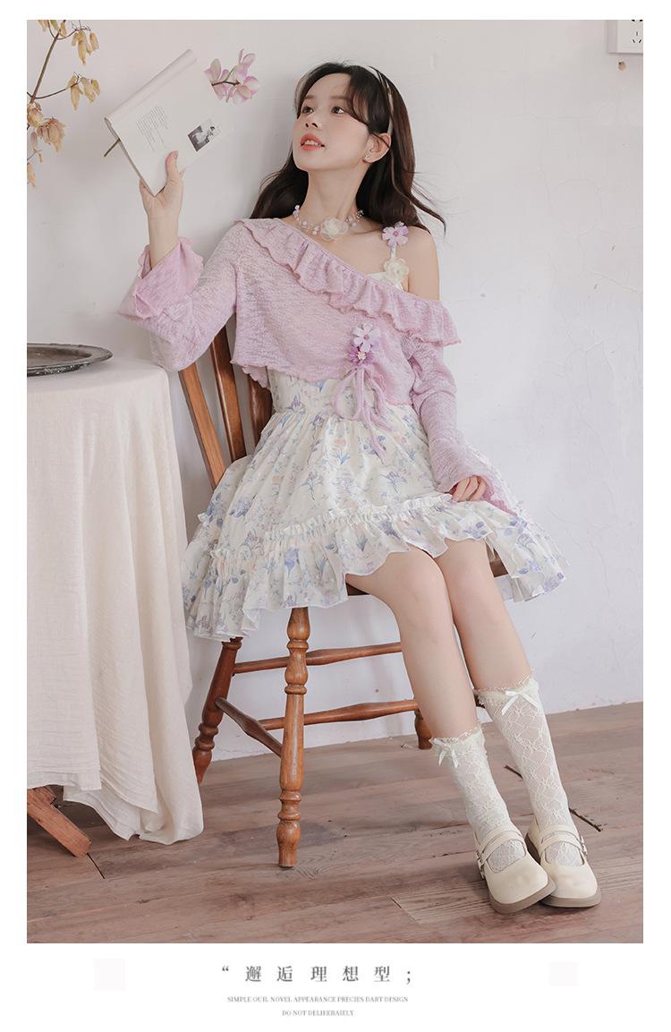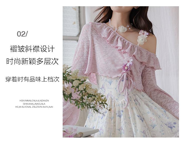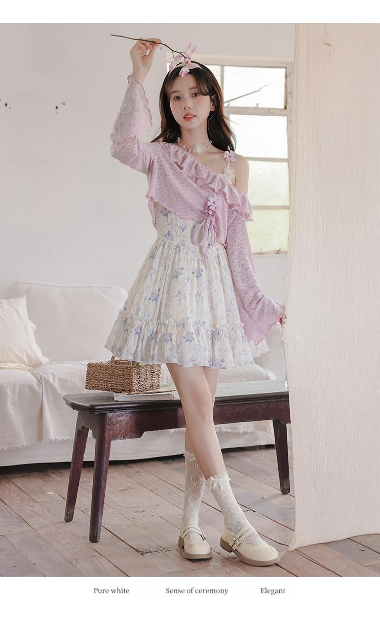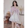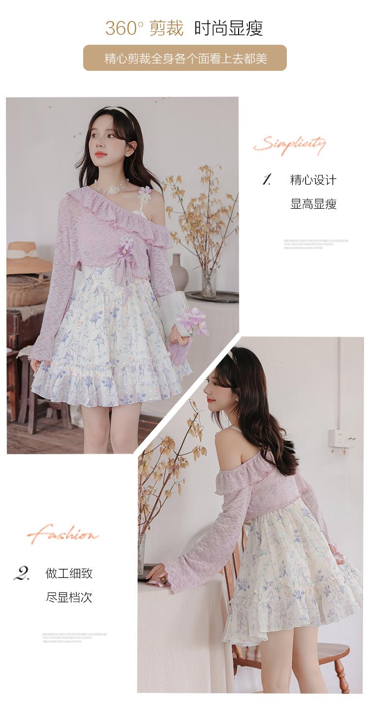 2025 Nuevo Estilo de Verano Femenino Hada Púrpura Floral Tirantes Volantes Cintura Vestido + Traje de Chal para Mujeres