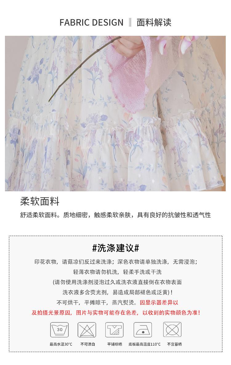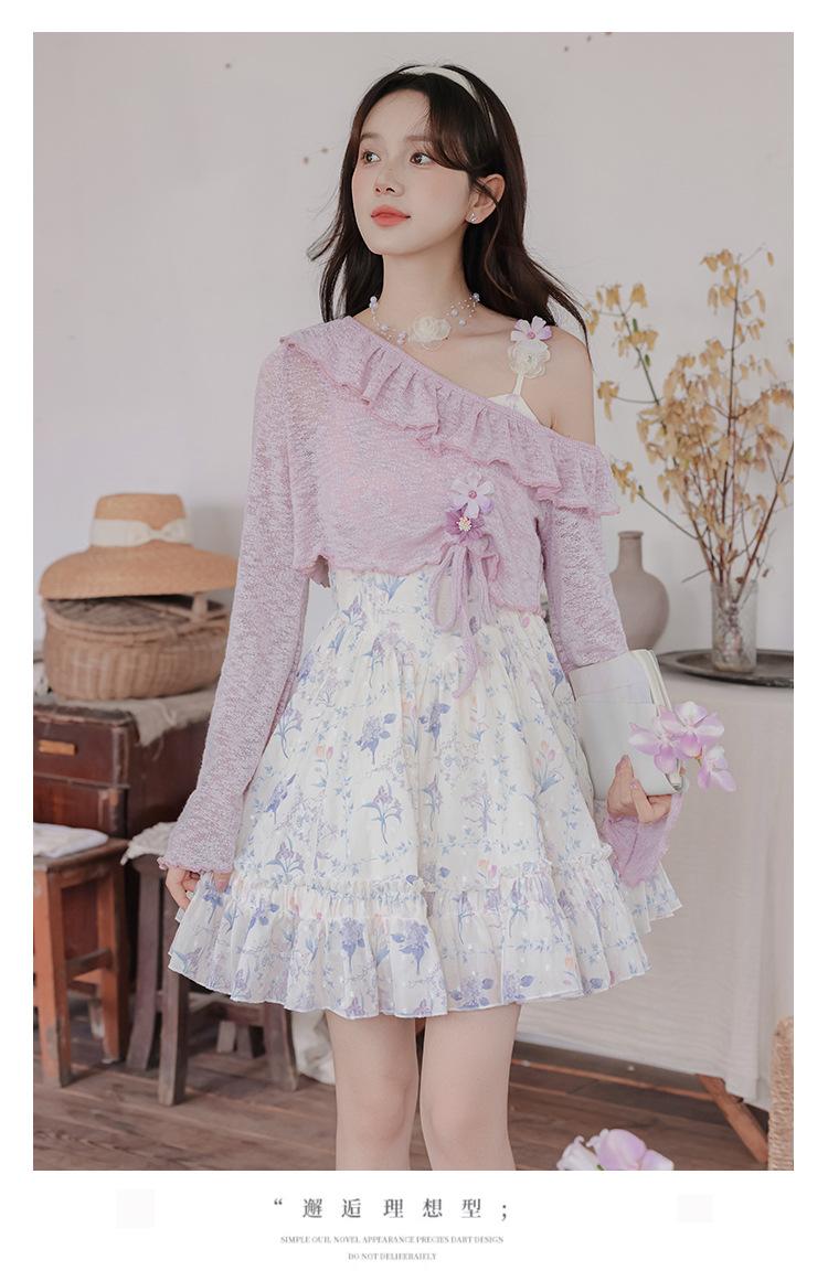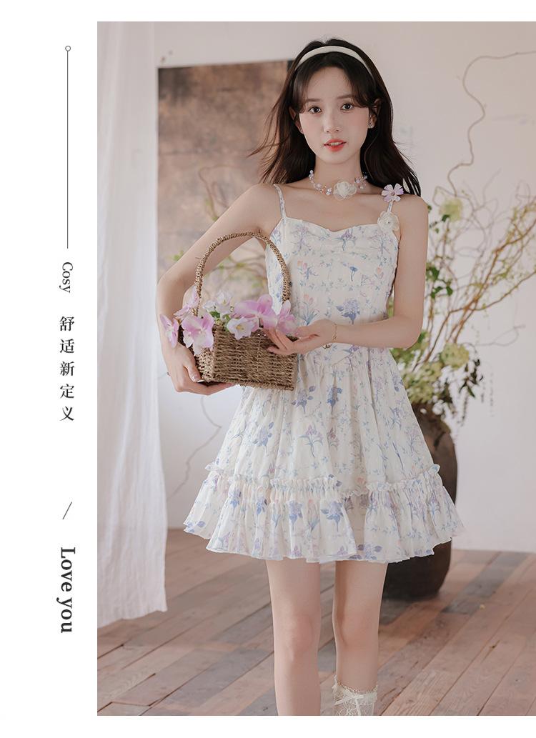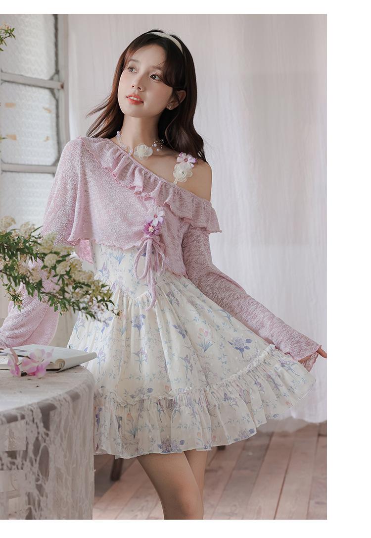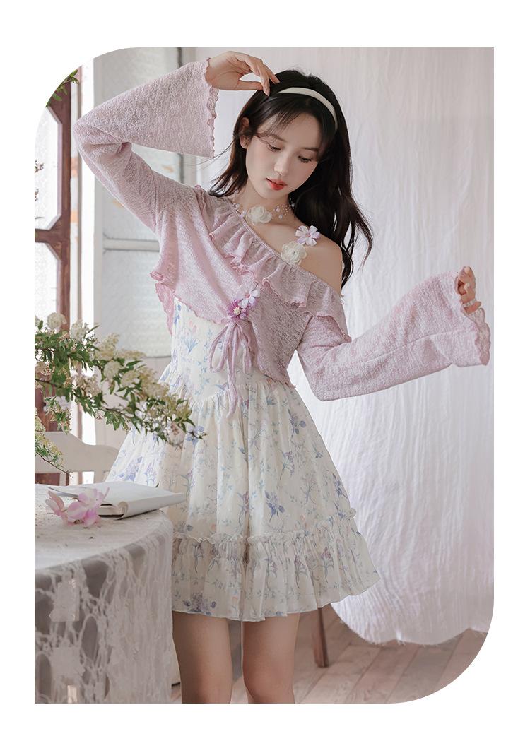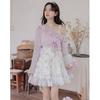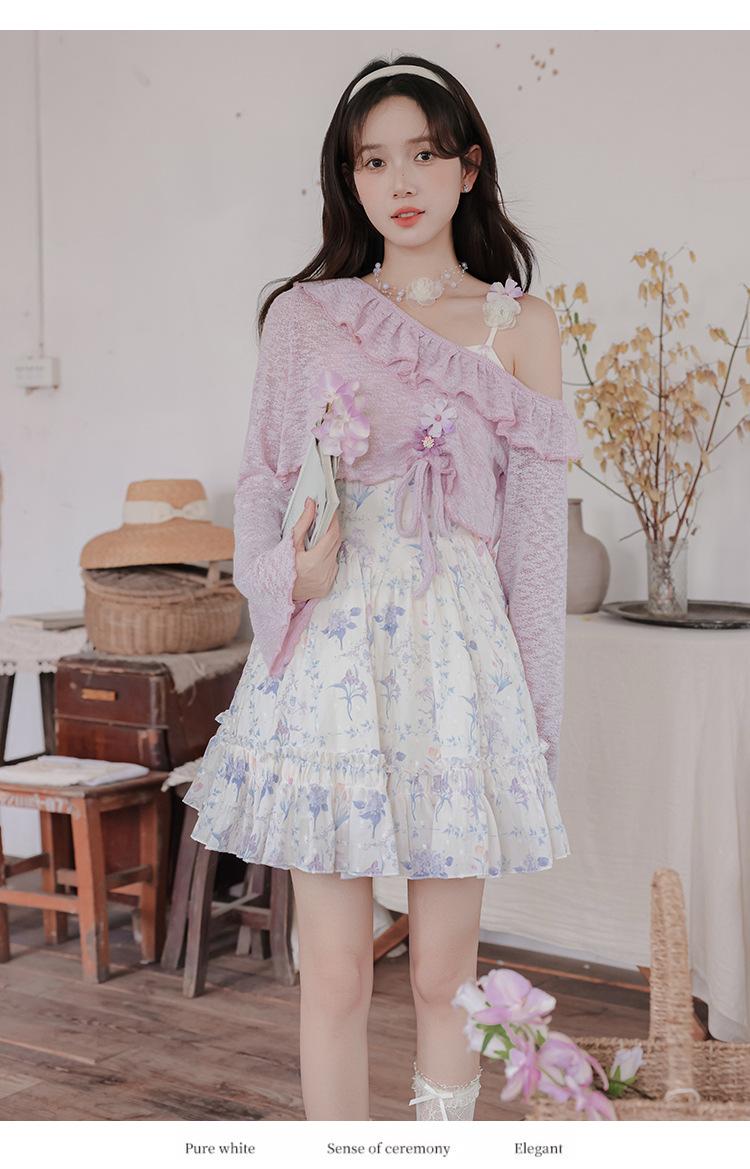 2025 Nuevo Estilo de Verano Femenino Hada Púrpura Floral Tirantes Volantes Cintura Vestido + Traje de Chal para Mujeres