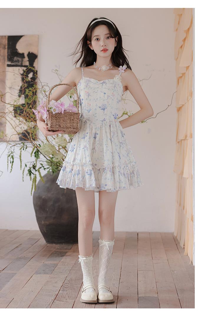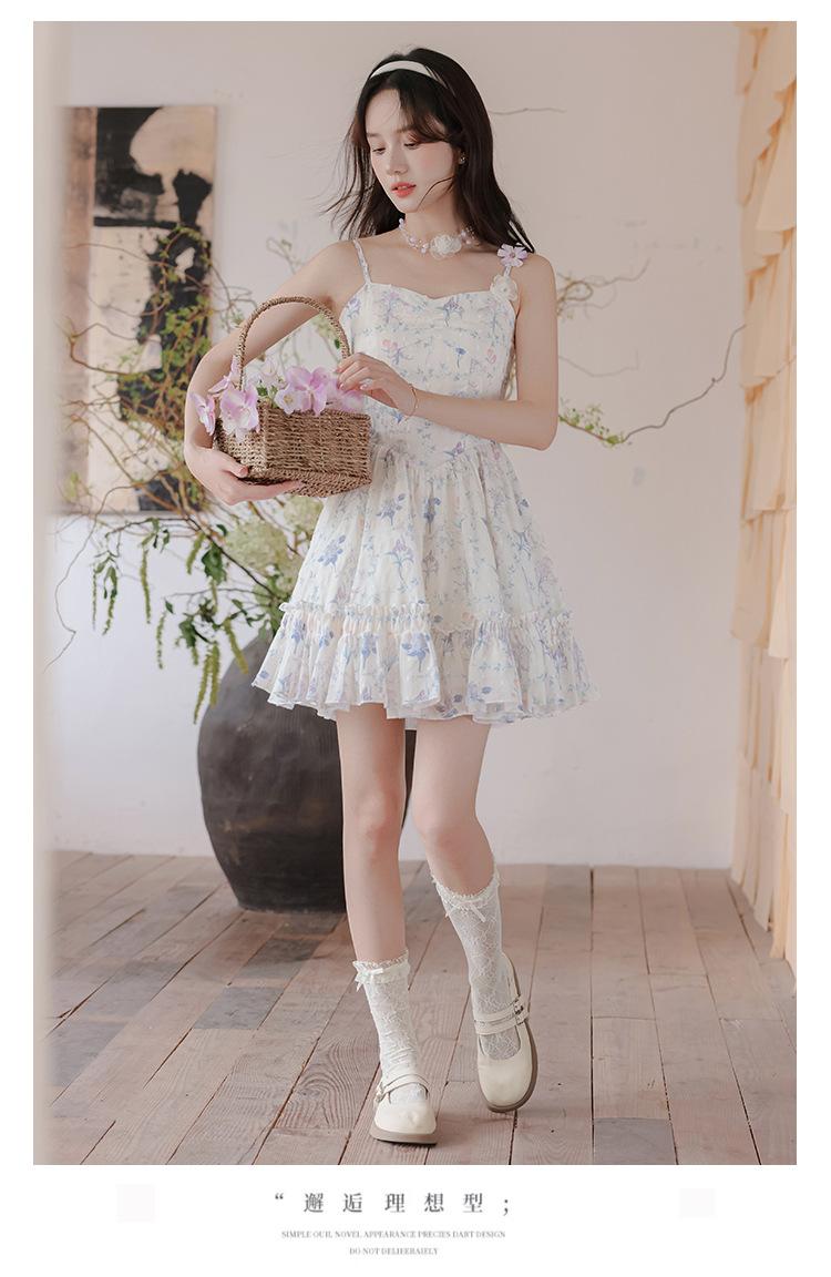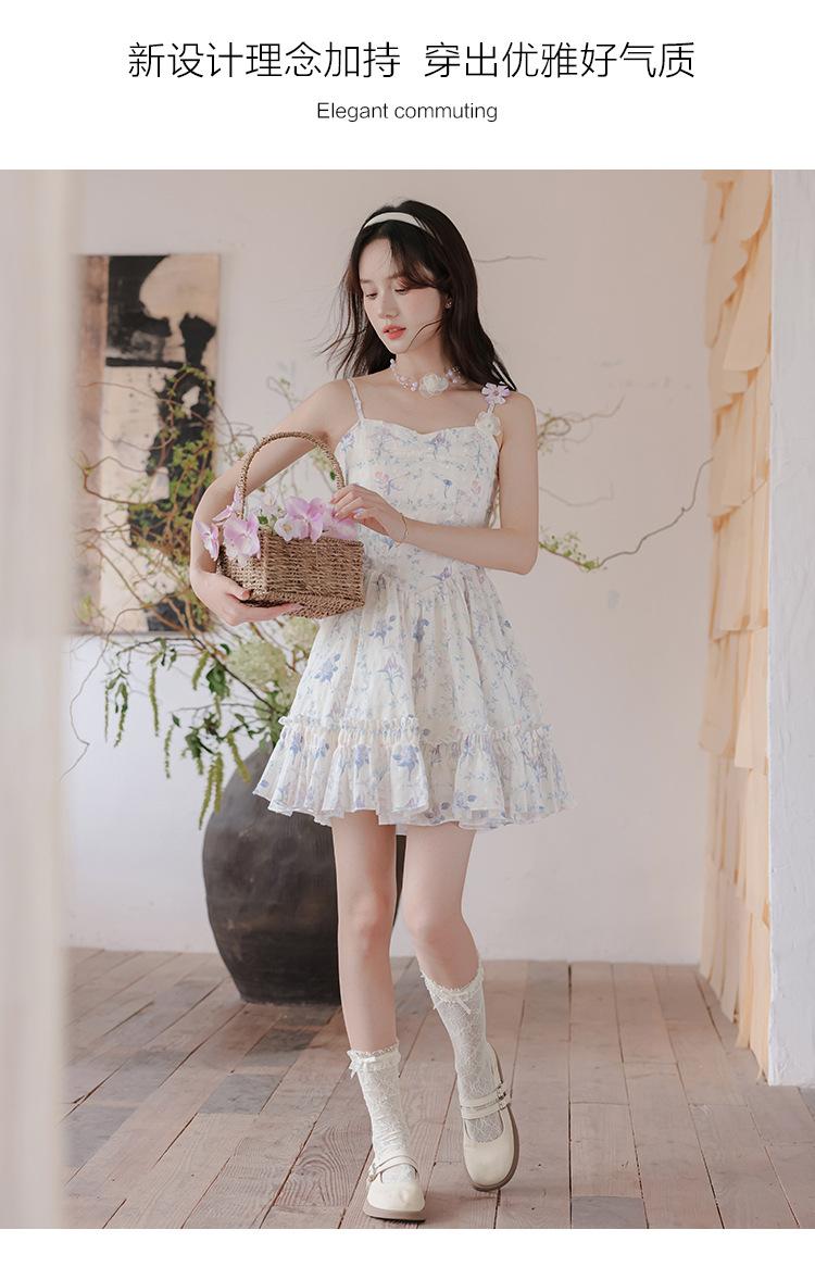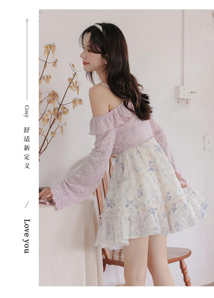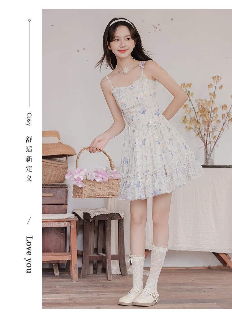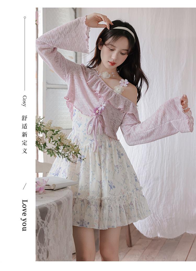 2025 Nuevo Estilo de Verano Femenino Hada Púrpura Floral Tirantes Volantes Cintura Vestido + Traje de Chal para Mujeres