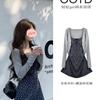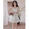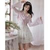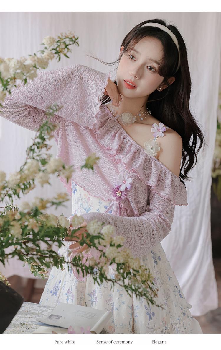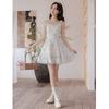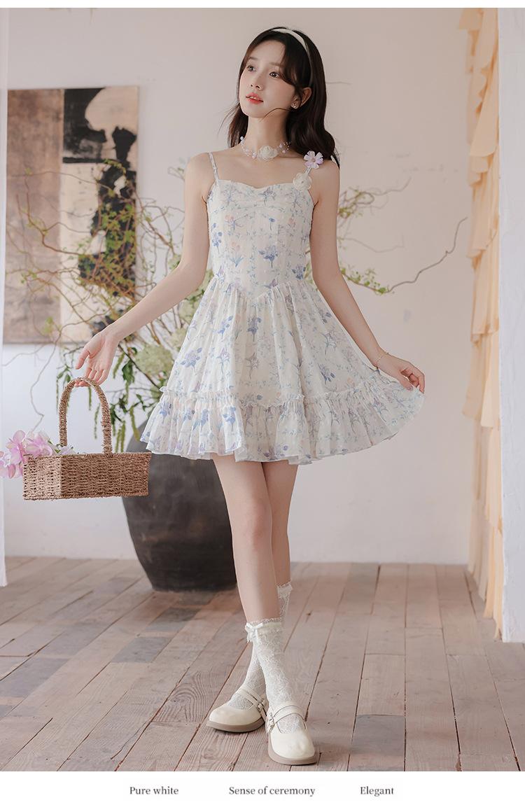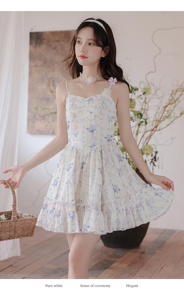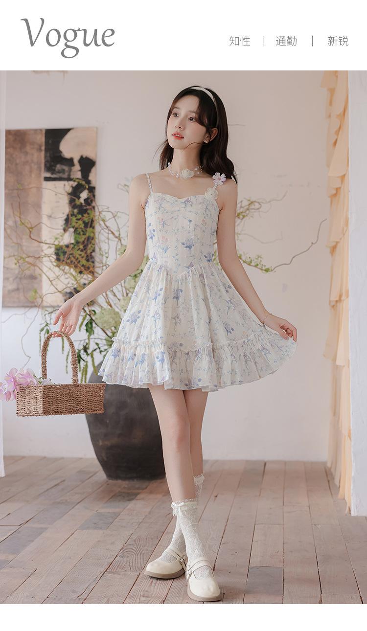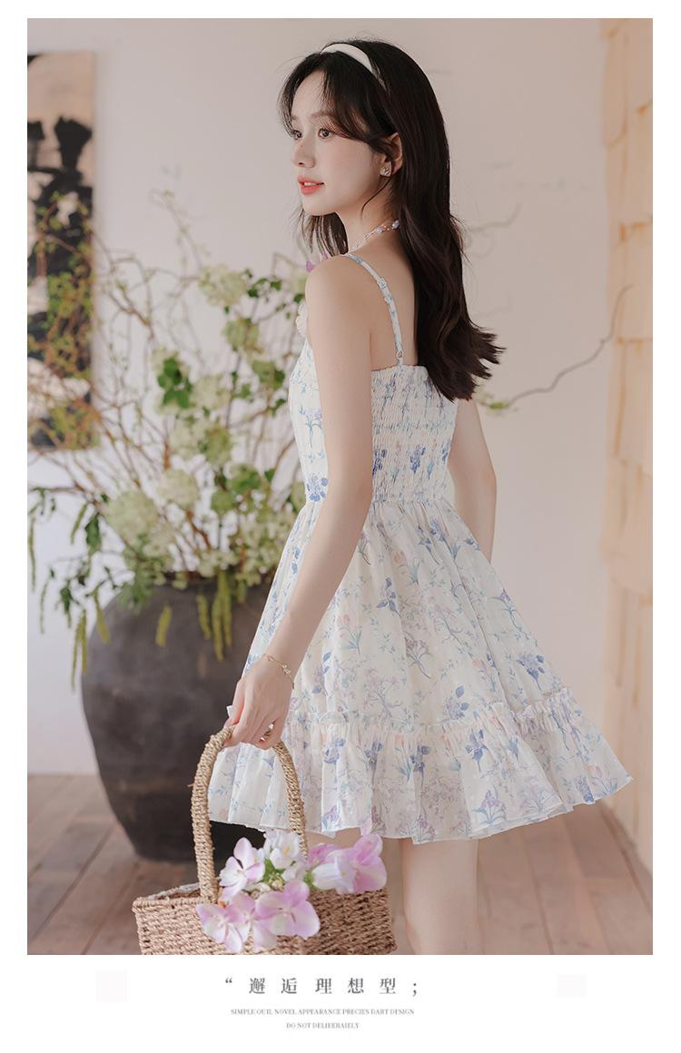 2025 Nuevo Estilo de Verano Femenino Hada Púrpura Floral Tirantes Volantes Cintura Vestido + Traje de Chal para Mujeres