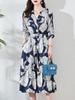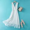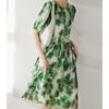 Vestido de Seda Agrietada de Lujo Ligero Exquisitamente Bordado Hilo Nube Fragante Cuello en V Seda de Morera Cintura Falda Midi