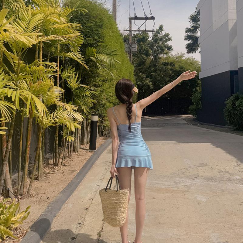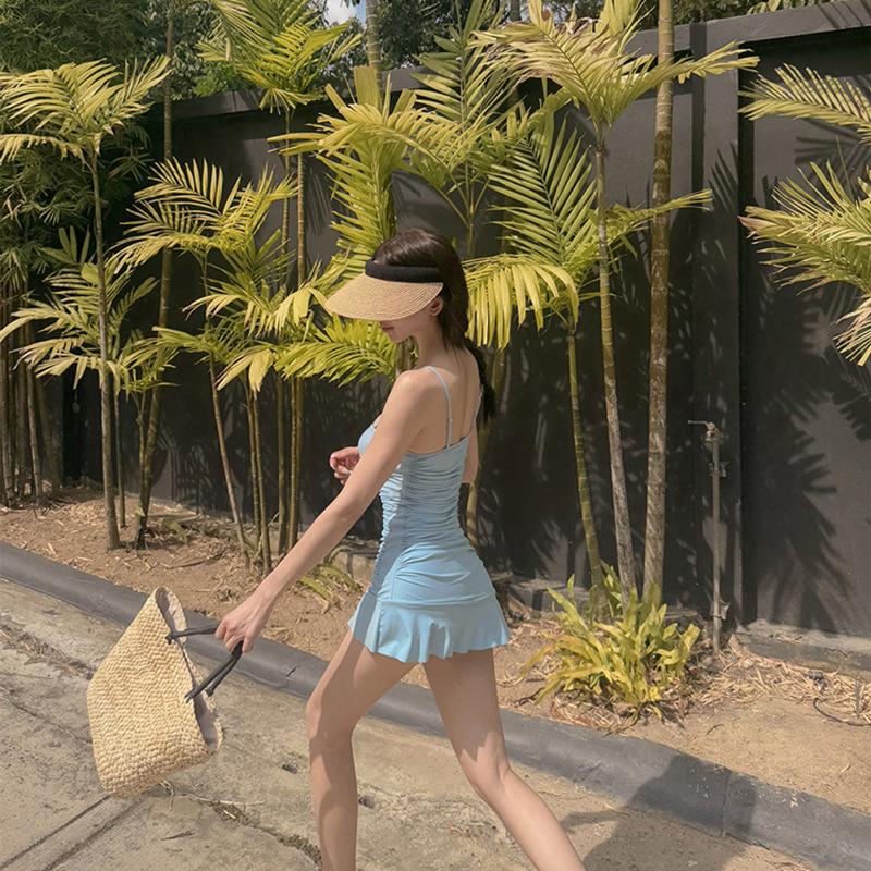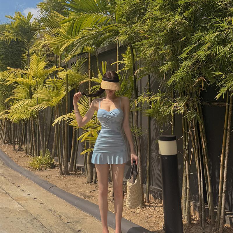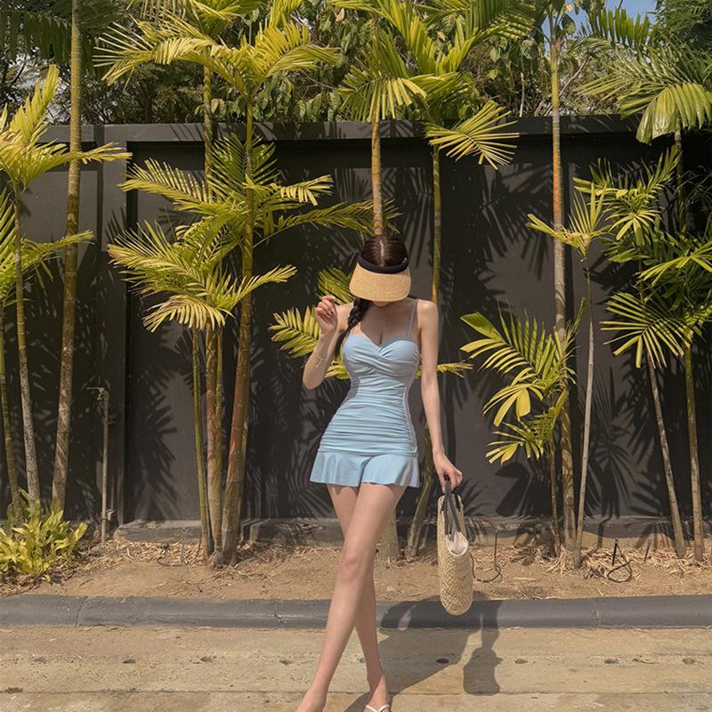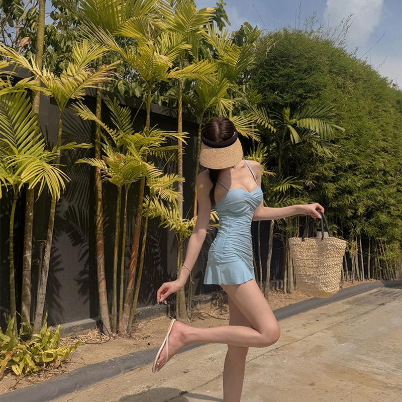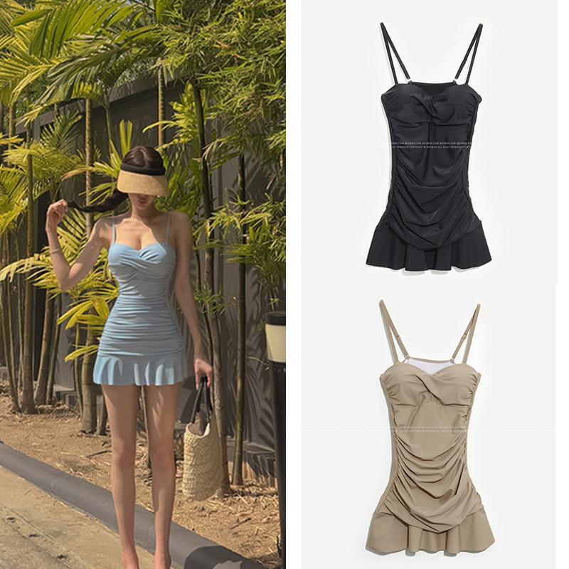 Traje de Baño 2025 Nuevo de Falda Dividida para Mujer Cubriendo Vientre y Look Adelgazante Traje de Baño para Resort de Playa Aguas Termales [Envío Directo]