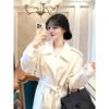 2025 Primavera y Otoño Nuevo Estilo Pequeño Estilo Coreano Casual Francés Socialité Largo Alto Blanco Chaqueta Cortavientos para Mujer