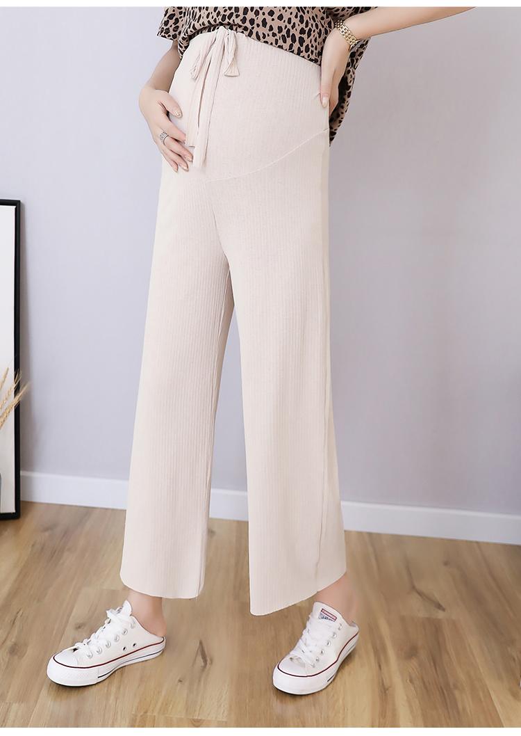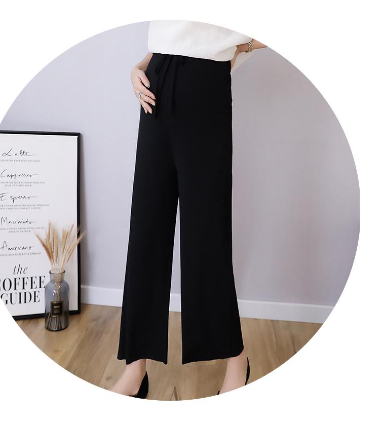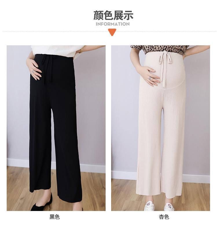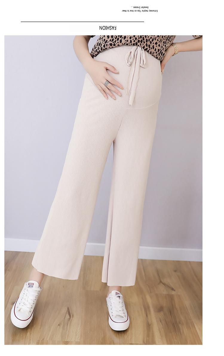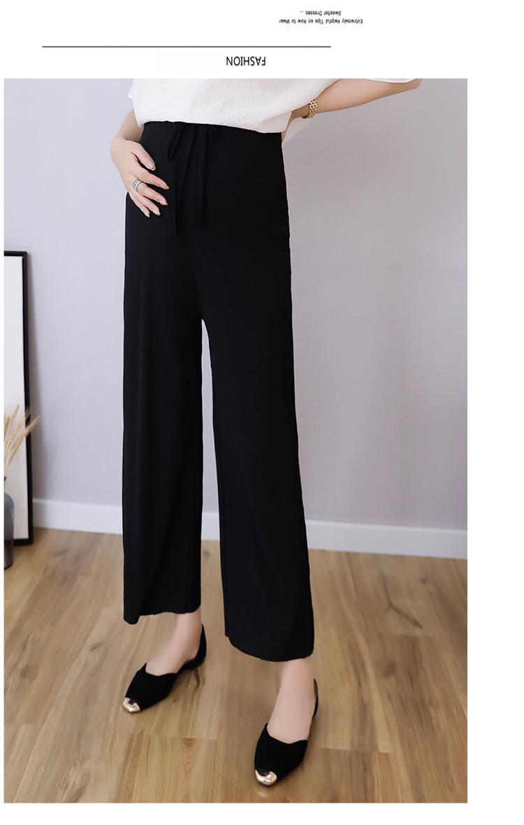 Pantalones para Mujeres Embarazadas 2022 Primavera y Verano Nuevos Pantalones Anchos de Seda Helada con Cordones Pantalones Recortados Rectos Sueltos Pantalones Abdominales para Mujeres Embarazadas