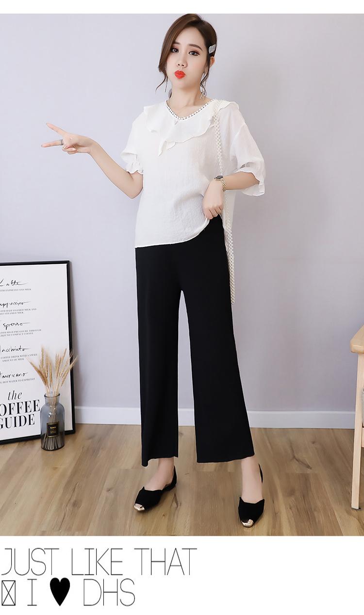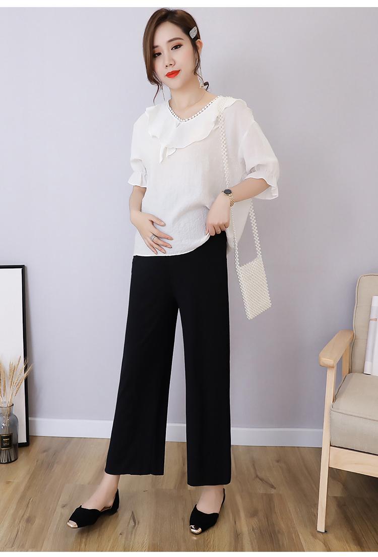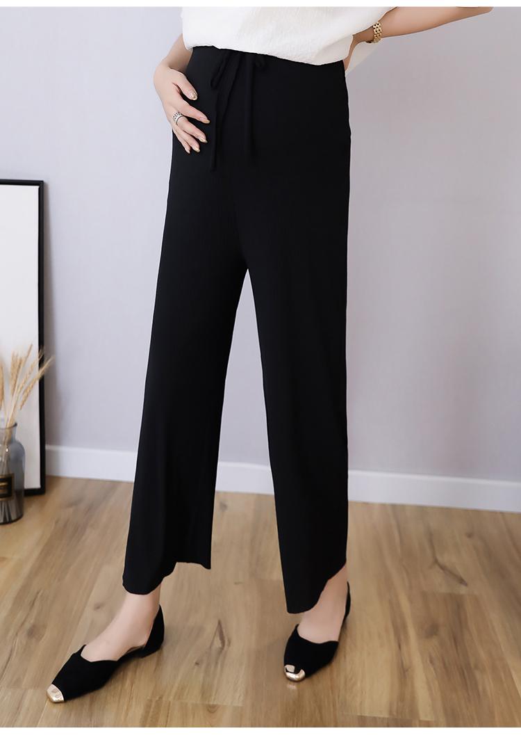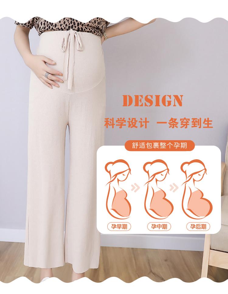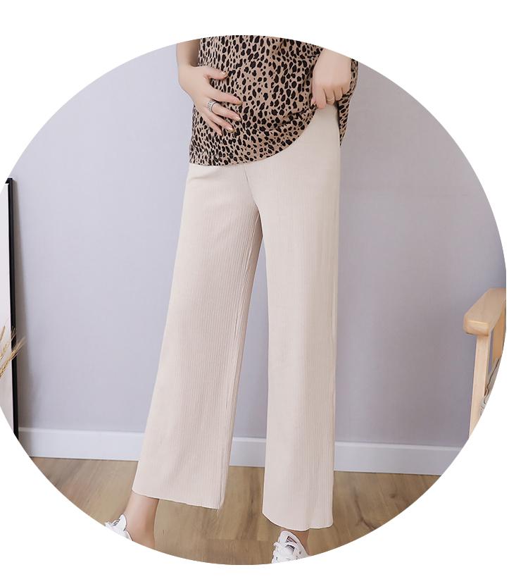 Pantalones para Mujeres Embarazadas 2022 Primavera y Verano Nuevos Pantalones Anchos de Seda Helada con Cordones Pantalones Recortados Rectos Sueltos Pantalones Abdominales para Mujeres Embarazadas