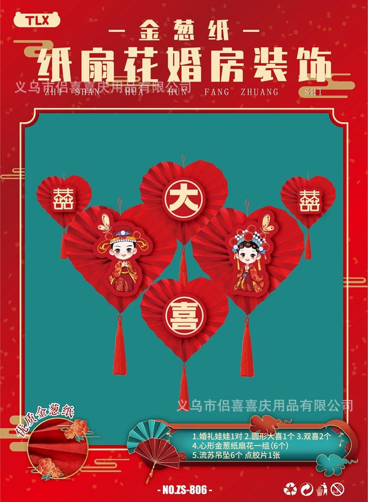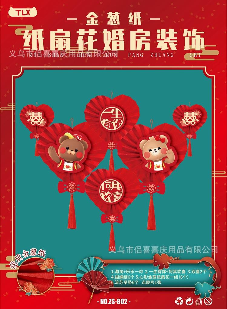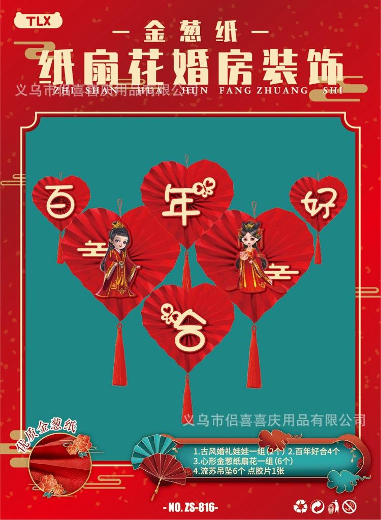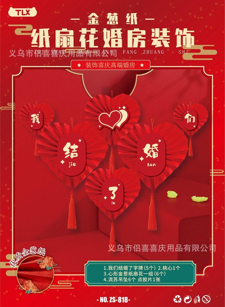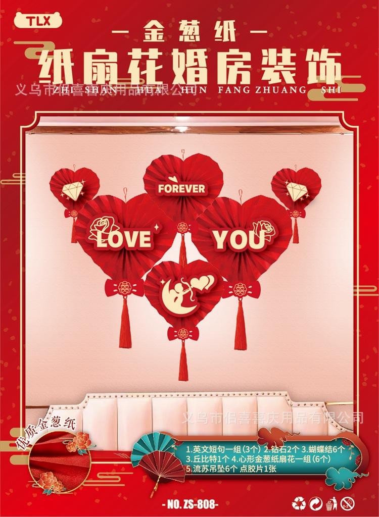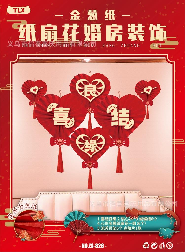 Celebración de Boda Flor de Abanico de Papel Decoración de Salón de Bodas Flor de Abanico de Papel Estampado en Caliente Set de Flores de Abanico de Papel con Brillo Rojo Grande en Forma de Corazón