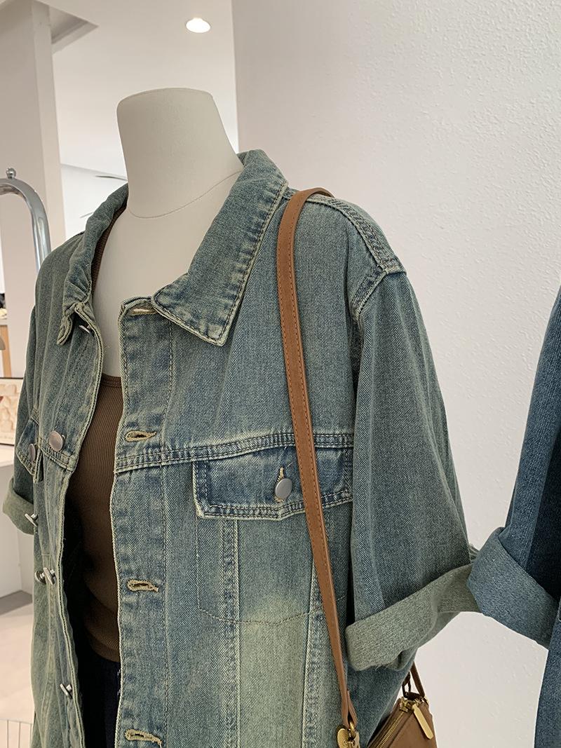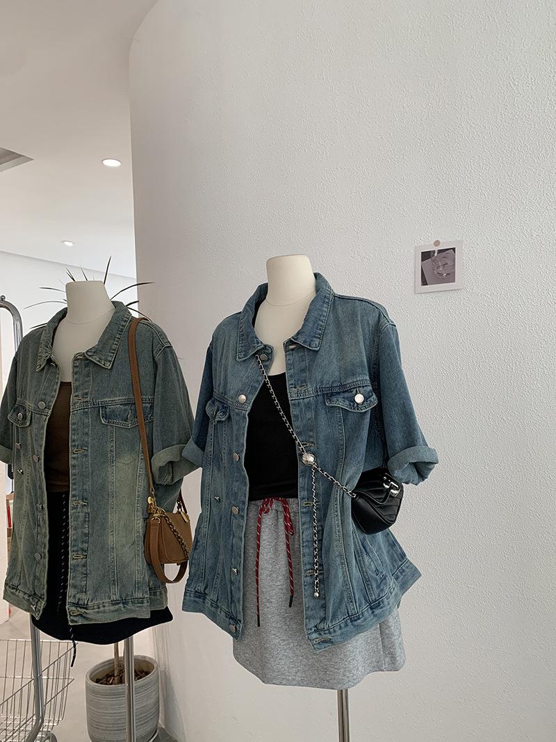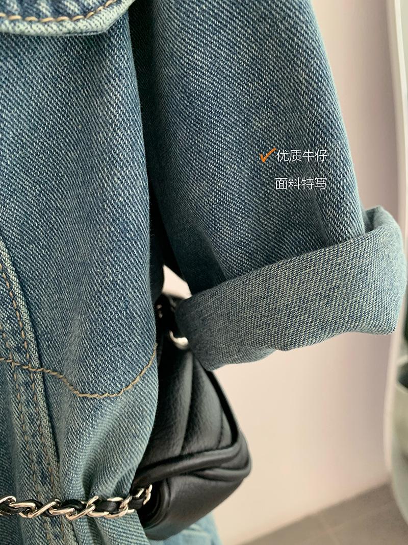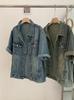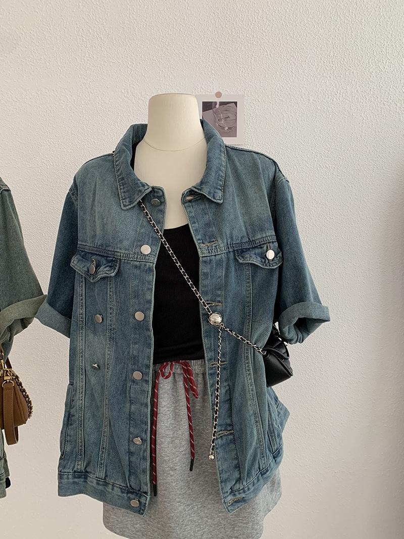 Omalai Retro Coreano Moda Verano Chaqueta de Mezclilla de Manga Corta de Moda Solapa Pecho Sencillo Top 3625