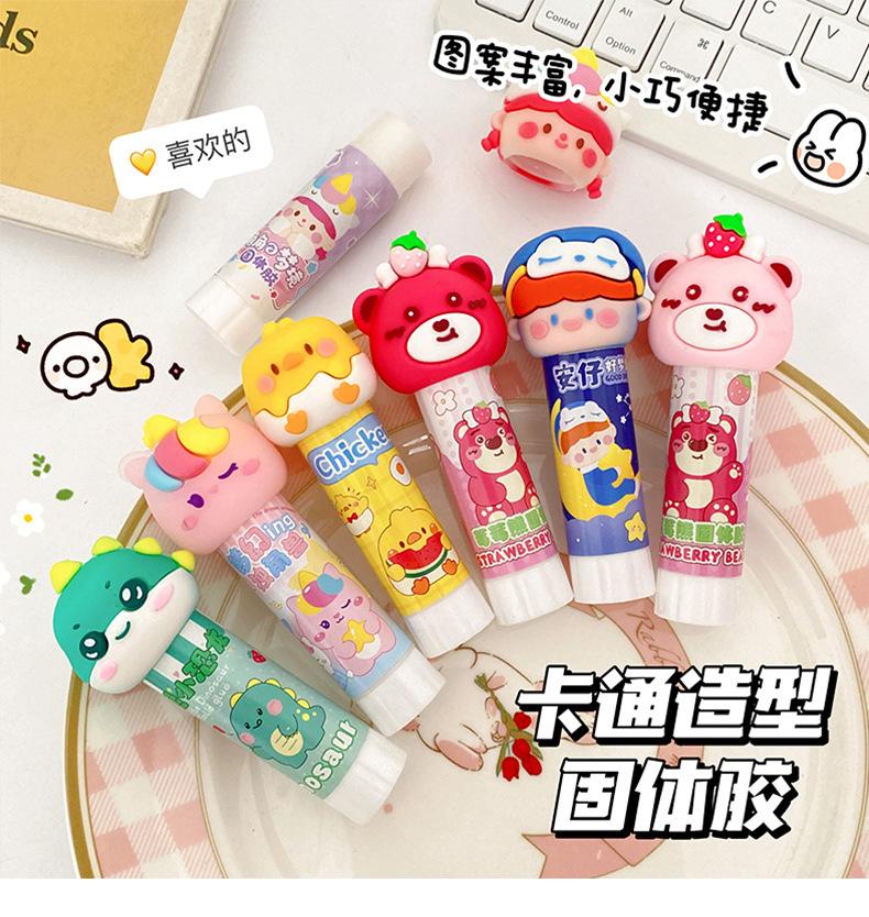 Pegamento Sólido para Niños de Dibujos Animados Forma Estéreo para Estudiantes Pegamento Sólido de Alta Viscosidad Papelería de Oficina Materiales Hechos a Mano