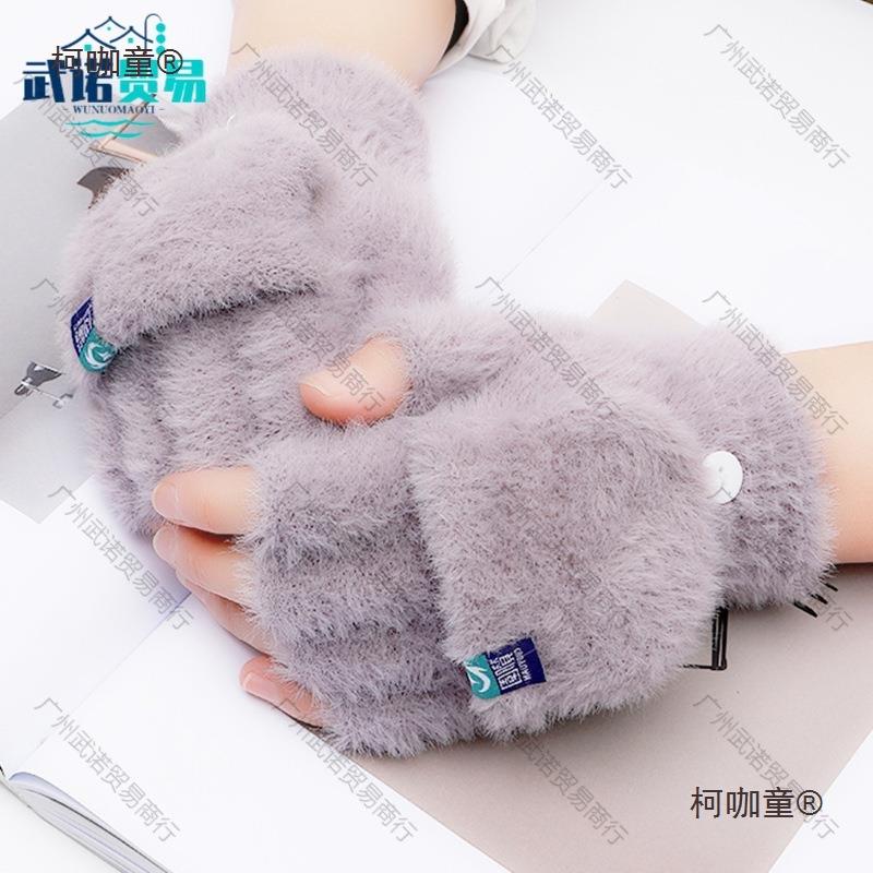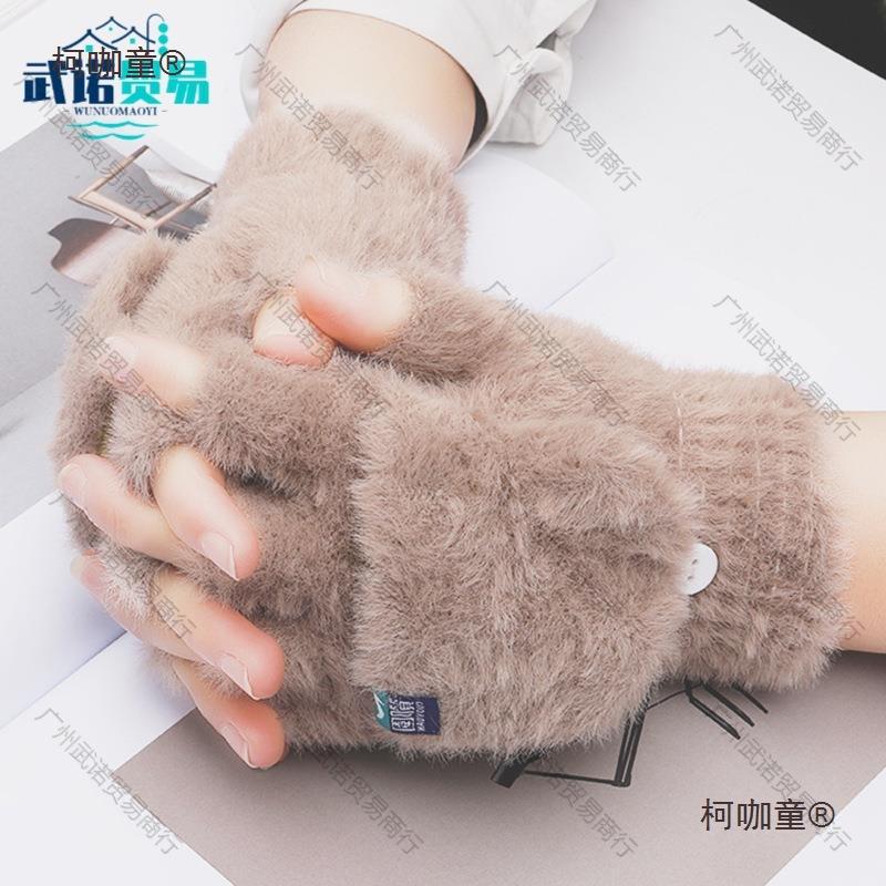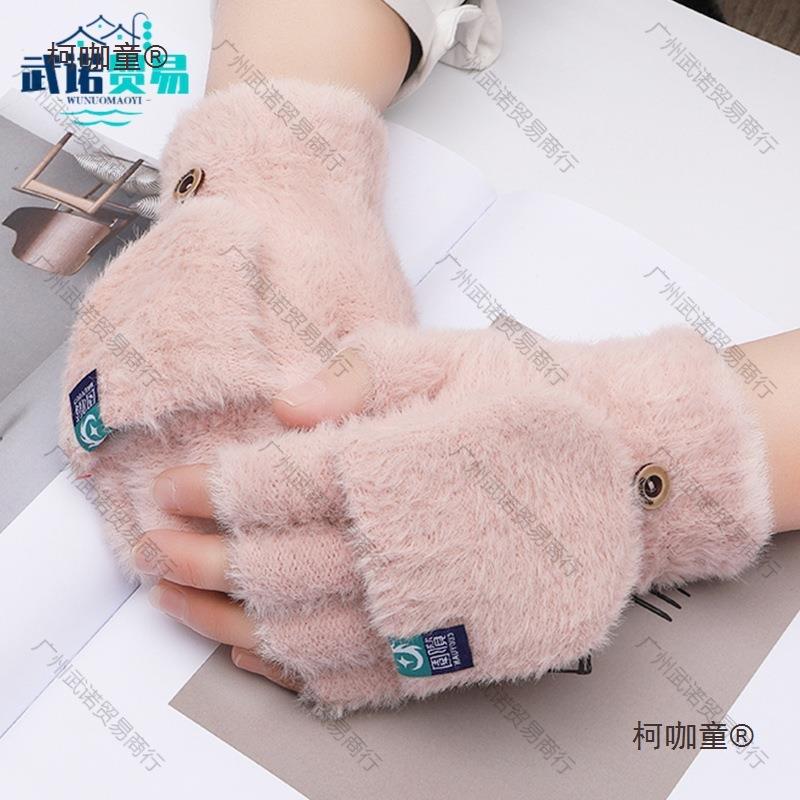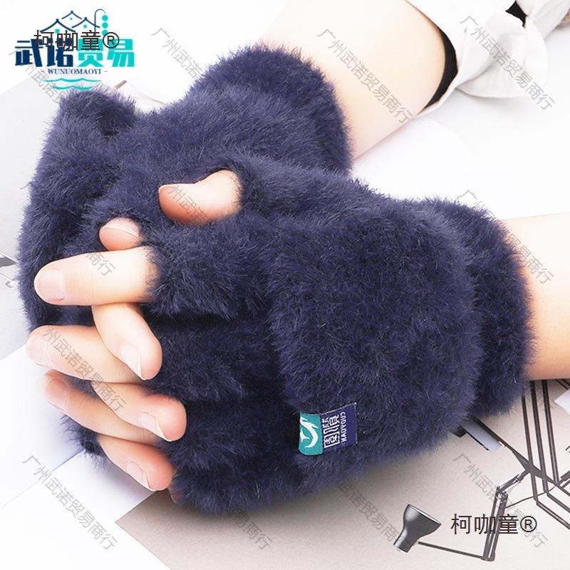 Guantes de Felpa de Medio Dedo con Cubierta Abatible, Guantes de Punto de Invierno, Cálidos y Gruesos sin Dedos de Terciopelo de Visón Sintético Metabo