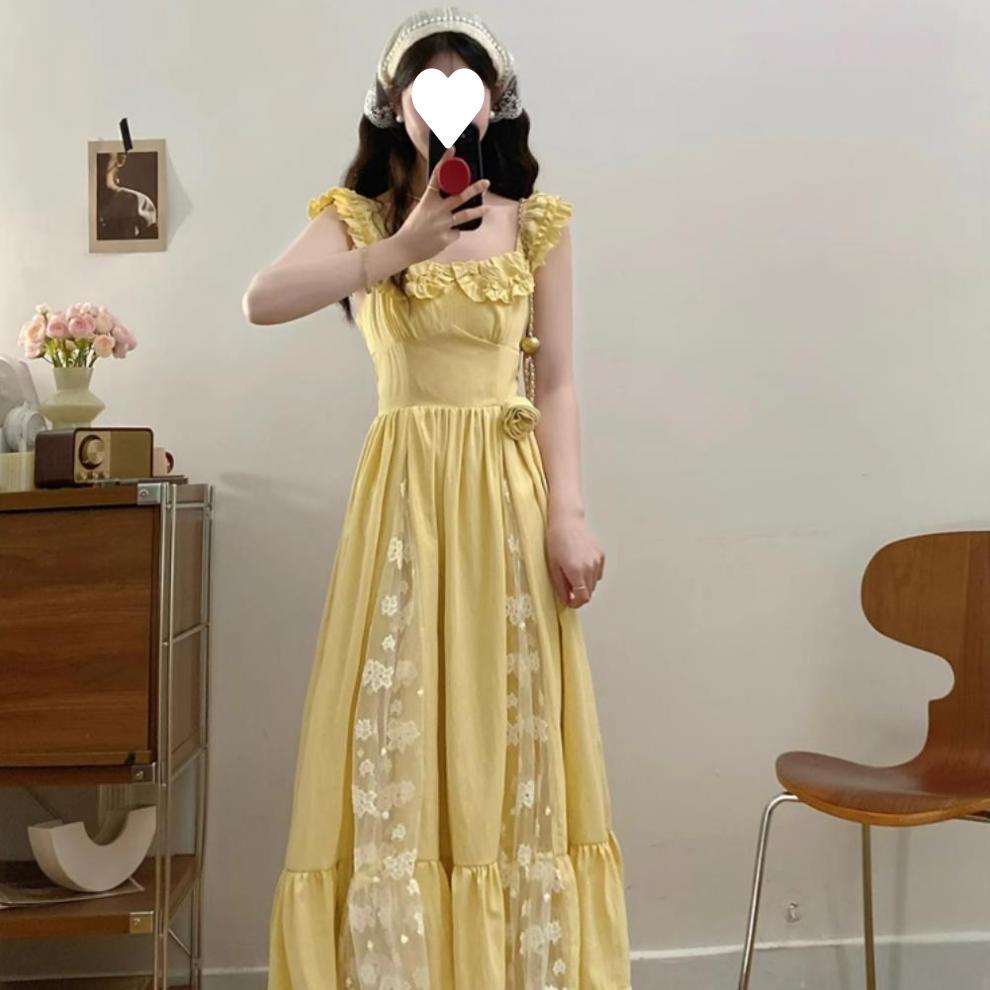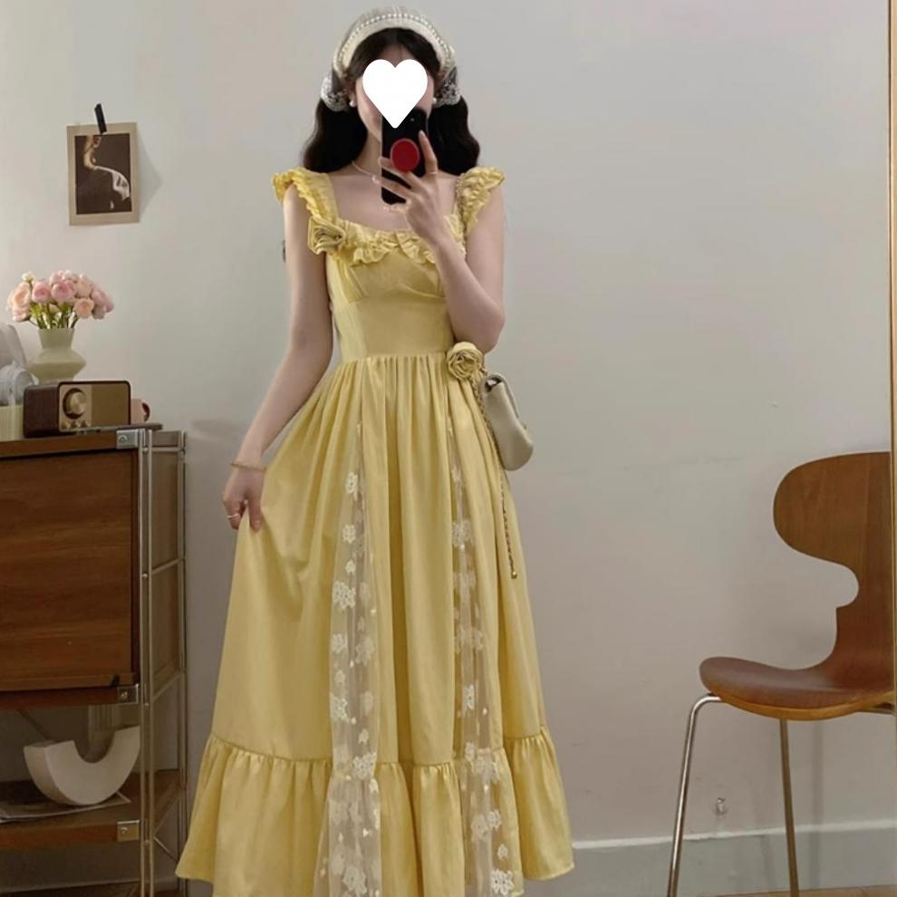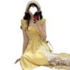 Vestido francés estilo halter con tirantes para mujer, ambiente veraniego, vacaciones junto al mar, playa, vestido largo
