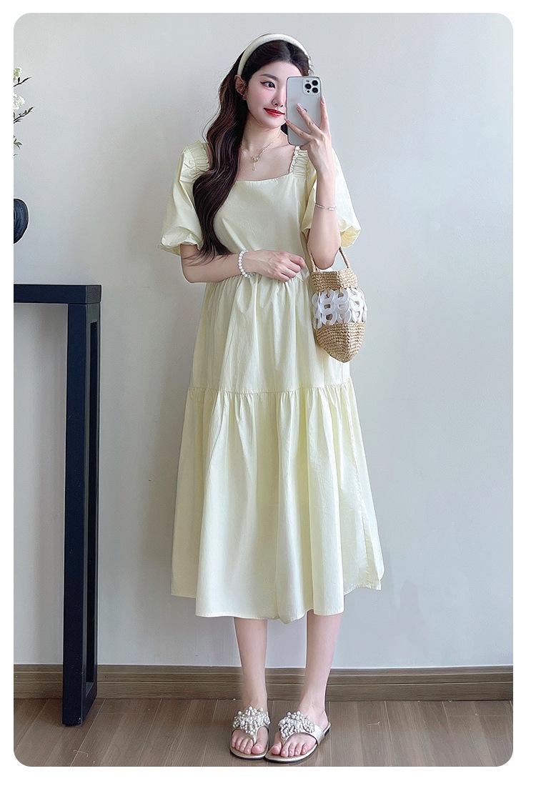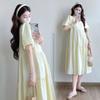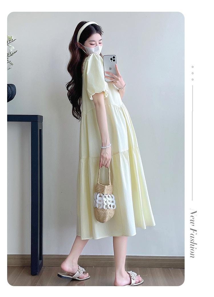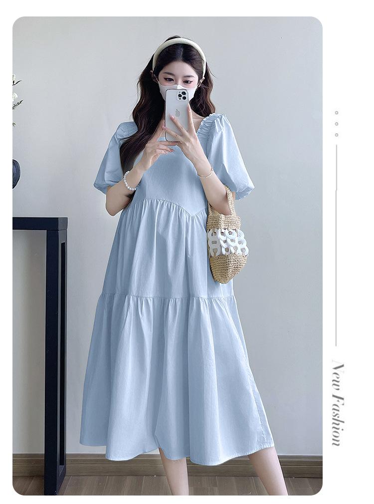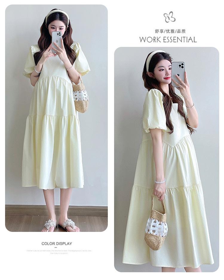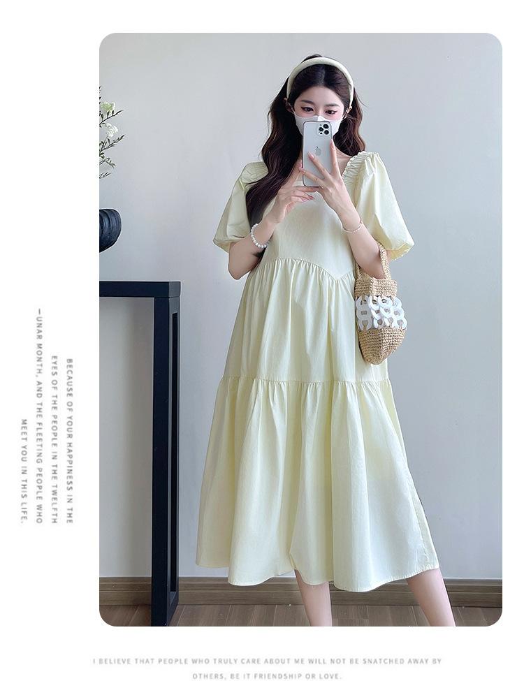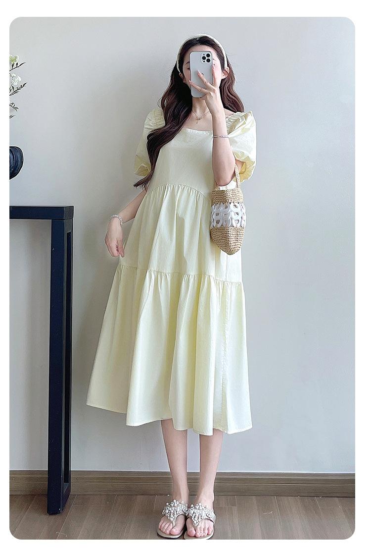 Ropa de Maternidad 2025 Verano Nuevo Estilo Cuello Cuadrado Manga Abullonada Dulce Francés Vestido de Maternidad Midi