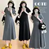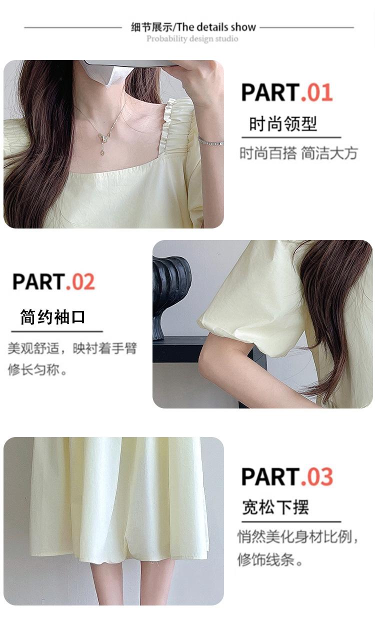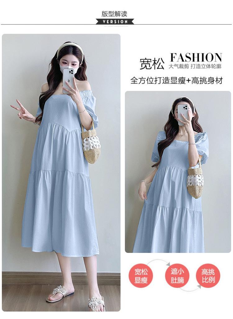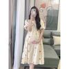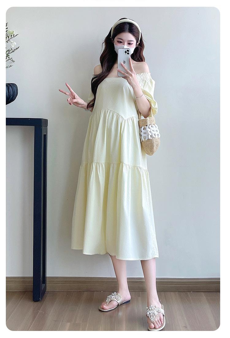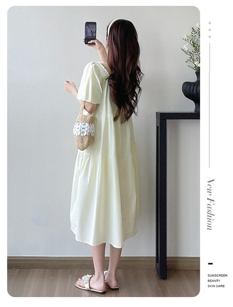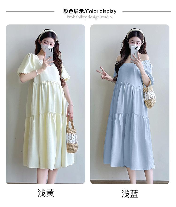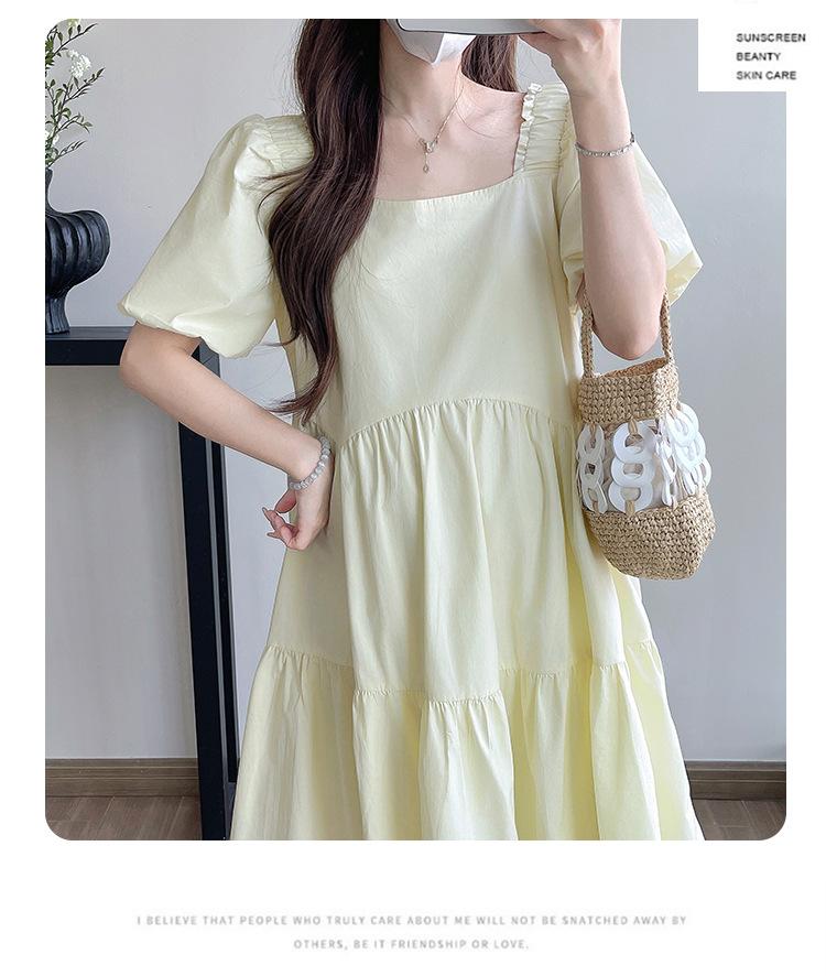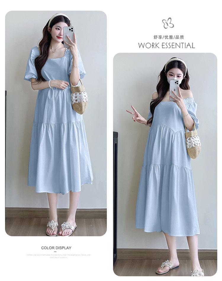 Ropa de Maternidad 2025 Verano Nuevo Estilo Cuello Cuadrado Manga Abullonada Dulce Francés Vestido de Maternidad Midi