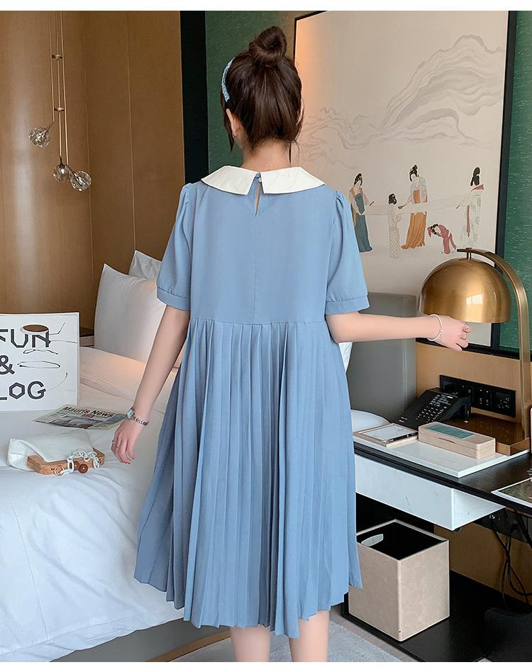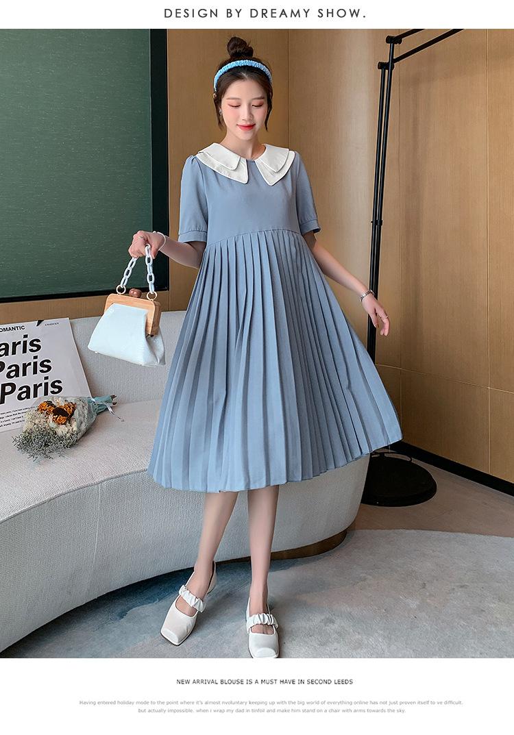 Maternidad 2022 Verano Nuevo Estilo Coreano Talla Grande Holgado Adelgazante Vestido de Maternidad Plisado Bidireccional