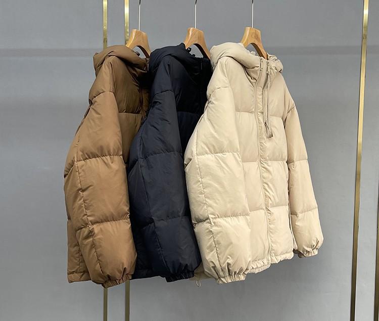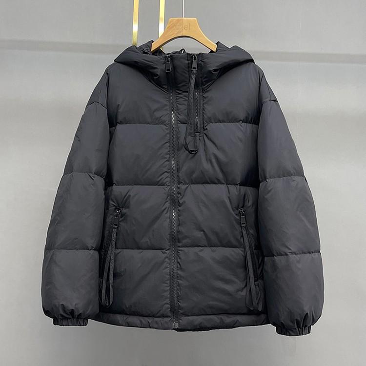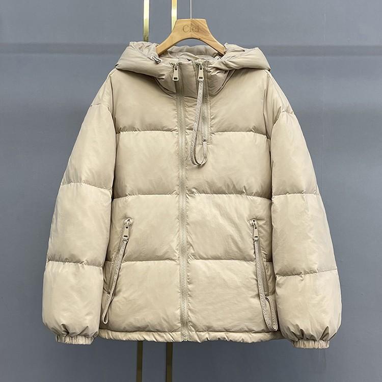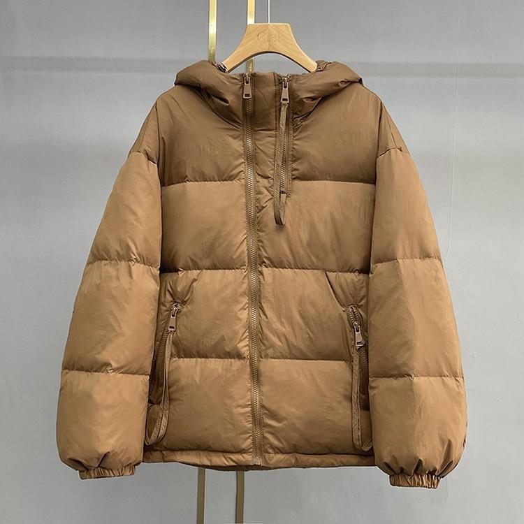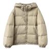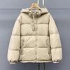 Chamarra de plumón europea-coreana para mujer 2023 invierno corta con gorro engrosada diseño pequeño moda chamarra de plumón de pato blanco