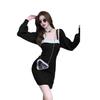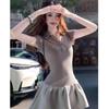 Conjunto de dos piezas de punto corto con cuello en V de color contrastante para mujeres pequeñas Otoño e Invierno 2025 Nuevo estilo coreano Vestido de aspecto adelgazante