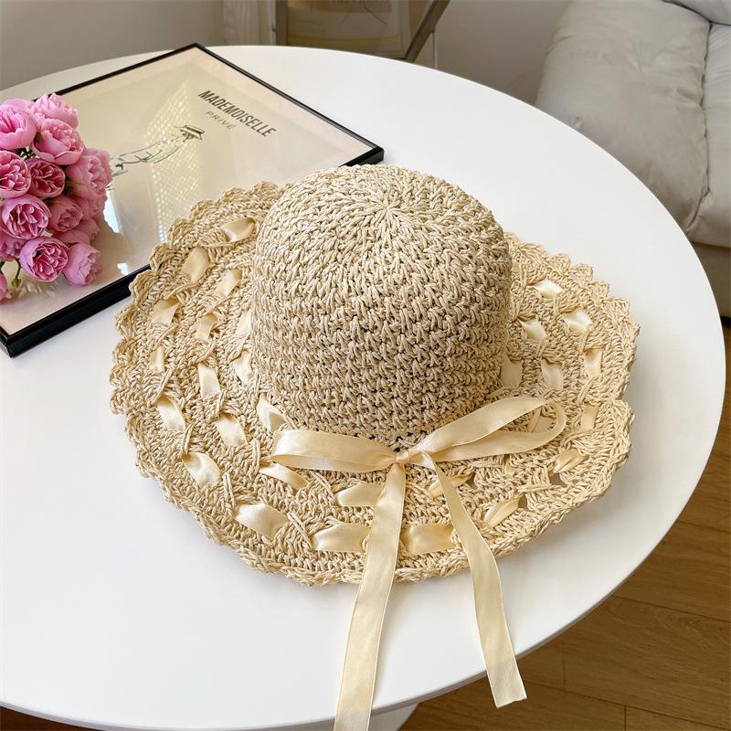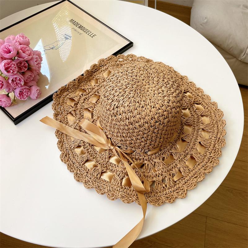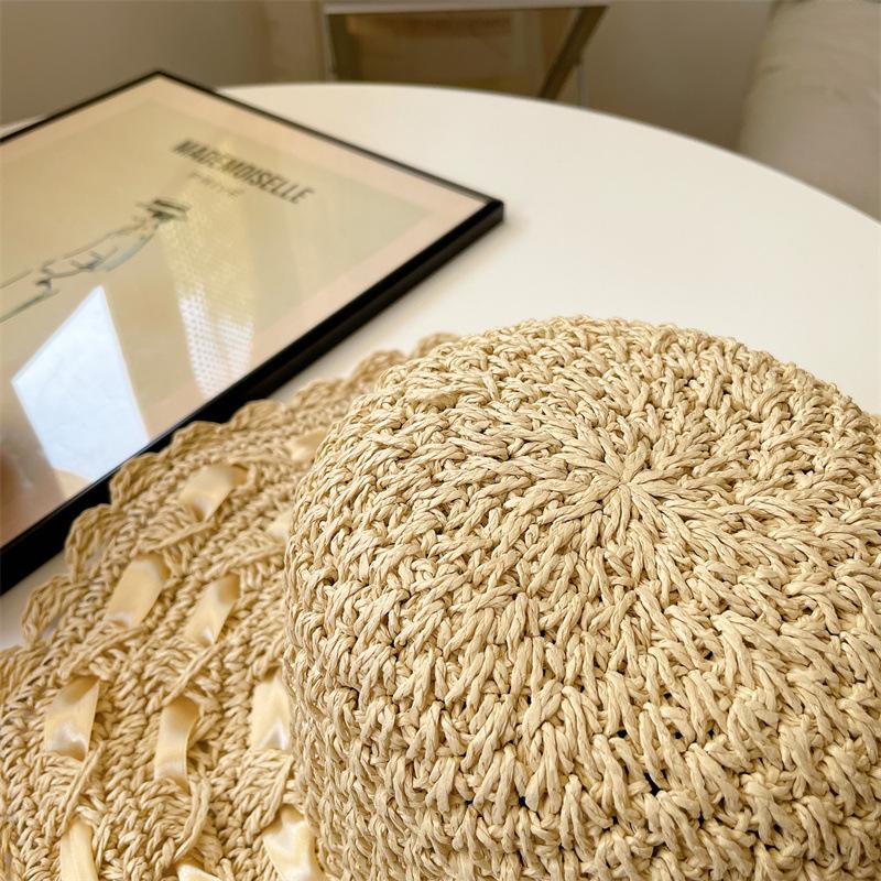 Sombrero de Sol para Mujer Verano Pequeño Fresco Sombrero de Playa Orilla del Mar Protección Solar Sombrero de Sol Estilo Coreano Versátil Bohemio Sombrero de Paja Fresco