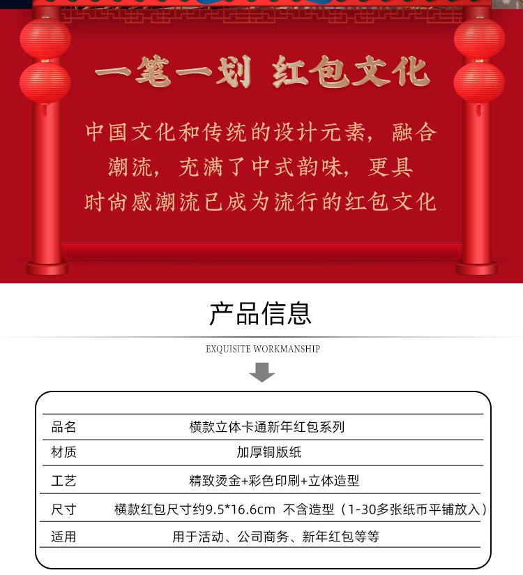 Sobres Rojos de Año Nuevo Horizontales 2026 de Dibujos Animados con Diseño Creativo de Caballo 3D, Lindos Paquetes Rojos de Regalo de Retorno