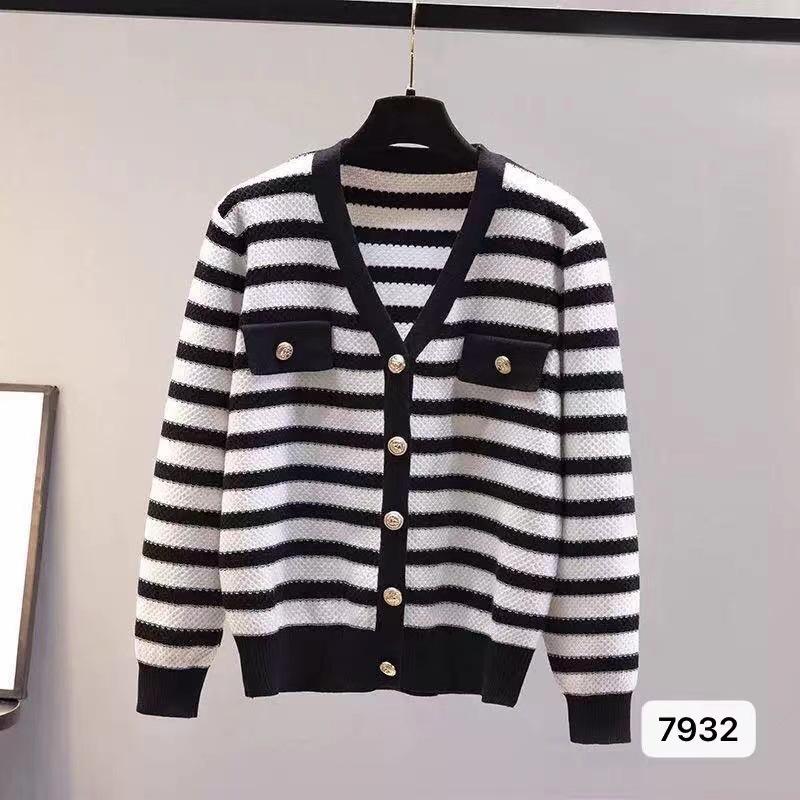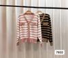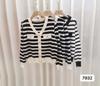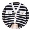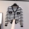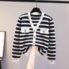 Cárdigan de Punto Rayado de Moda Transfronteriza Otoño Temprano Nuevo Punto Chaqueta de Manga Larga con Cuello en V para Mujer Top