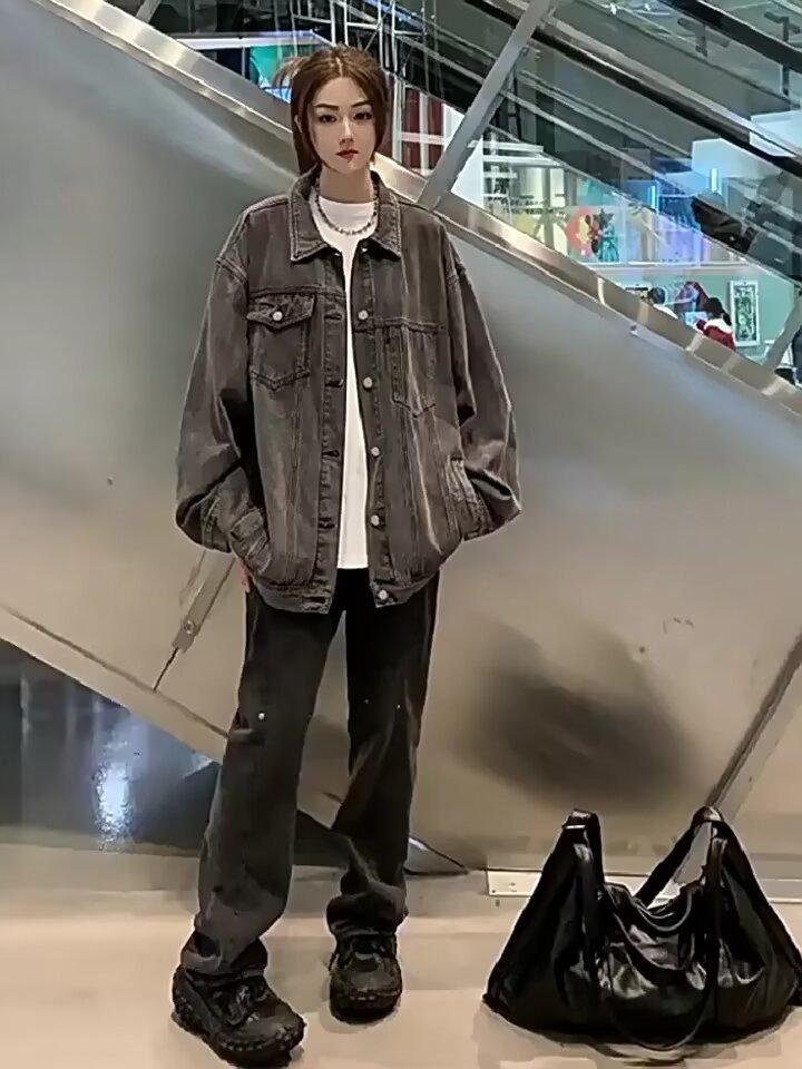 Marca de moda Abrigo de mezclilla para mujer primavera y otoño Ropa de mezclilla de trabajo retro americana High Street Ruan ropa guapa para pareja chaqueta Detroit