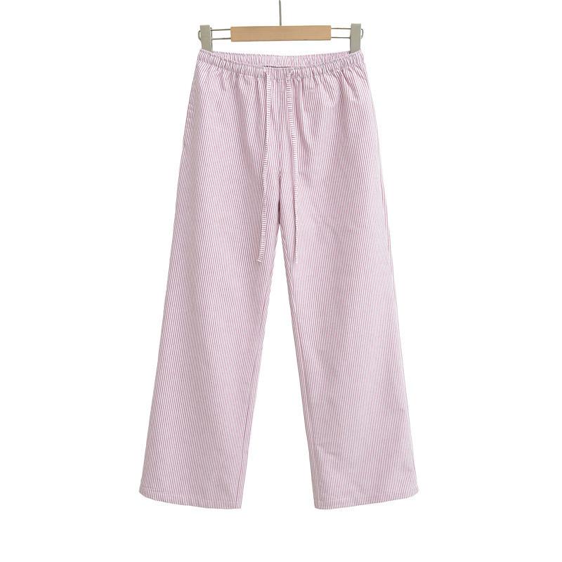 Pantalones holgados a rayas de pierna ancha para mujer, Verano 2025, Drapeado adelgazante, Pantalones casuales rectos delgados