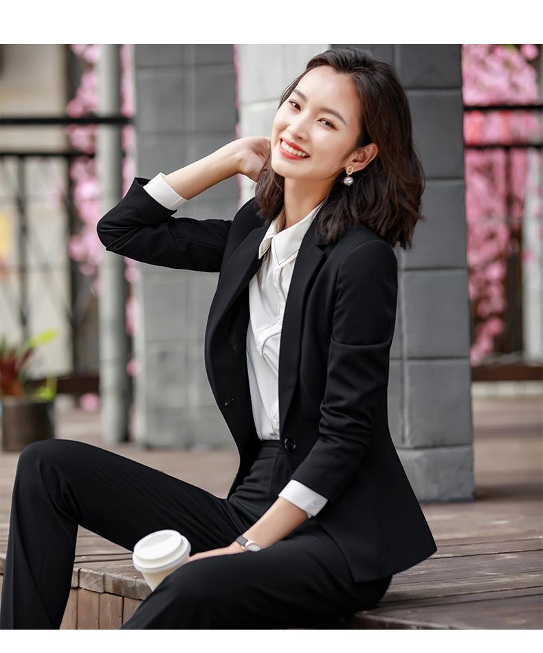 Traje de Mujer Primavera y Otoño Negro Moda Elegante Gris Azul Vestido de Negocios Vestido de Entrevista para Estudiante Universitario Ropa de Trabajo