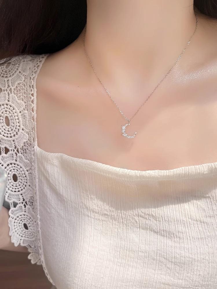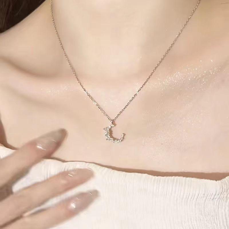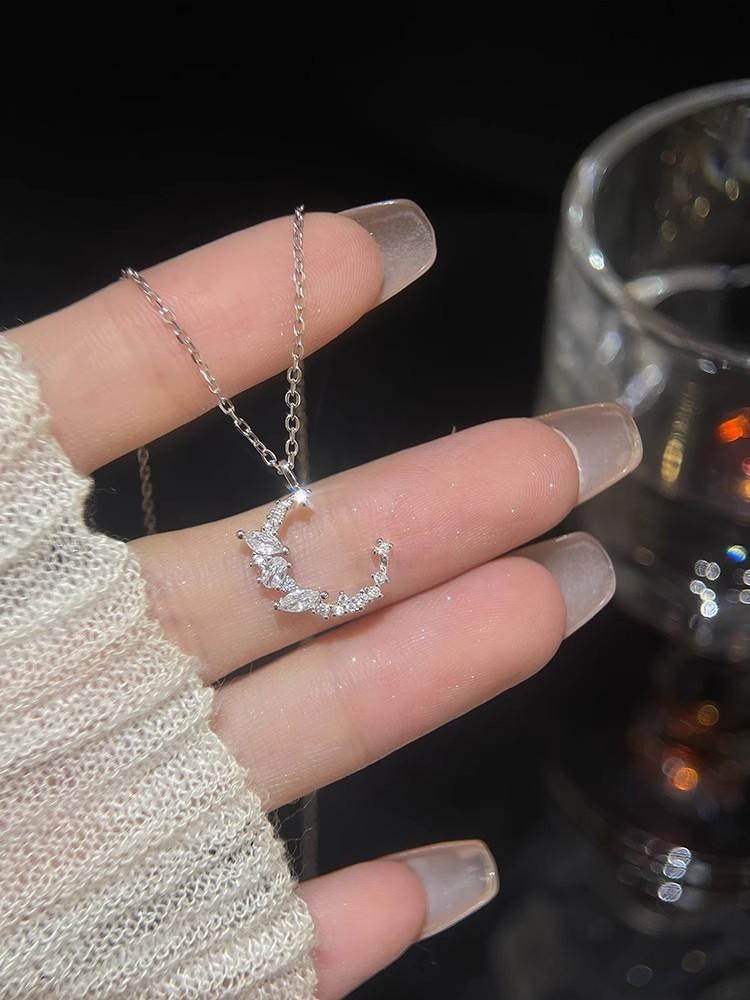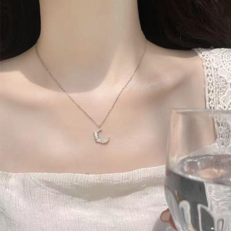 Elegante Collar de Luna para Mujer Lujo Ligero Diseño Nicho Sentido Colgante Creciente Cadena Clavícula 2023 Nuevo Estilo Regalo Novia