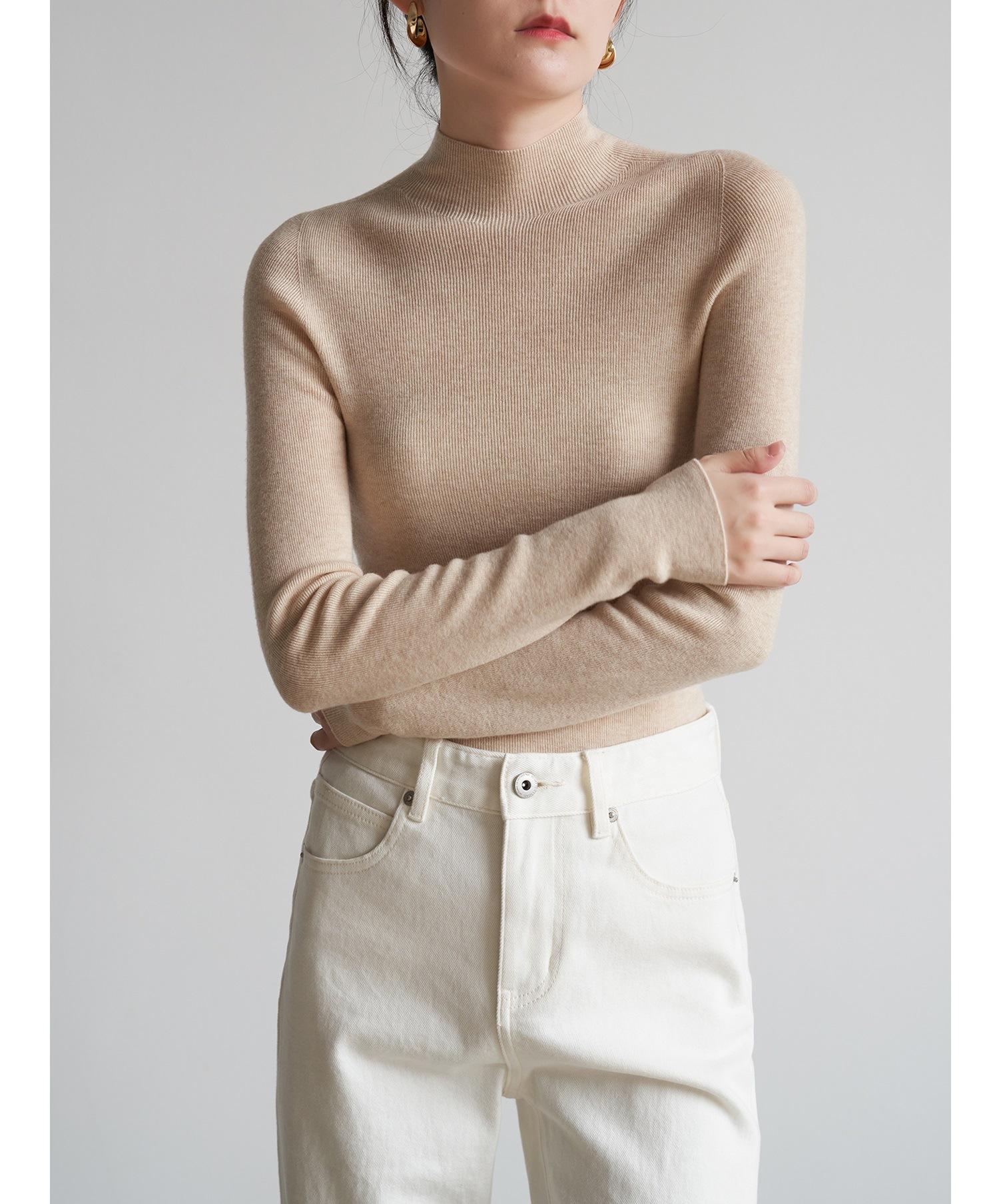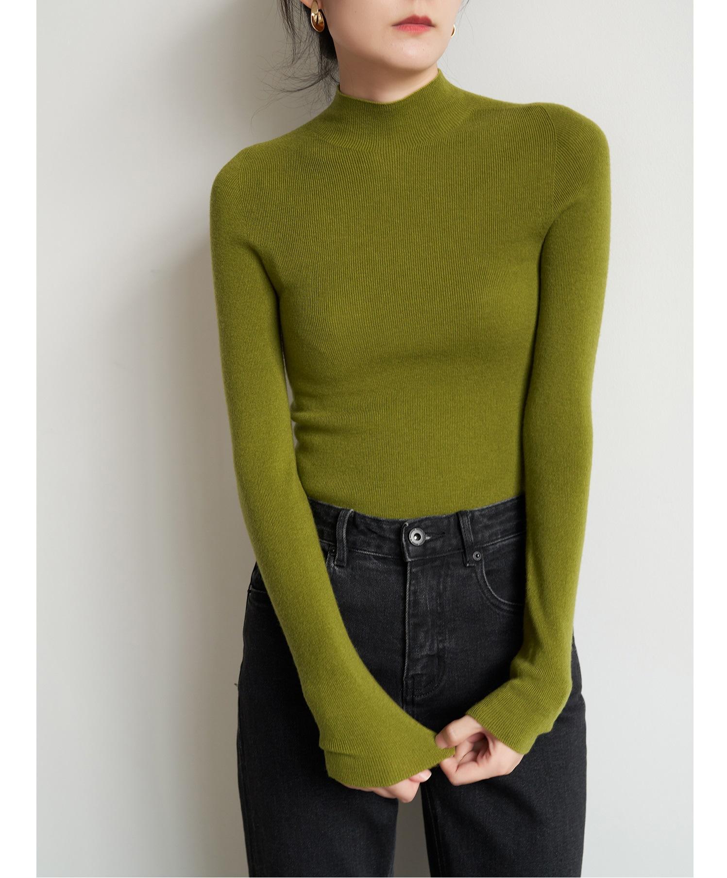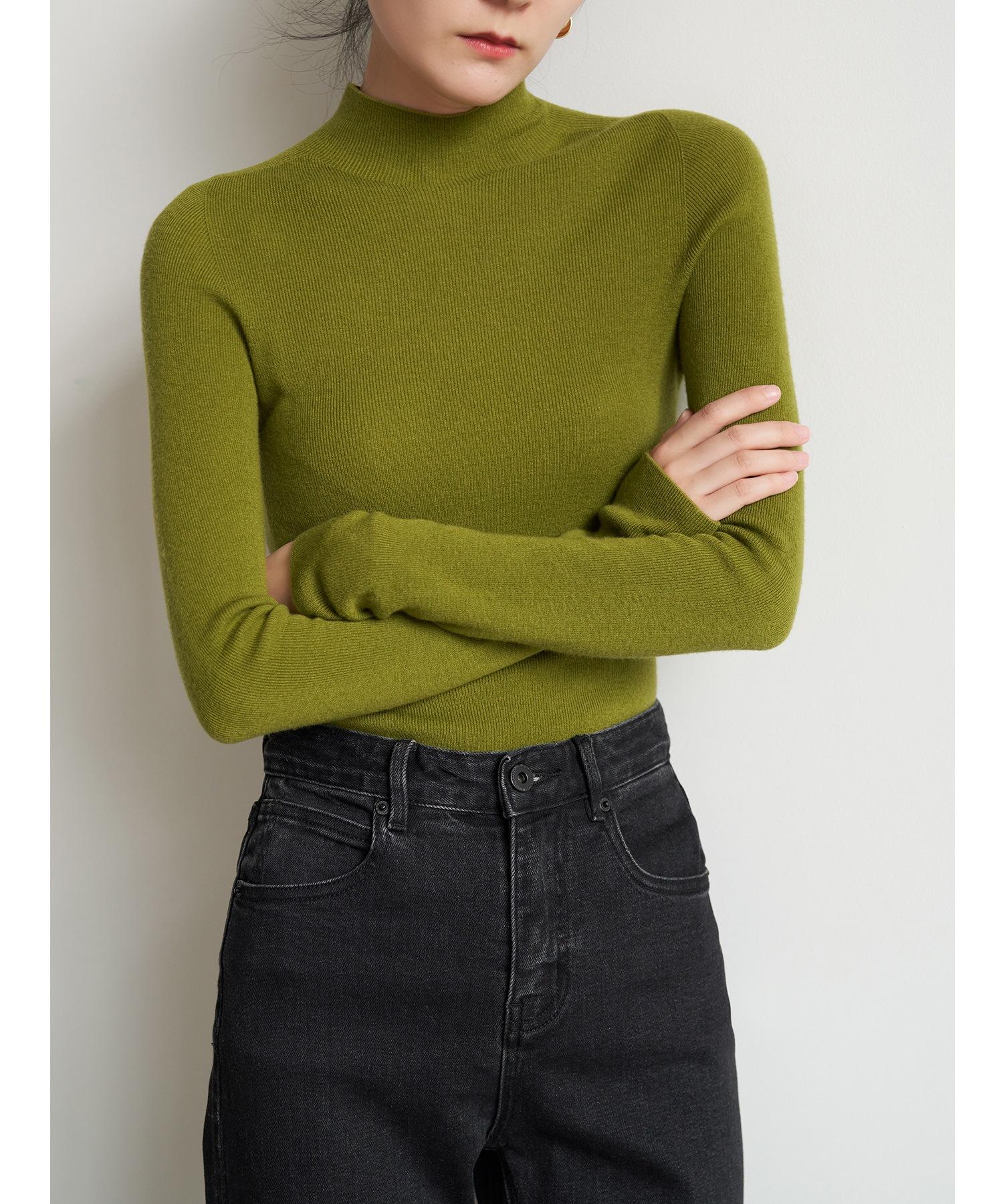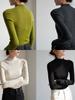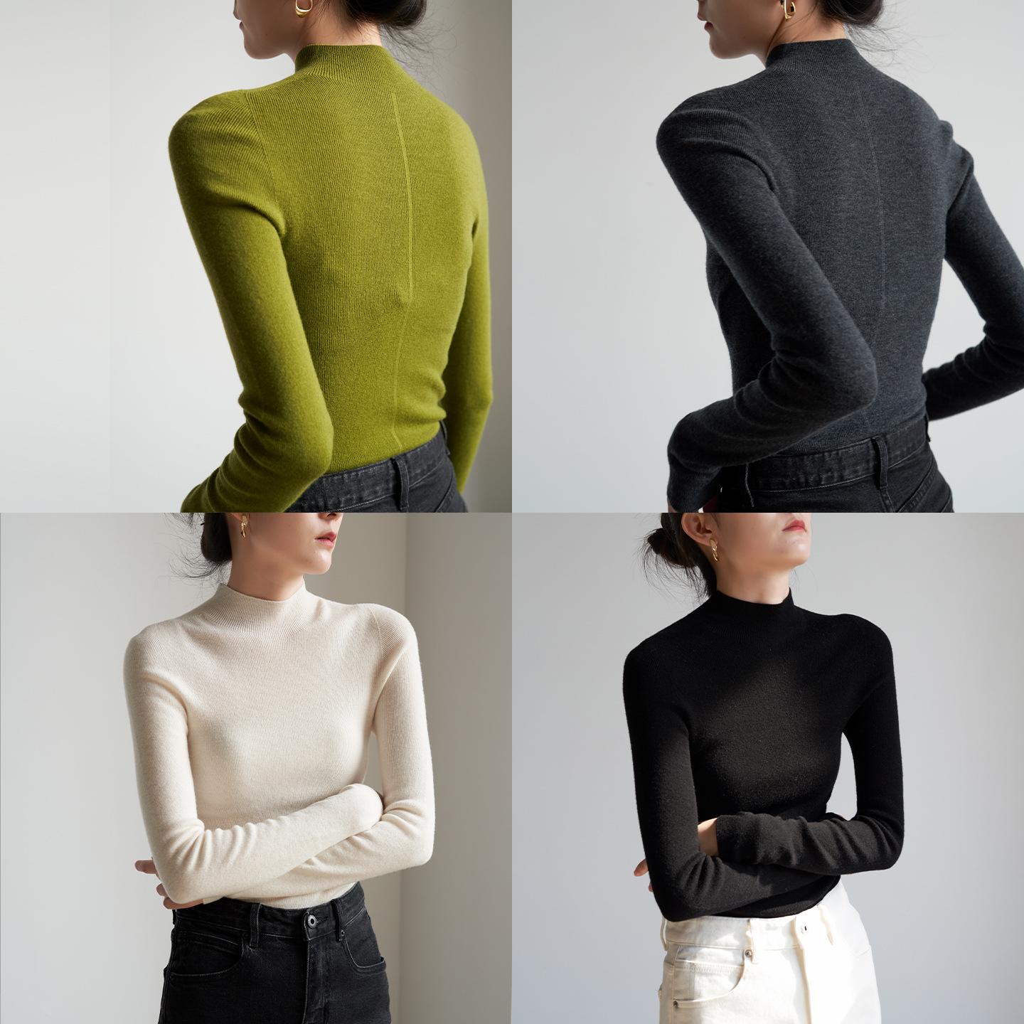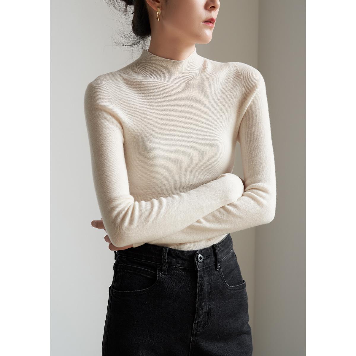 Suéter de Punto de Lana de Una Pieza sin Costuras Estilo Commuter de Cuello Medio Alto para Mujer, Top de Capa Base para Otoño e Invierno, Color Sólido