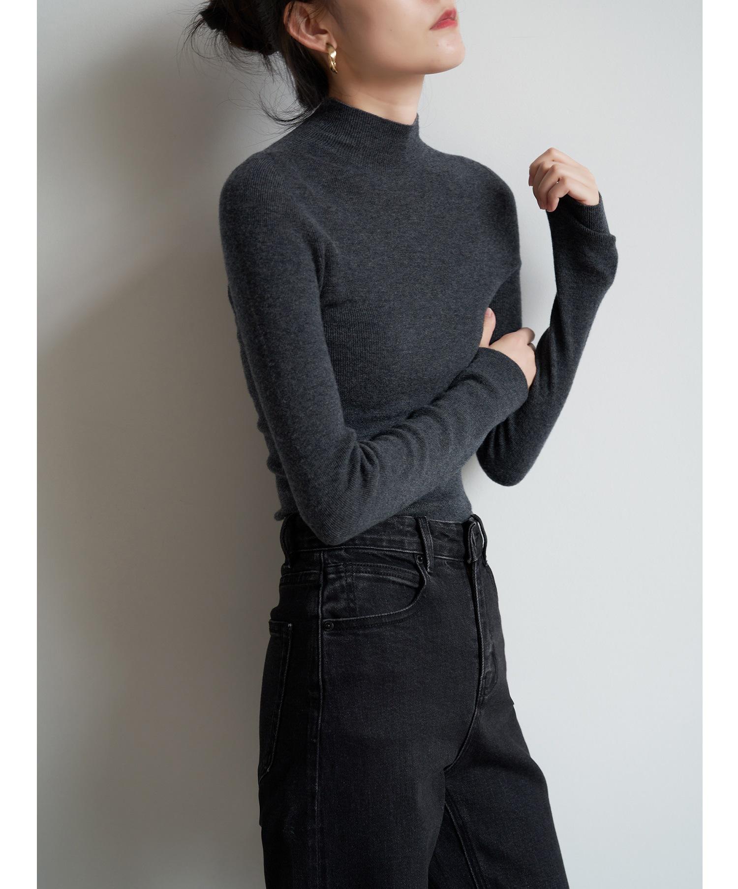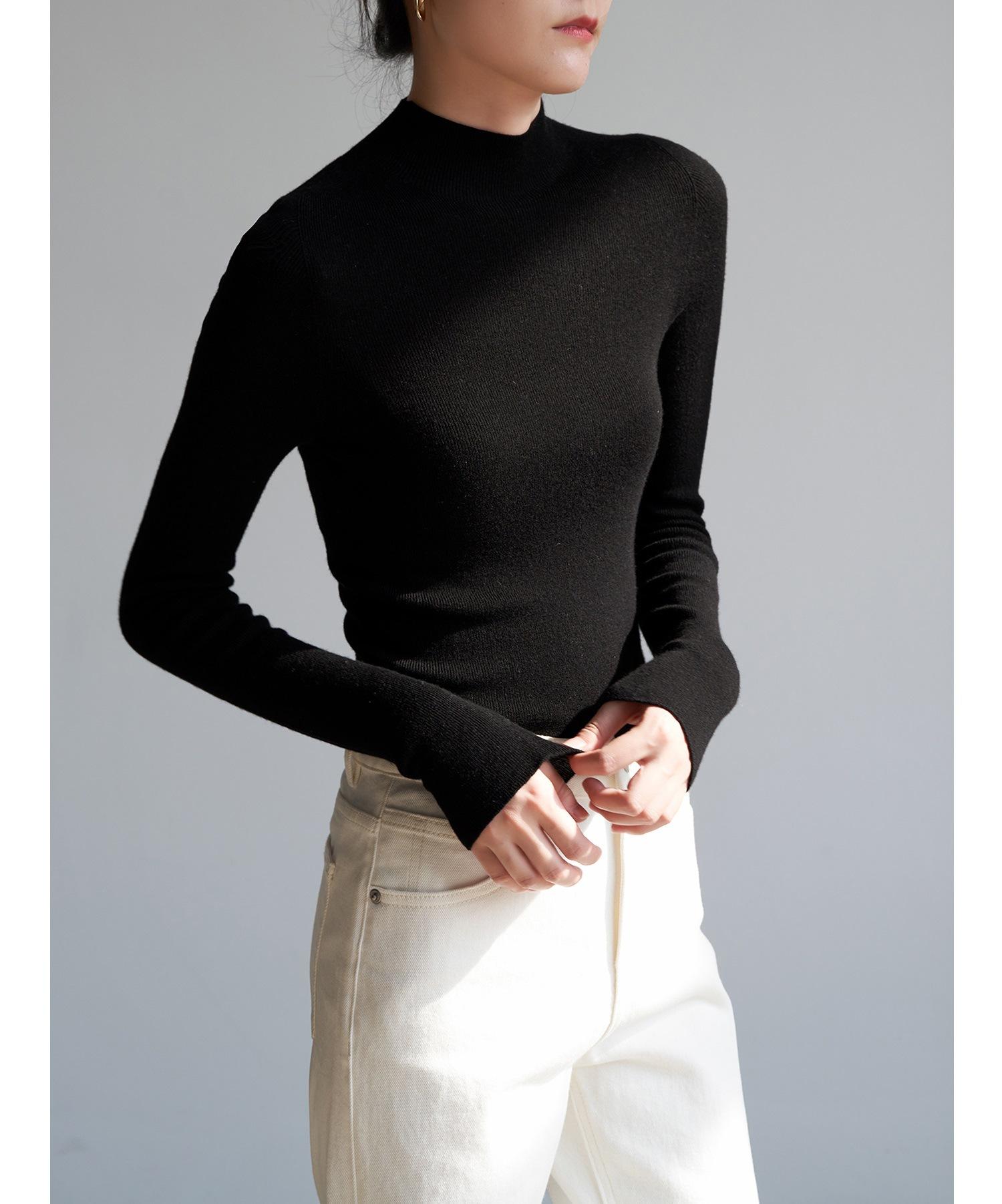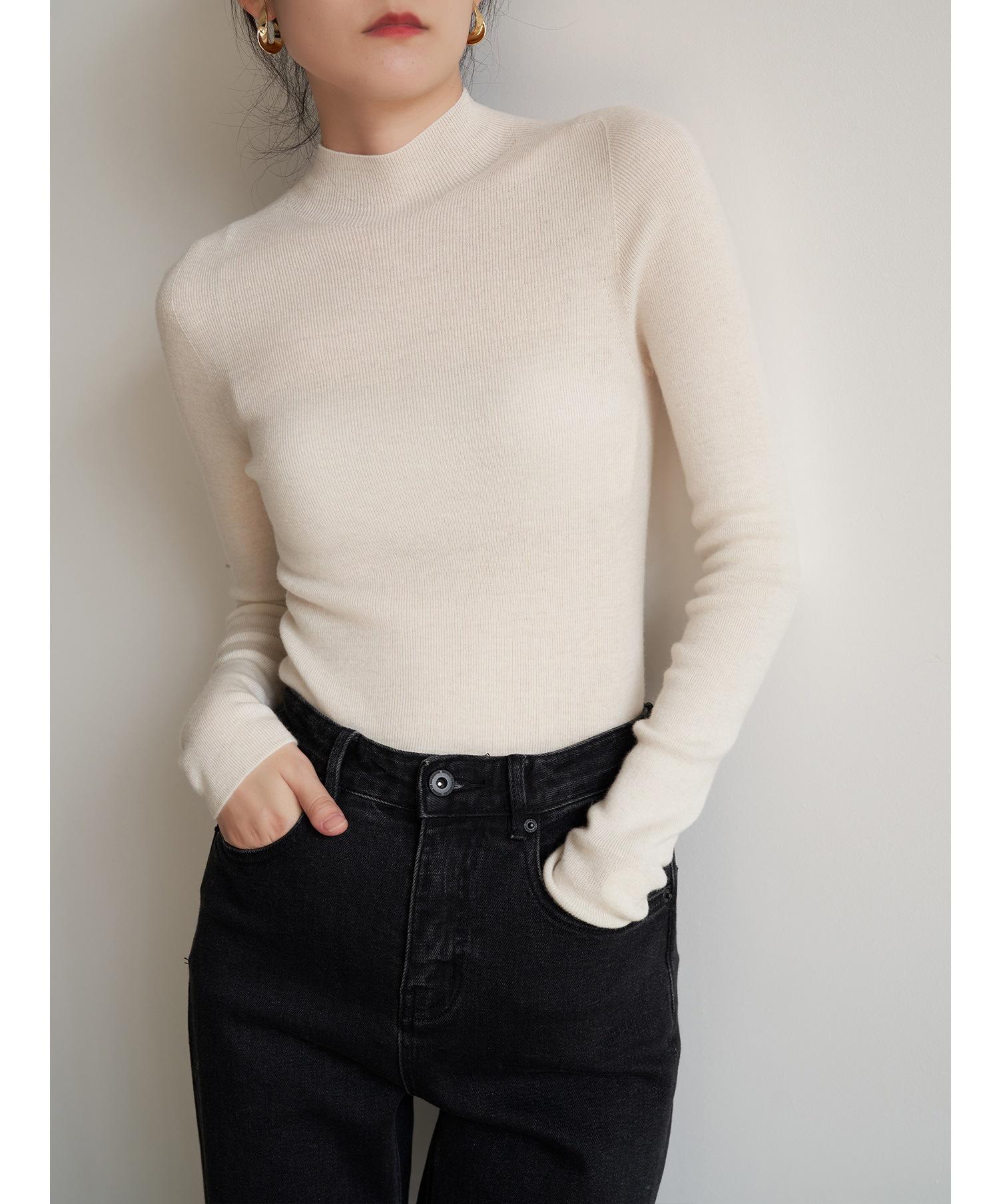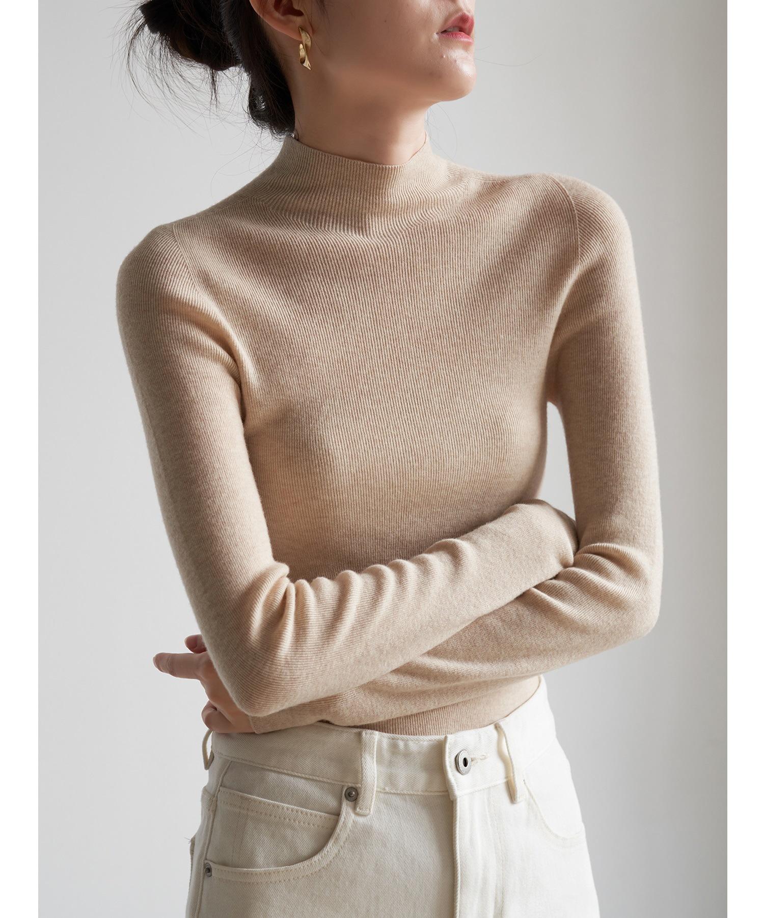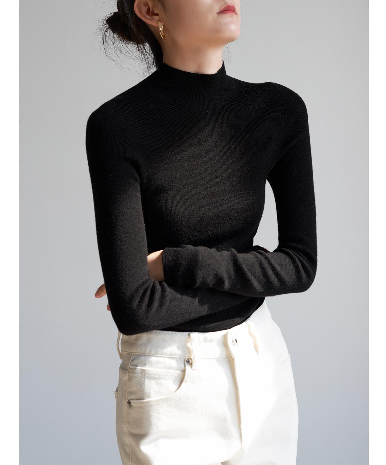 Suéter de Punto de Lana de Una Pieza sin Costuras Estilo Commuter de Cuello Medio Alto para Mujer, Top de Capa Base para Otoño e Invierno, Color Sólido