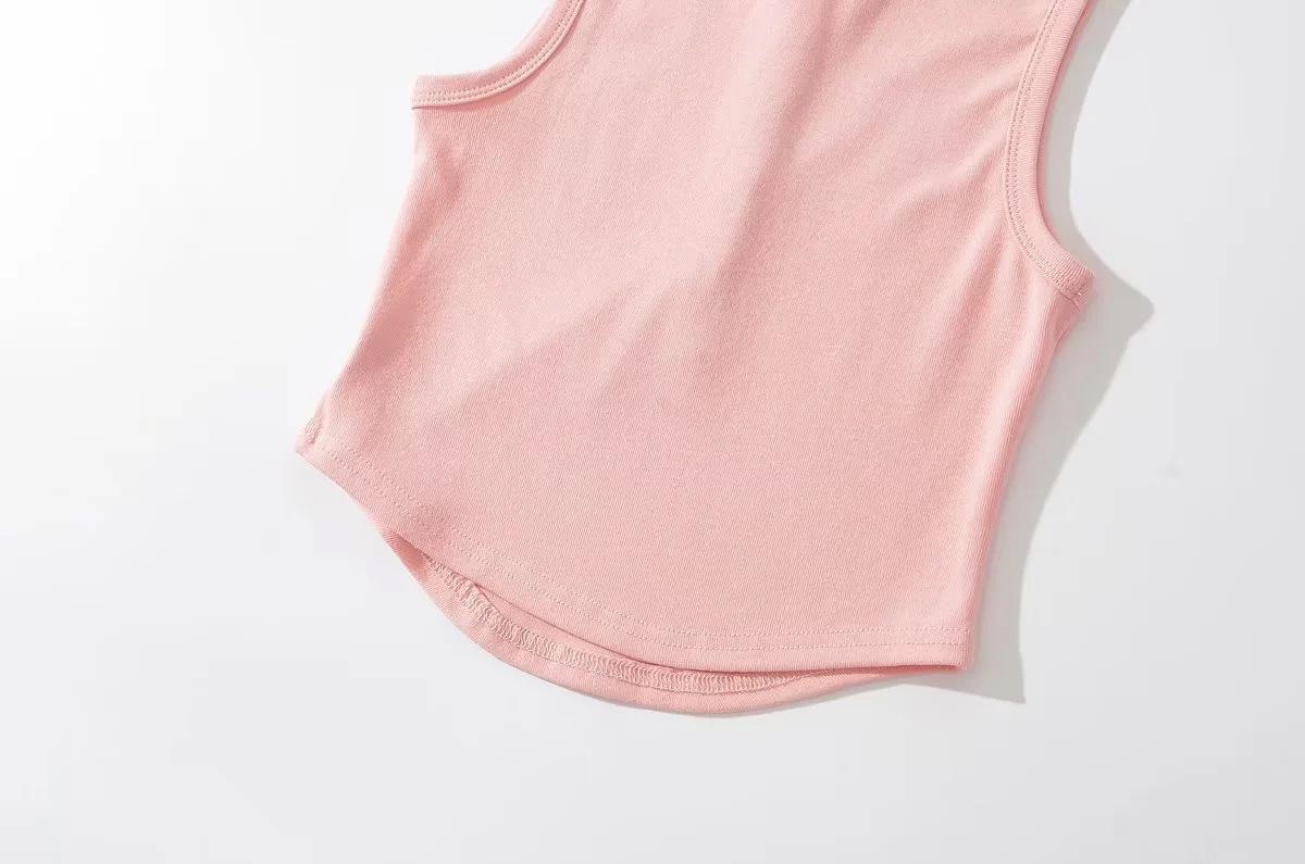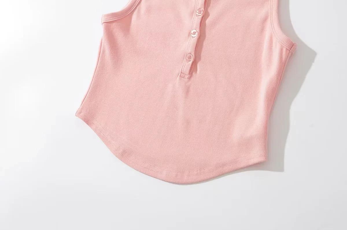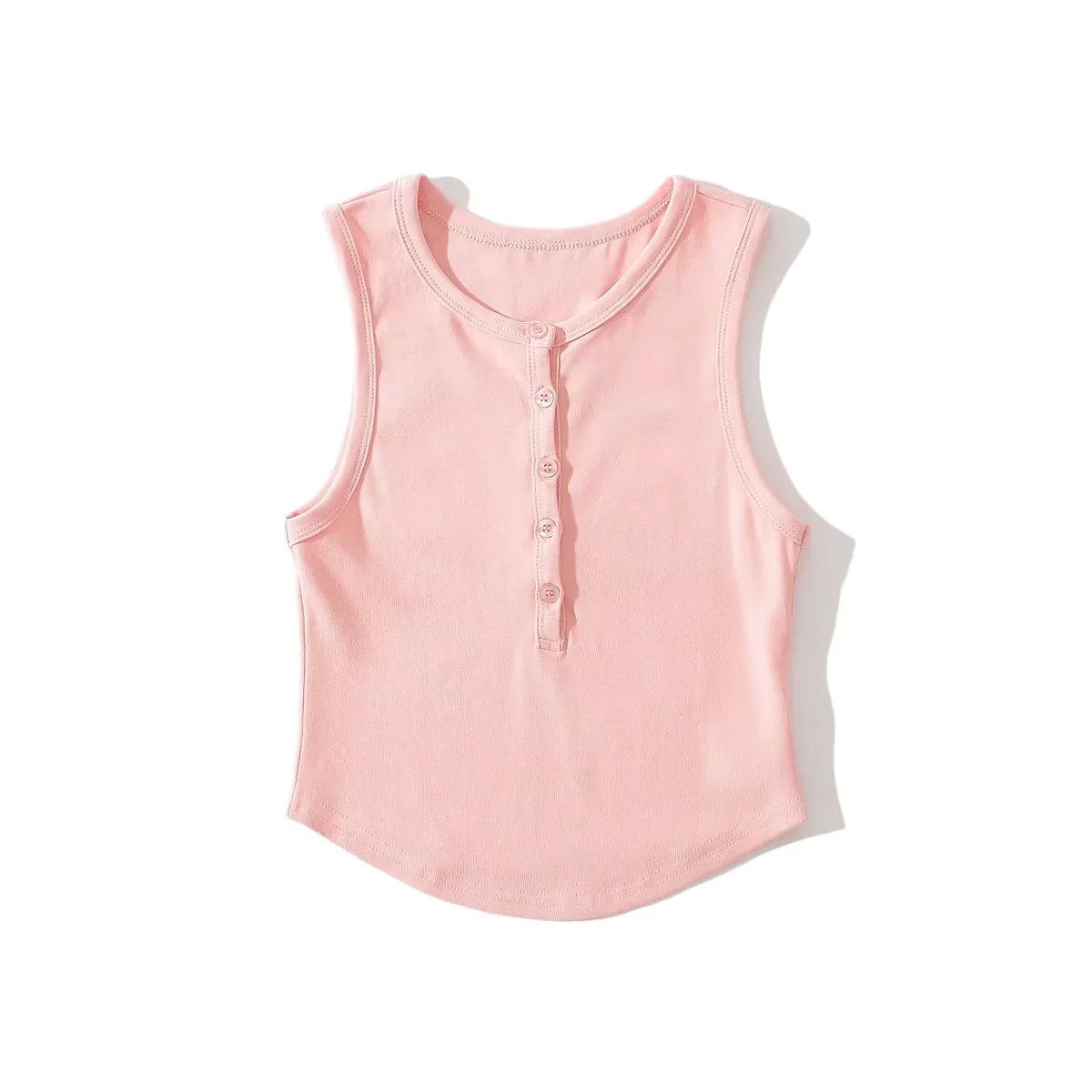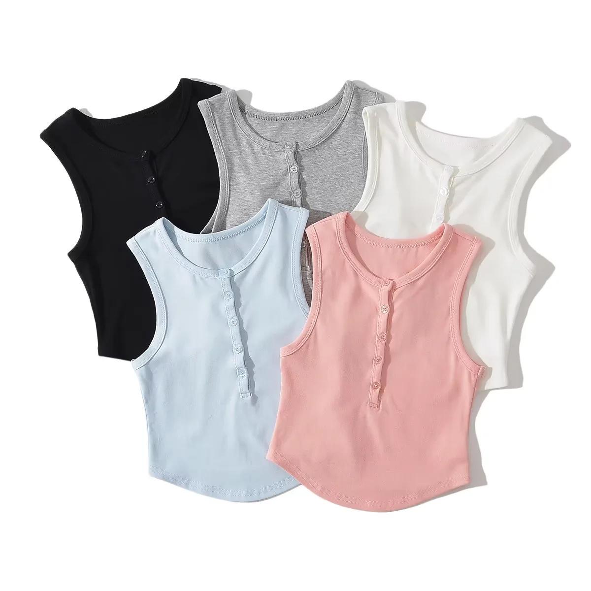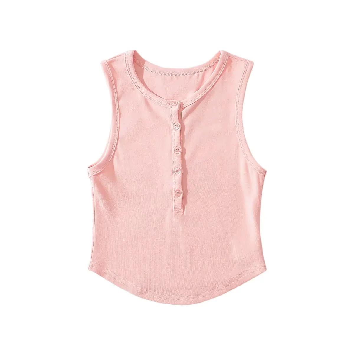 Chaleco Corto de Botones con Cuello Semiabierto de Corte Slim al Estilo Americano para Mujer, Top Versátil sin Mangas Elegante y Adelgazante