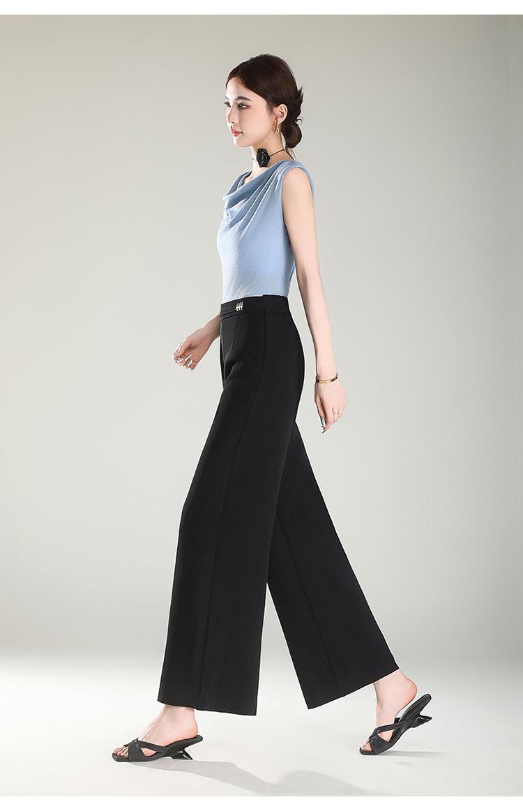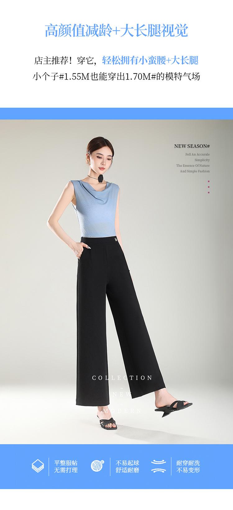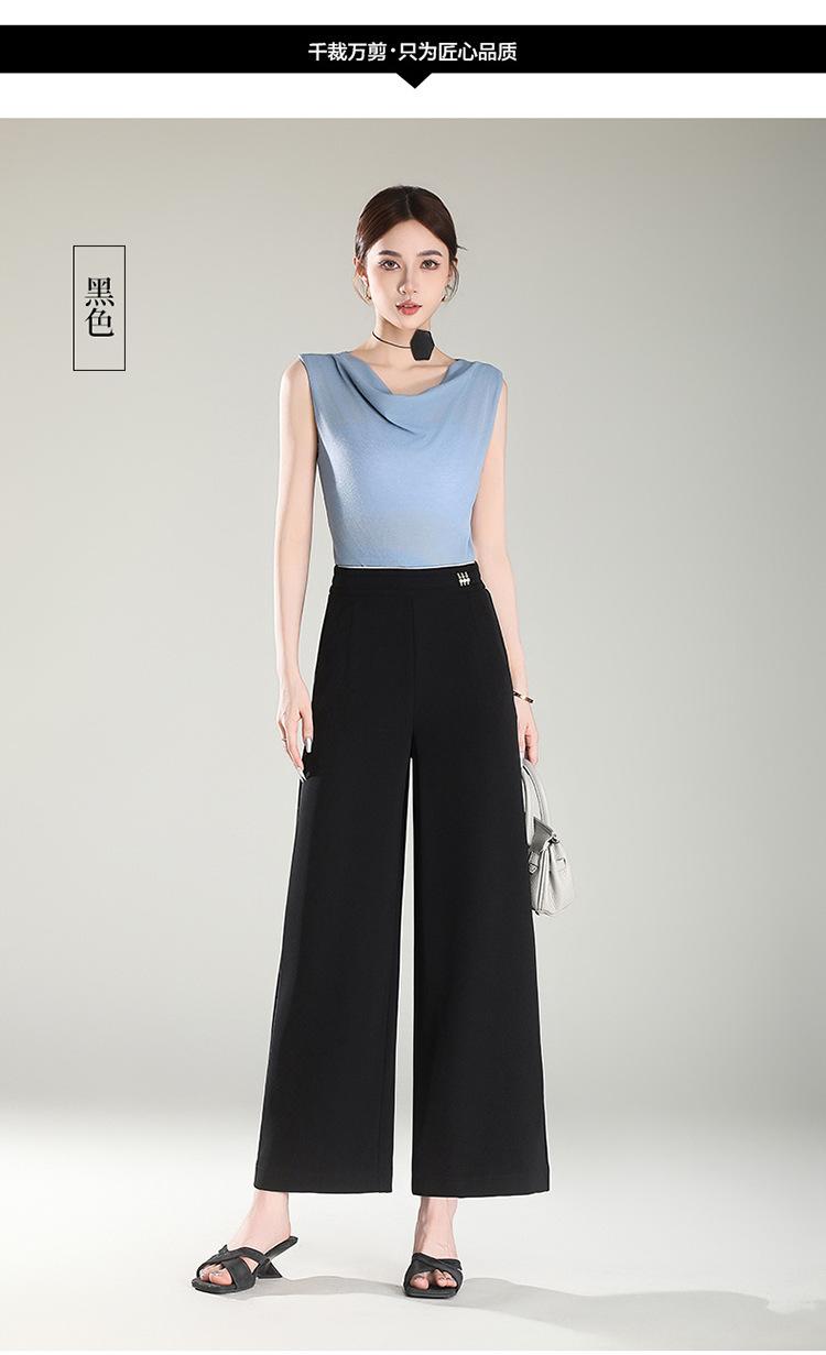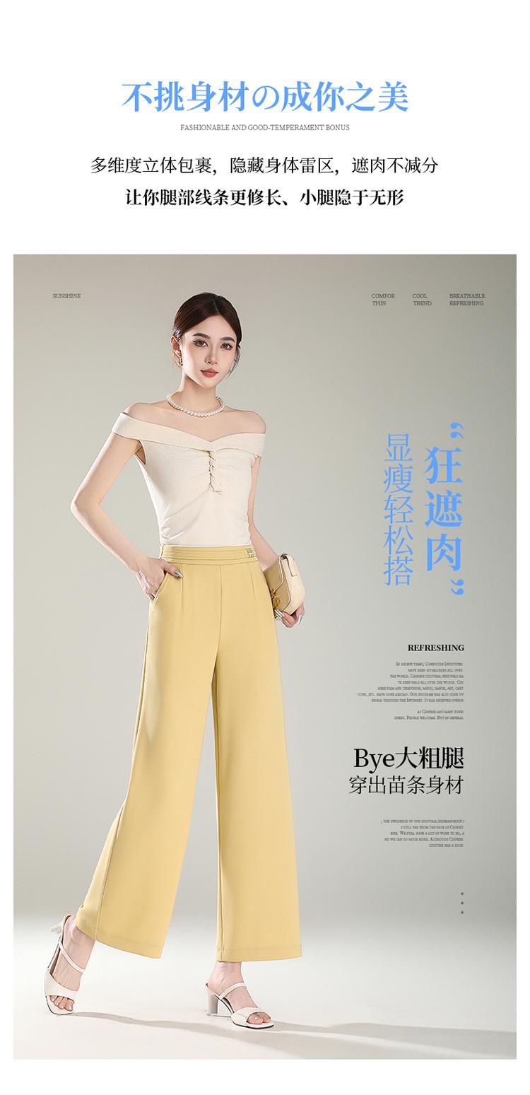 Pantalones de Verano Petite Drapeados de Alta Gama Cortos Modernos Rectos de Pierna Ancha Sueltos para Mujer