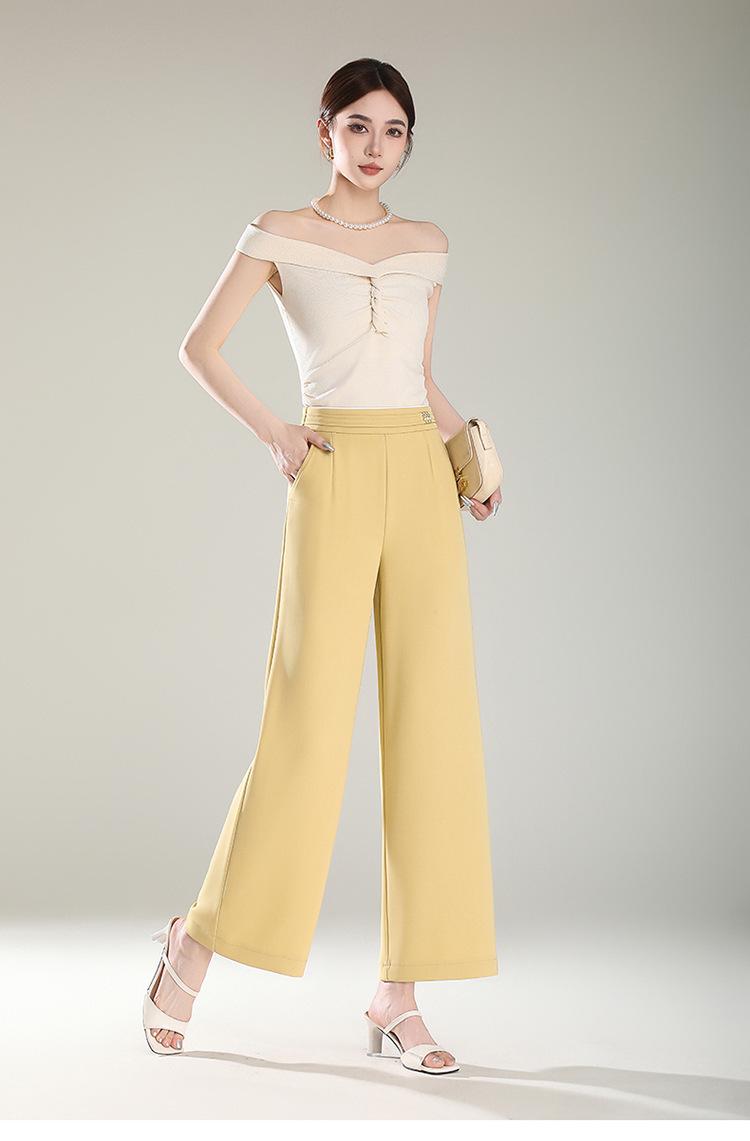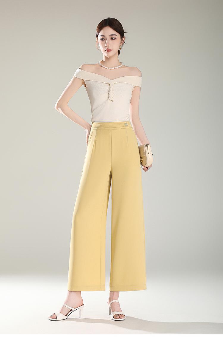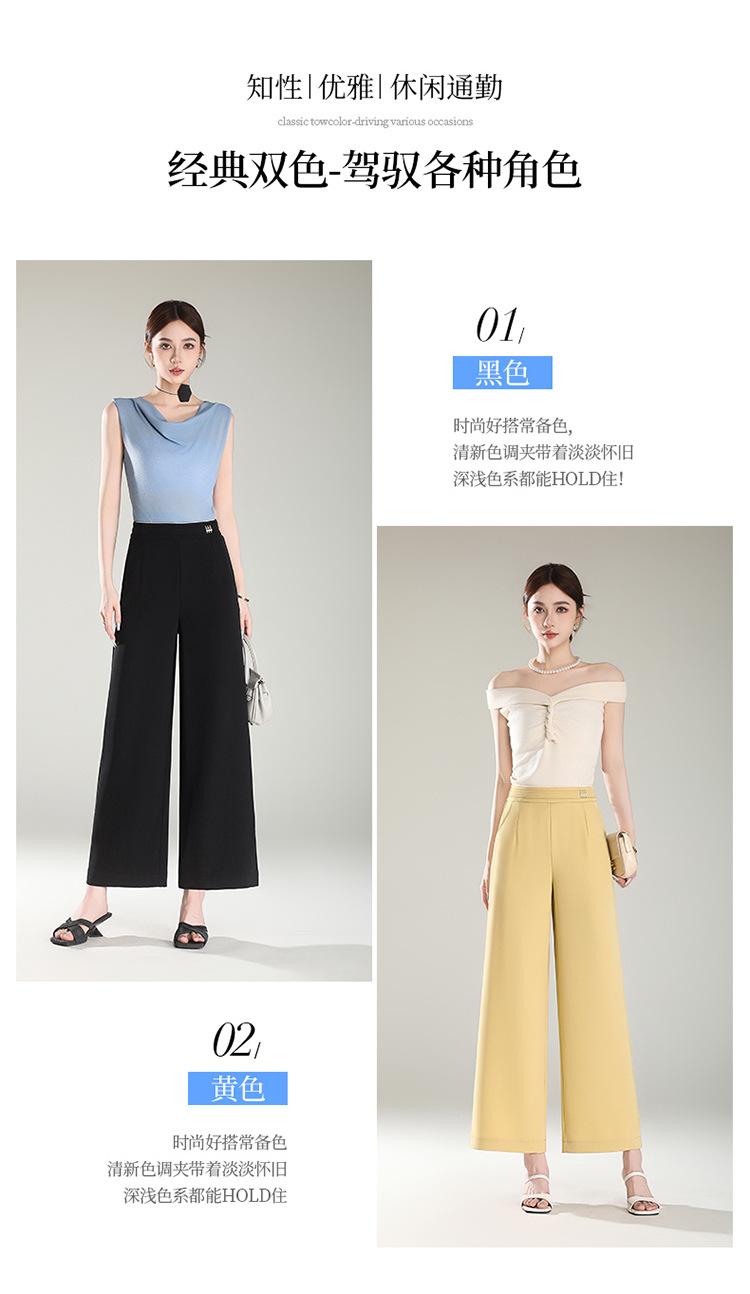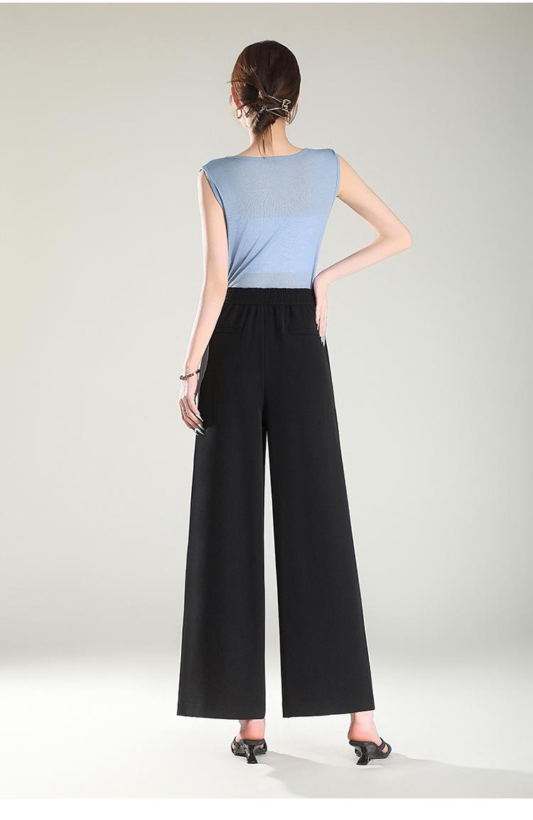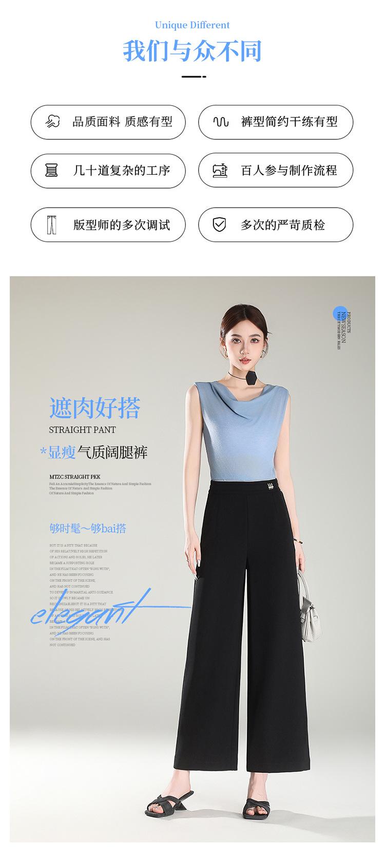Pantalones de Verano Petite Drapeados de Alta Gama Cortos Modernos Rectos de Pierna Ancha Sueltos para Mujer