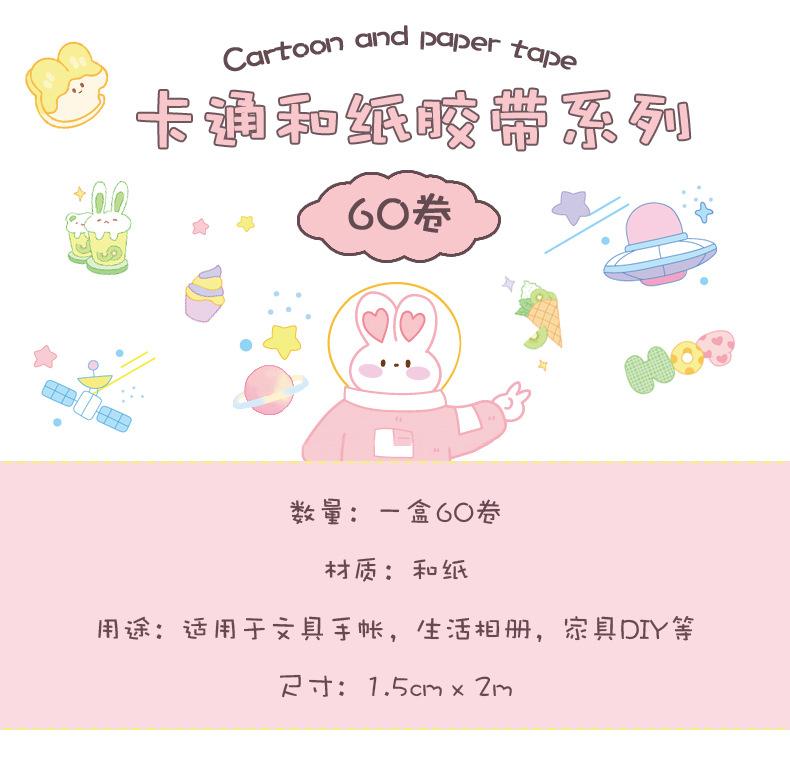 Caja de Regalo de 60 Rollos de Cinta Washi Set de Cintas para Libreta Lindo para Estudiantes Cinta de Material para Libreta Pequeña Fresca de Dibujos Animados