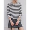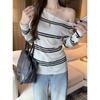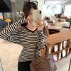 Primavera 2025 Nuevo Top Holgado Slim Estilo Francés para Dama Rayado Retro Cuello Redondo Manga Larga Camiseta de Punto para Mujer
