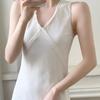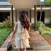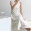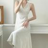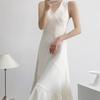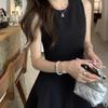 Vestido Chaleco Blanco Roto de Verano 2025 Largo Medio Cuello Francés Sin Mangas Falda Acampanada Adelgazante de Cintura para Mujer
