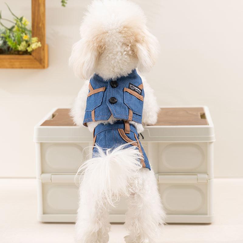 25 años nueva ropa de primavera y verano para perros pequeños y medianos Chaleco de mezclilla de dos piezas ropa para mascotas teddy bomei