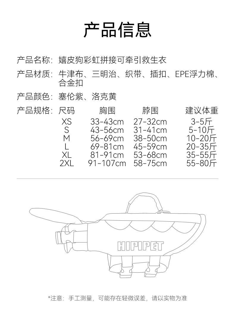 Xs (chest circumference 33-43, neck circumference 27-32) recommended 1.5-2.5kg, S (chest circumference 43-56, ...