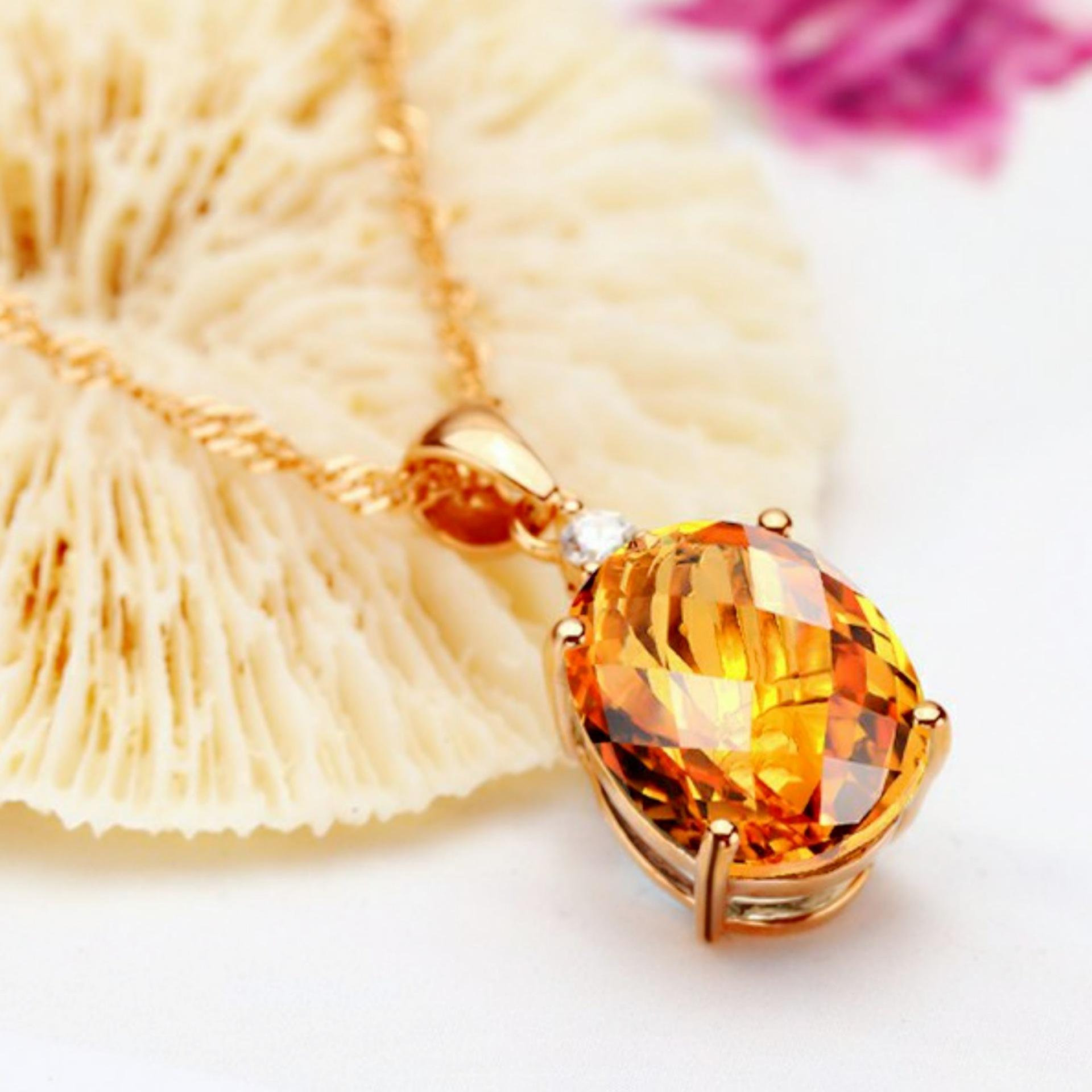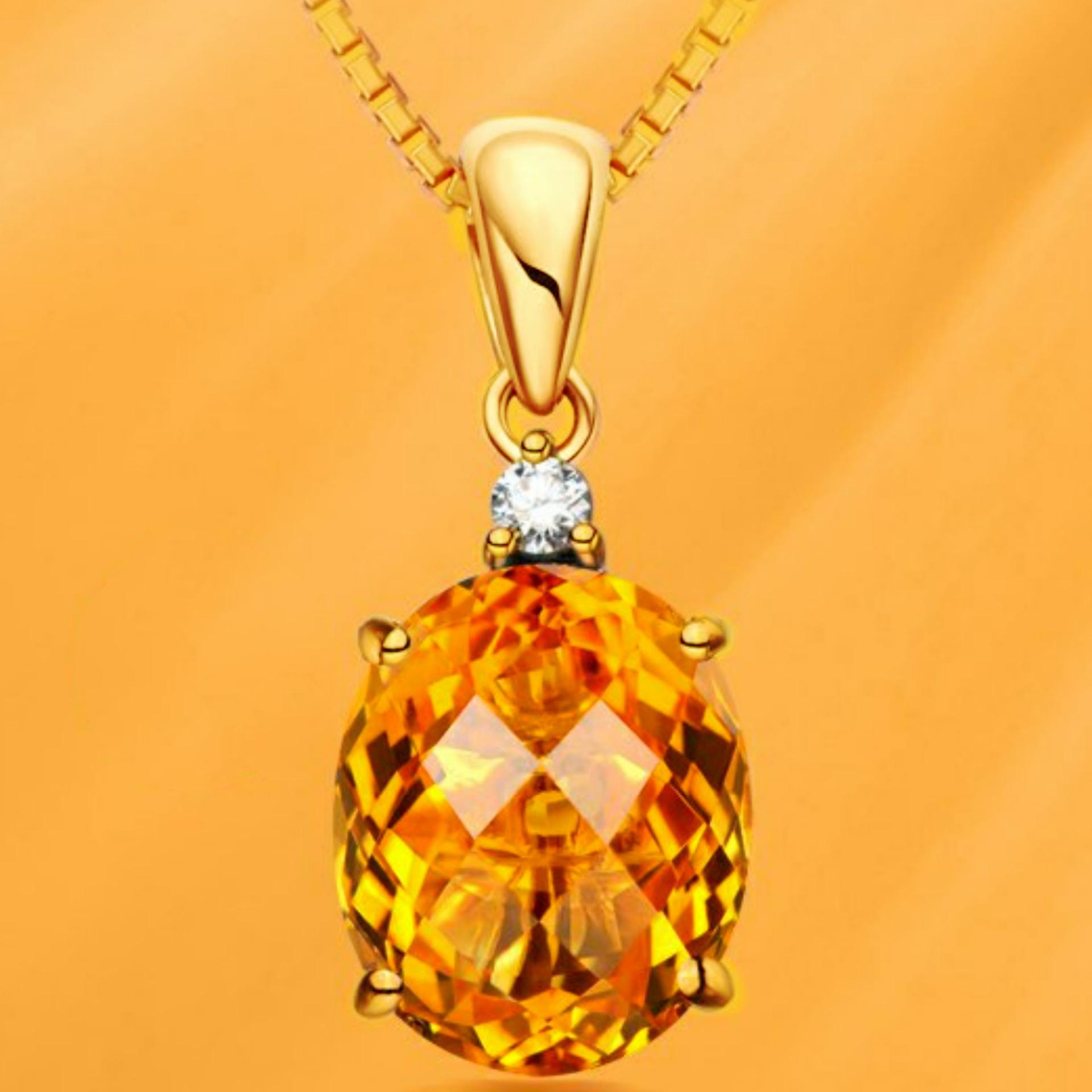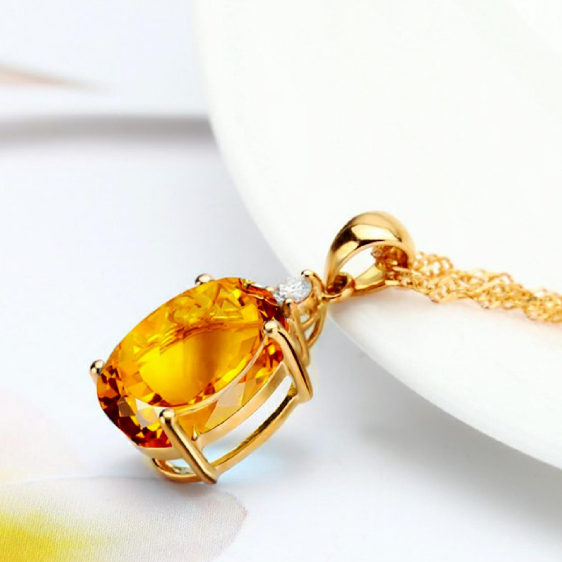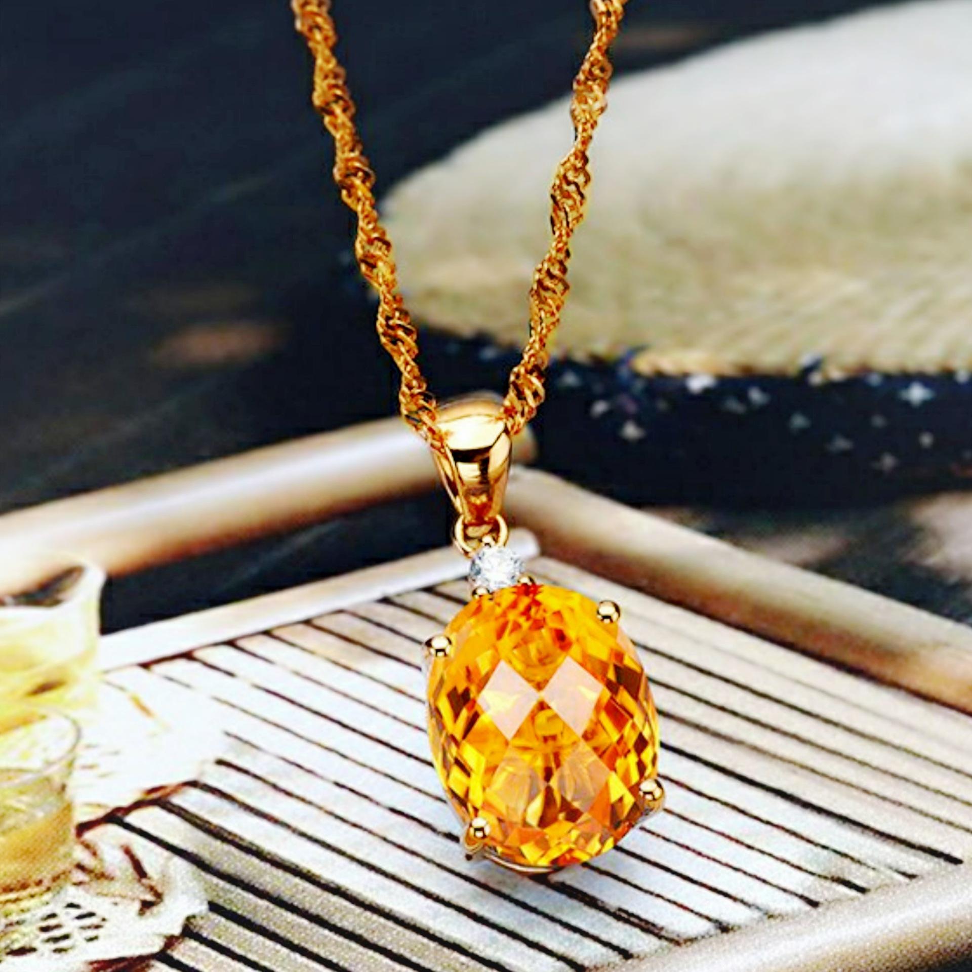 Collar con Colgante de TikTok Live 6.5 quilates Imitación Citrino Natural Colgante Chapado en Oro Color Diamante Amarillo