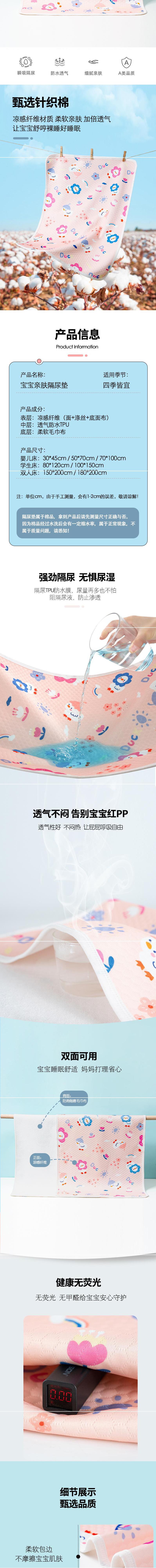 Almohadilla de Pañal para Bebé de Cinco Capas Impermeable Transpirable Lavable Grande para Cama Doble Cara Verano Recién Nacido