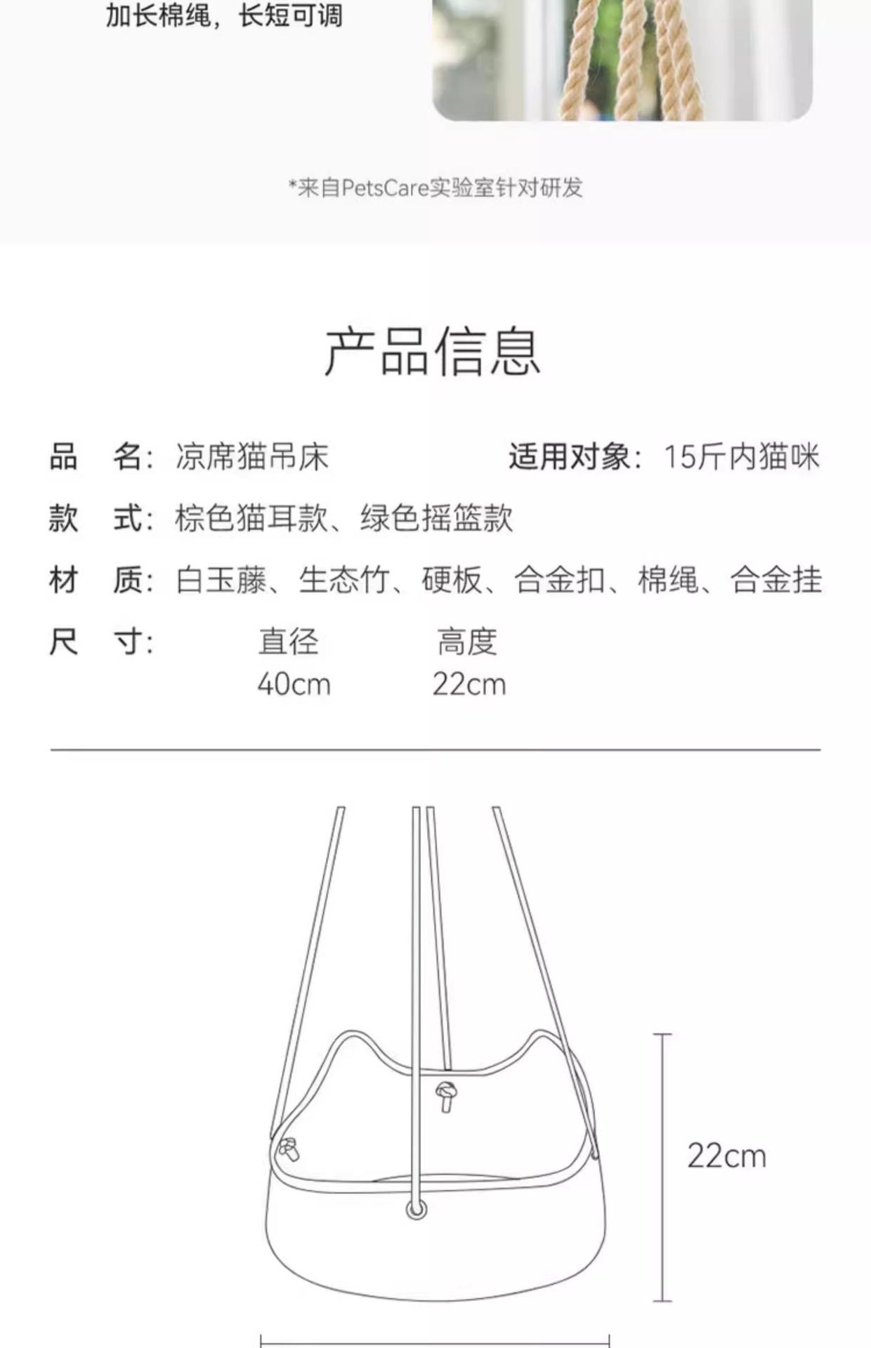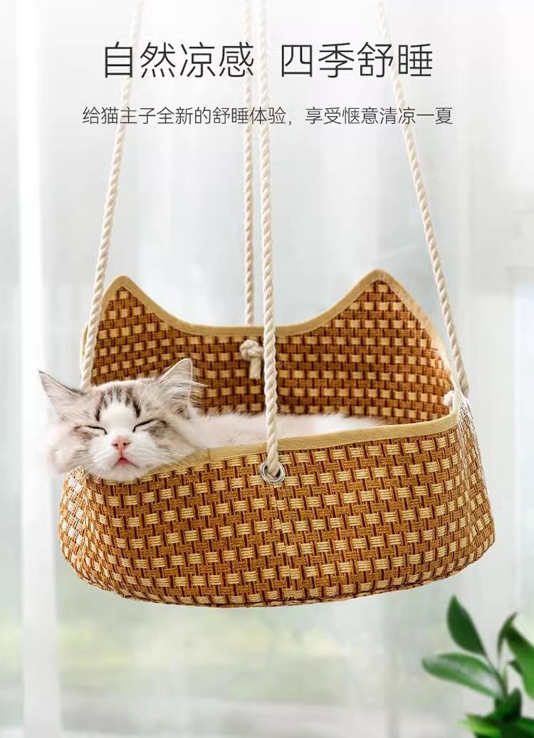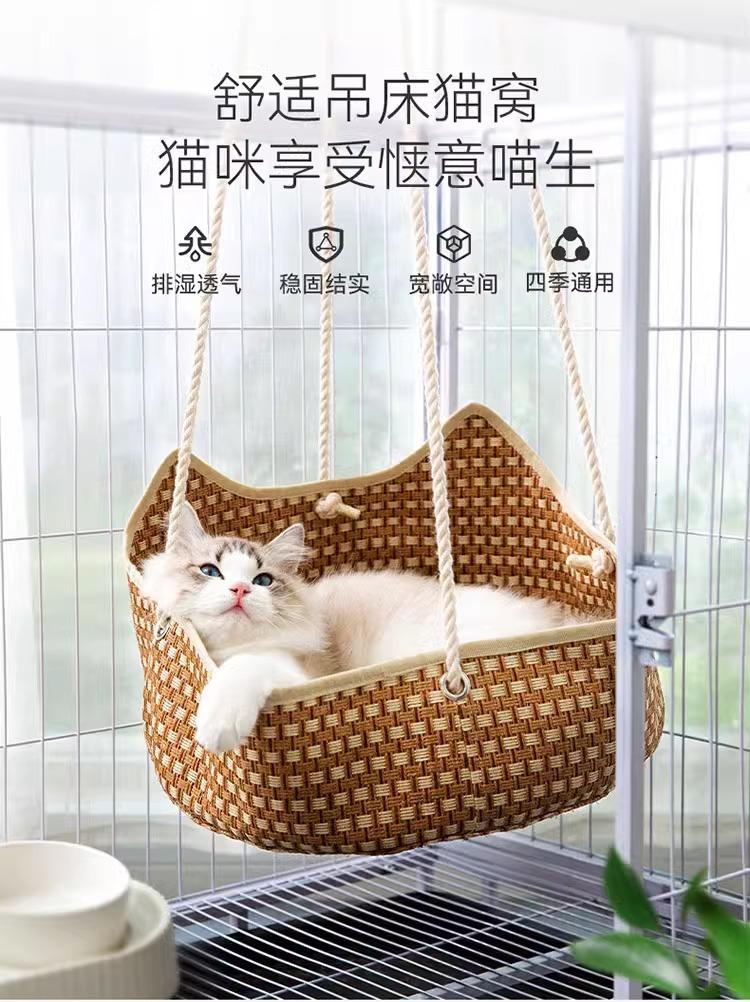 Suministros para Mascotas Gatos Colchoneta Nido de Primavera y Verano Jaula para Dormir Hamaca Colgante para Gatos Cama para Gatos de Ratán Tejido Nido para Gatos